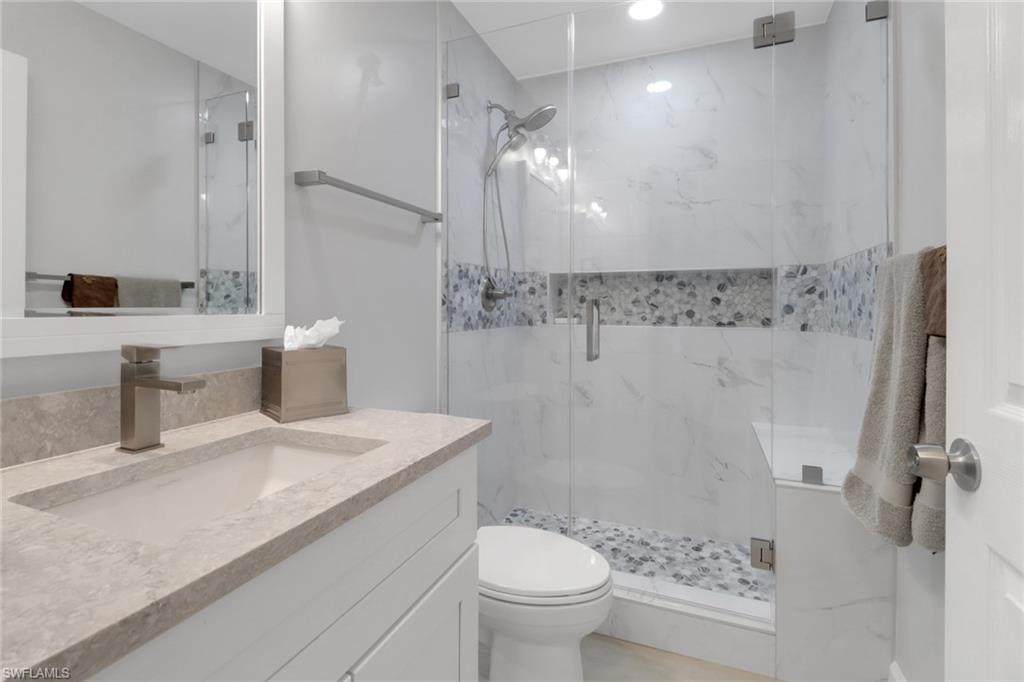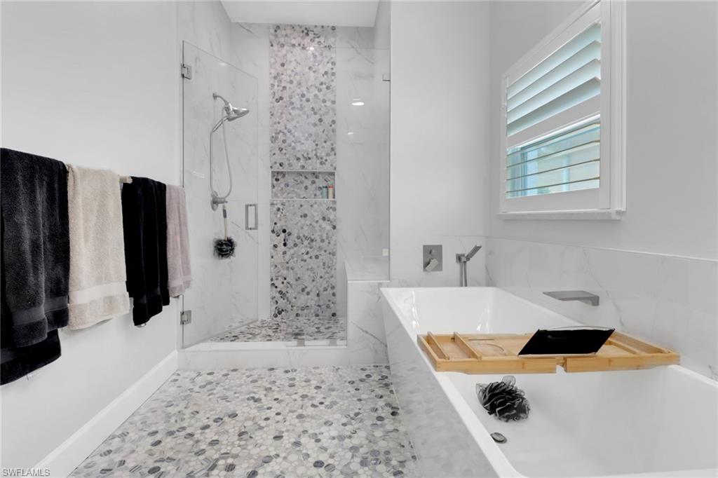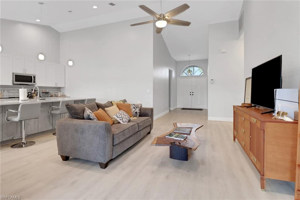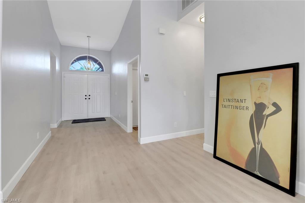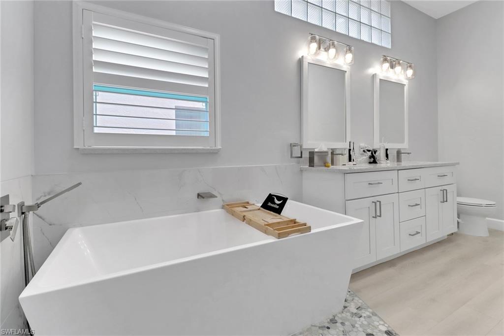 This coveted lakefront home has it all! 3 bedroom, 2.5 bath split floor plan, NEWLY RENOVATED & roof replaced in 2022. Bright with an open floor plan, this distinctive home is adorned with charming architectural detail and is flooded with natural light with rear southern exposure. This home boasts consistent flooring throughout, plantation shutters, custom closets and wall to wall sliders to enhance the lakefront view. The chef’s kitchen has ample storage. You’ll enjoy cooking on all new appliances and a beautiful waterfall quartz custom countertop on the large island. Offers an unobstructed view of the sparkling lake from the common areas and primary bedroom. Primary suite has a spacious a walk-in closet and the bathroom features a large soak in tub, separate shower and double sinks. There is plenty of room to add a pool in the large back yard. Located on a cul-de-sac in desirable Berkshire Lakes, low HOA fees, 15 minutes from downtown Naples and beaches and 5 minutes from the grocery store. A beautiful home for working, entertaining and living the Florida lifestyle! Drop a line in your backyard for catch & release fishing! Start every day feeling like you’re on vacation here!