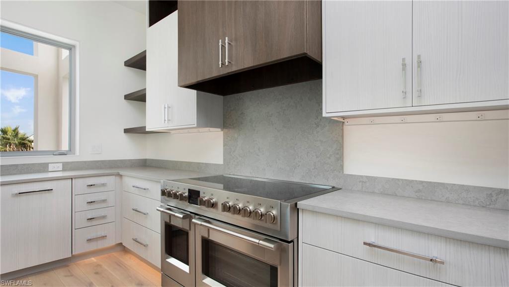 Modern coastal luxury meets architectural brilliance at 1798 Holiday Lane, Naples. This brand-new residence offers direct Gulf access and an unbeatable location just minutes from downtown, 5th Avenue, the beaches, and top golf courses. With 4 bedrooms, 4 bathrooms, and 3,296 sqft every inch of this home has been crafted with style, durability, and comfort in mind. A striking spiral staircase leads to the elevated pool deck, while a state-of-the-art pneumatic glass-enclosed elevator services all three floors. Flood-resistant materials were thoughtfully used below base flood elevation, and a solid standing seam aluminum roof ensures peace of mind for years to come. The oversized garage offers space for up to 6 vehicles, a rare feature for the boating and car enthusiast alike. Inside, custom ES windows that fill the home with natural light, and solid core doors that add a sense of quiet luxury throughout. The gourmet kitchen is equipped with a Sub-Zero refrigerator and freezer, a 48” Fulgor Milano range, and a Wolf microwave. Custom wood flooring and stair treads, accented by sleek glass handrails, complete the modern interior aesthetic. Step outside to your private oasis, where a large swimming pool with a sun shelf and a raised 6-person spa await. Entertain on the second-floor balcony with a built-in outdoor grill and stunning water and sunset views. The home also features a concrete seashell driveway, irrigated Zoysia lawn, custom landscaping, and a boat dock with a 13,000 lb. lift built above the seawall. A rare blend of form and function, this waterfront masterpiece is the ultimate expression of modern Naples living.Designed by Harrell & Co. Architects and built by New Era Construction.