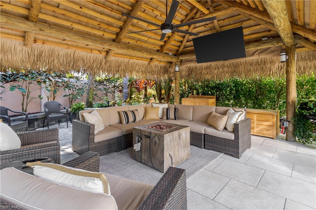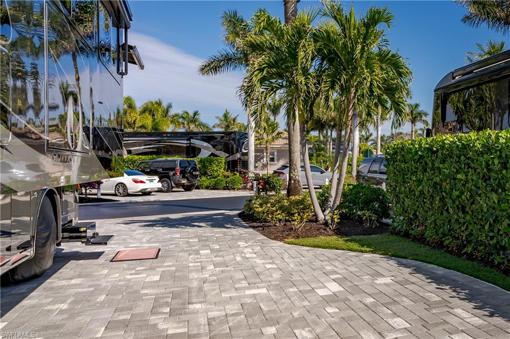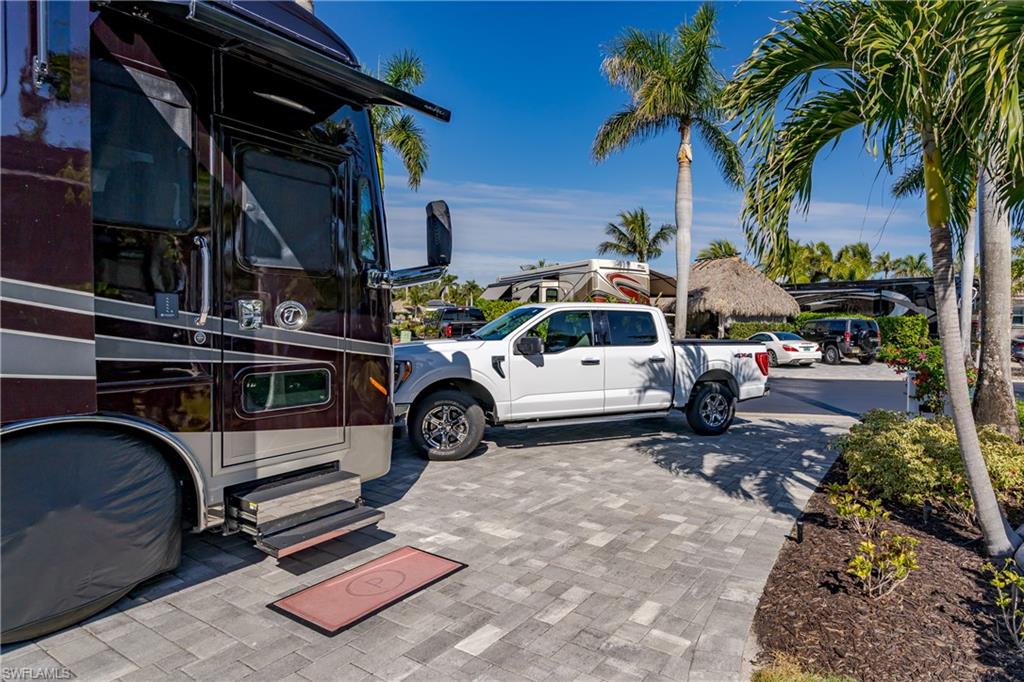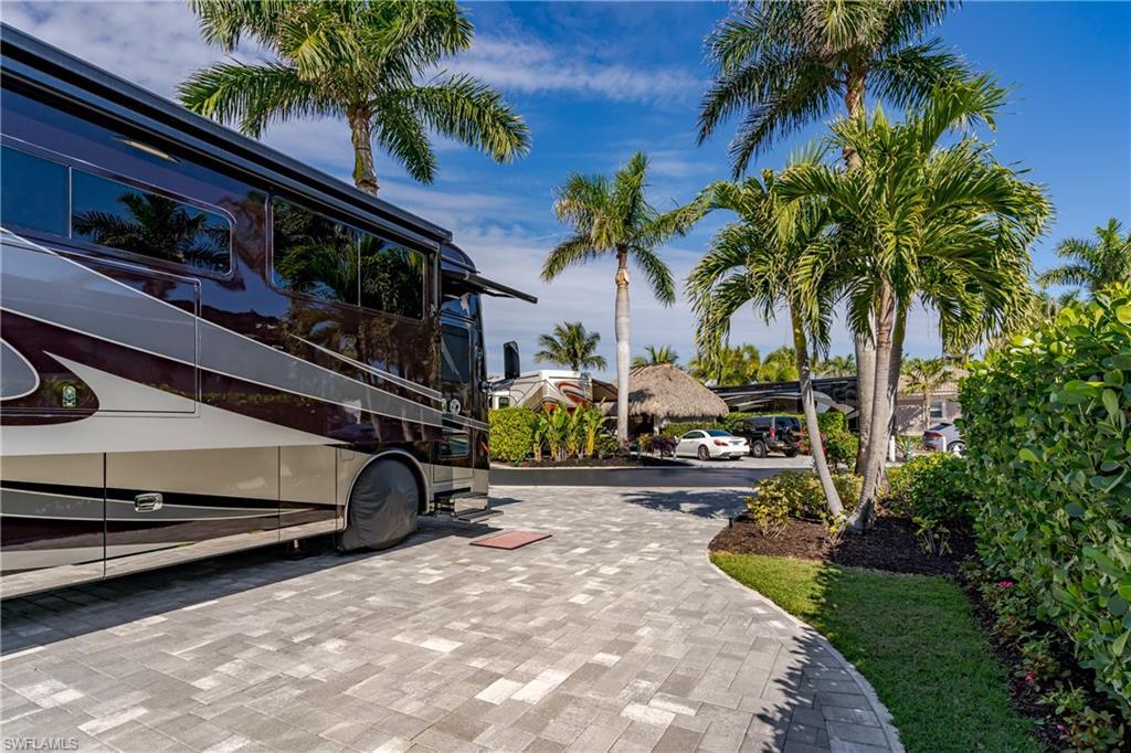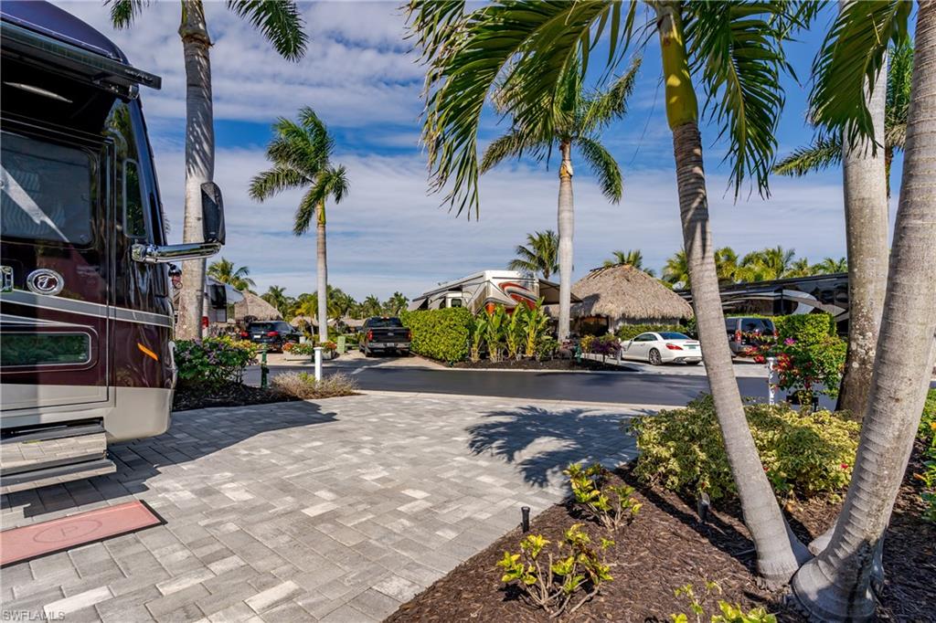 Lot 41 - You drive through the gates after admiring the beautiful flower and Royal Palm lined entry and the two fountains you passed have already welcomed you. As the gates swing open you are now facing an even more magnificent fountain in front of the clubhouse. You now turn and head to your slice of paradise, once again you cannot believe how beautiful this road is lined with Royal Palms... As you back into your beautiful fully paved lot, you admire the beautiful formal landscaping on your property. Wait, you even have a beautiful grass area for your pet to roll in the grass. This property has it all. Now that you are settled in, you head back to your oversized tiki (did I say oversized? should of said massive!), you decide to sit and relax with the beverage of your choice as you watch your favorite show. You plan to have dinner outside at your dining table tonight. You marvel at the privacy you have with the amazing privacy wall and contemplate potentially adding a water feature. But for now, you are so happy to be in paradise and enjoying your turn-key property. What shall you do tomorrow?? Perhaps take one of the community kayaks and launch from the boat ramp and go through Rookery Bay. Maybe you will buy a boat, how convenient would that be to launch and go to the beach or boat up to a restaurant for lunch or dinner from within the resort? Perhaps it is time to learn how to play pickleball and play on one of the three courts? Probably best to build up those muscles first in the fitness center and then sit in the sauna. So many options! Welcome to the magic that is Naples Motorcoach Resort. Naples Motorcoach Resort is a Class A only resort and boasts a beautiful infinity pool, hot spa, exercise room, men's and ladies saunas as well as a catering kitchen that owners can use. There are also two satellite pools with a hot spa, their own rest rooms and a laundry room. We can't forget your furry best friend, the resort even has a dog park! Special note to investors, looking for a place to invest or reinvest as a 1031 exchange? Look no further, own this piece of paradise and put it into the management run rental program. The rental program administration advertises, schedules renters, collects payment including applicable taxes/fees and sends you your portion. These deeded lots are mortgage eligible and great for a quick close.