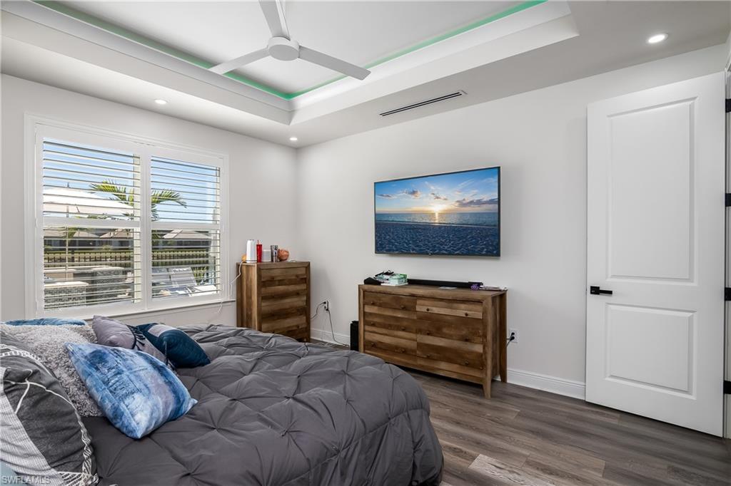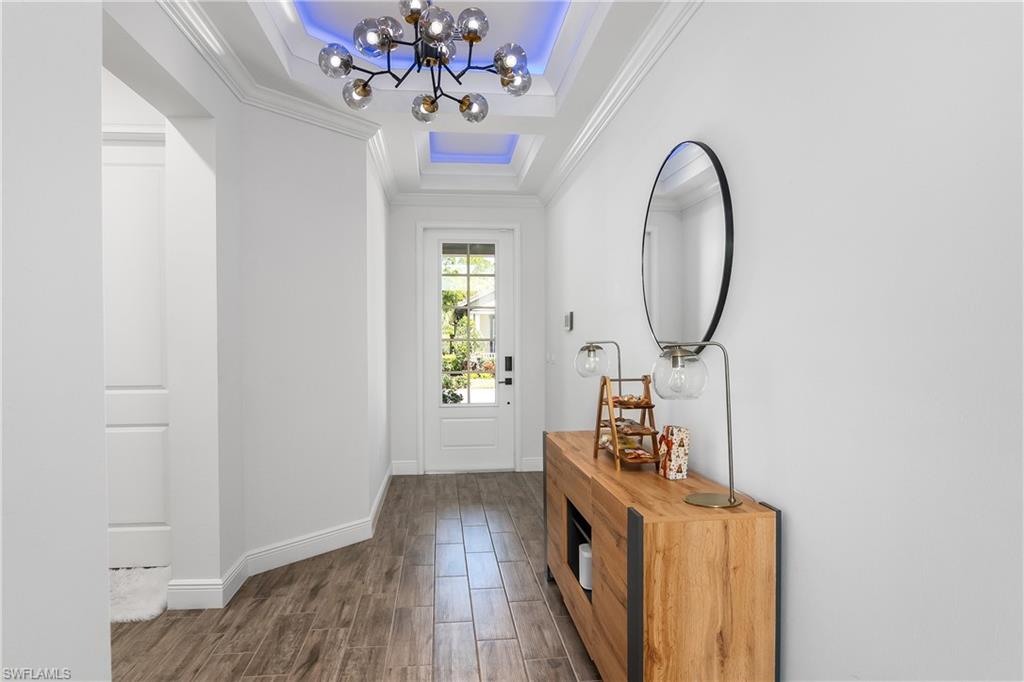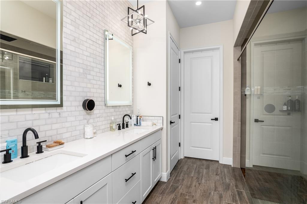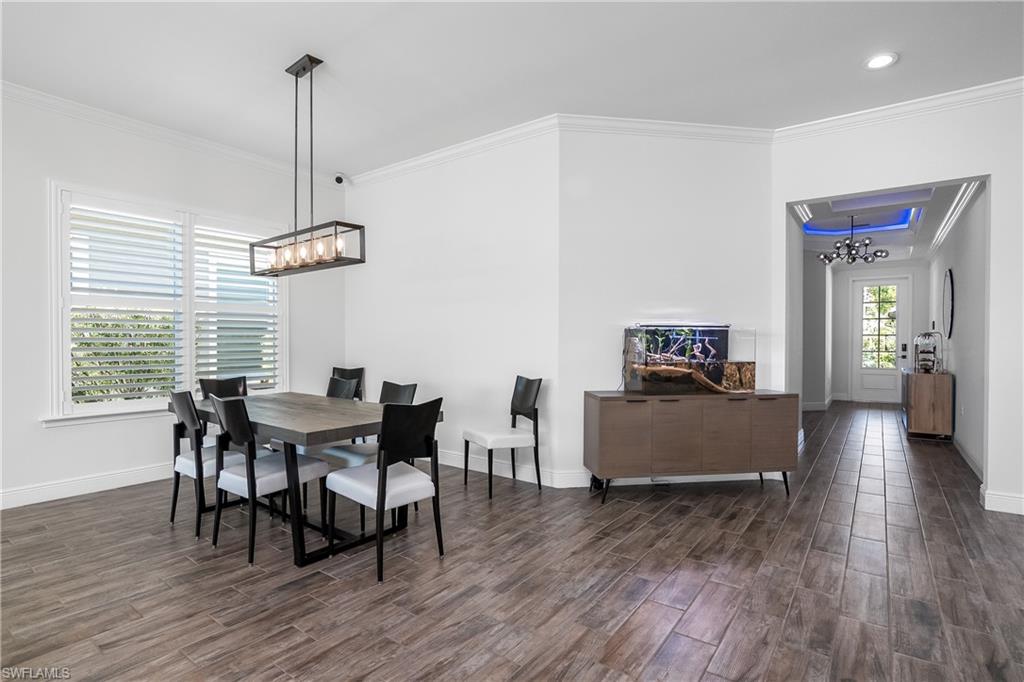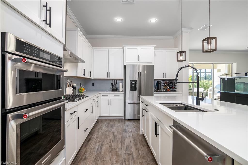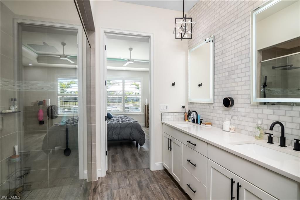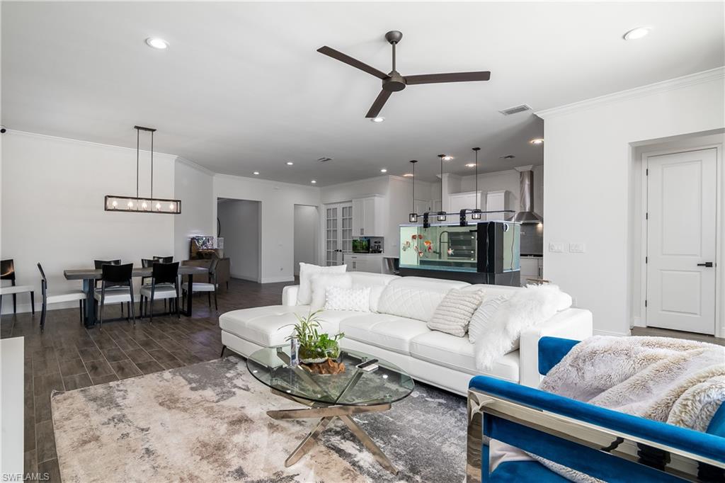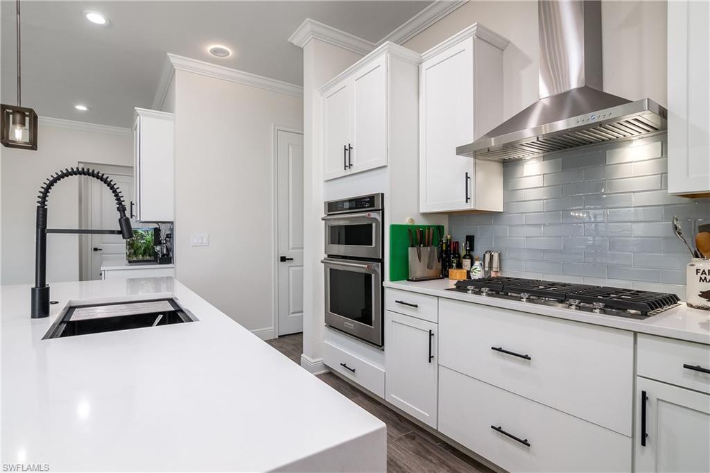 Modern single-story home which allows the ultimate SWFL lifestyle with your own private resort style saltwater heated pool, large custom 10-person spa, Elevated sunbathing deck, poolside full bar including liqueur on-tap, and full outdoor gourmet kitchen. Pool Heater 3x standard capacity for extra fast and extra hot at the touch of a button. Enjoy overlooking the community lake with fountain, as well as your 6000 Gallon Acrylic KOI Pond, makes your outdoor space even more of a tropical oasis. One of only a few homes in community on gas. 900 Gallon tank provides natural gas to both outdoor kitchen, outdoor fire-pits and indoor kitchen range. Home runs a usual FPL bill of $0 with a extra-large 56 panel solar system. Master suite includes oversized walk-in shower with Multiple shower heads and Dual Zone Hot water controls. Master suite also includes extra-large walk-in closet with built in closet organizers. Uplighting and enhanced ambiance lighting by pool and spa. All outdoor pool, spa, fire-pits, and lighting are automated thru remote control or mobile app. Home includes video security system. Come enjoy this beautiful paradise with KOI which attract positive forces and numerous beneficial outcomes. Attic has been set up for extra storage. Home equipped with Hepa air filtration system. Community is centrally located and part of a A+ School System. Close to shopping and beaches.