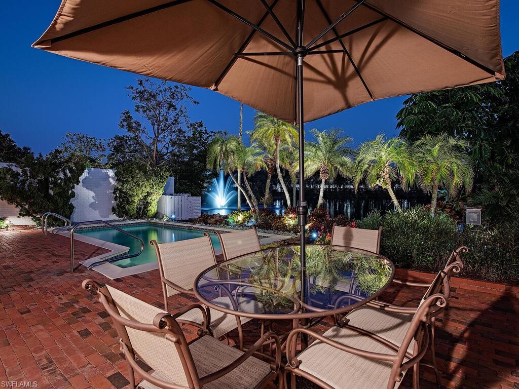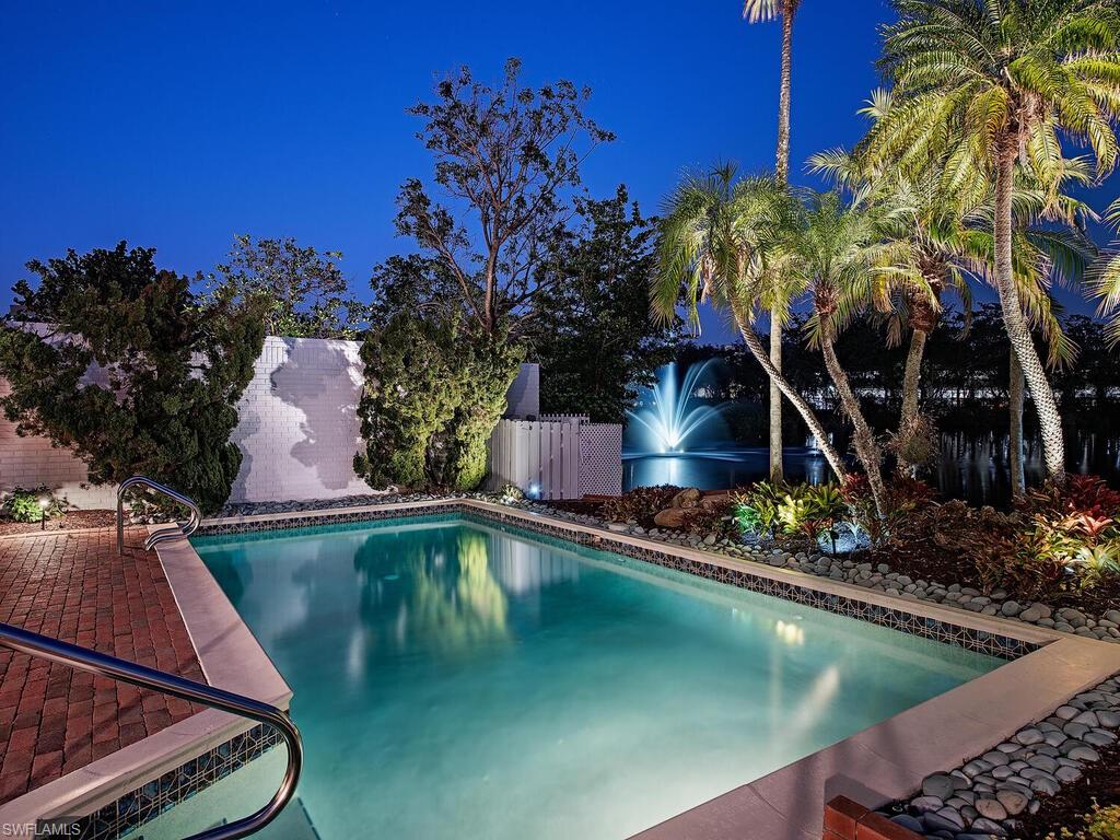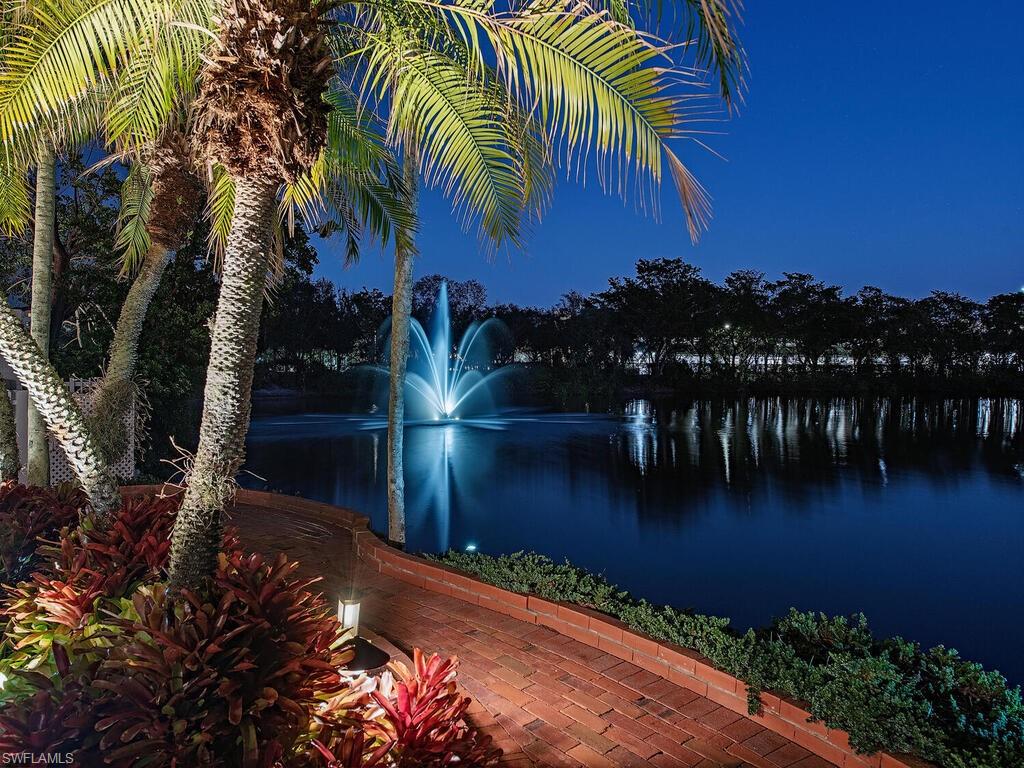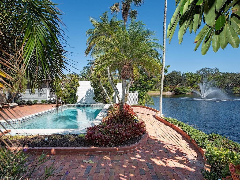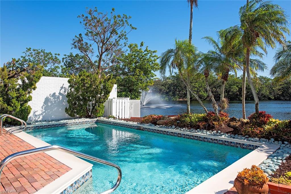 A very special detached Bridgeway Villa can now be yours. Recently updated with NEW furnishings included with the home, 656 Bridgeway was the site chosen as the Model when this community was built. As you approach the free-standing villa, reminiscent of Cape Cod, a winding flat-stone path leads you through the charming courtyard, past a soothing fountain surrounded by verdant tropical plants and trees. Southern exposure assures continuous sun on the spacious terrace, where the generously sized heated pool overlooks the entire pond. Additional paths guide you around the sparkling pool. Lush orchids tumble from the palms and stag-horn ferns. Dining al fresco is enhanced by the large pond fountain, beautifully lit at night. And how about the warm, inviting interior of this model villa. One feels right at home immediately. Bright living areas, vaulted ceilings, beautiful tile floors, and an open kitchen with water views are among the many welcoming features. Enjoy a splendid indoor/outdoor lifestyle in this private setting within Pelican Bay. Just across the street you will love the proximity to Waterside Shops, including the newly underway RH (Restoration Hardware) rooftop restaurant and luxury furnishings store, and Artis-Naples; home of the Baker Museum and the Naples Philharmonic. Pelican Bay offers an unparalleled lifestyle with access to world-class amenities including tennis courts, pickleball courts (in the works), state-of-the-art fitness center, and over 3 miles of private beach offering two restaurants, kayaks, canoes, catamarans and sunfish sailboats.