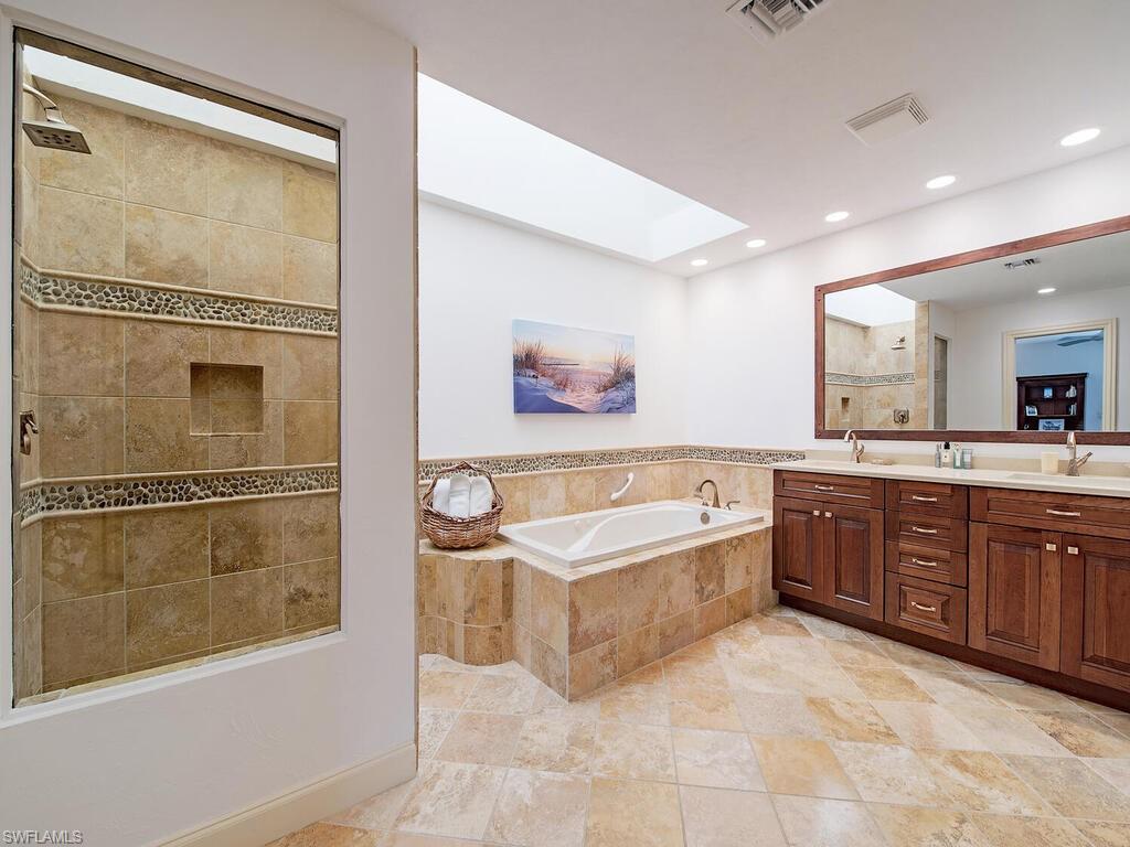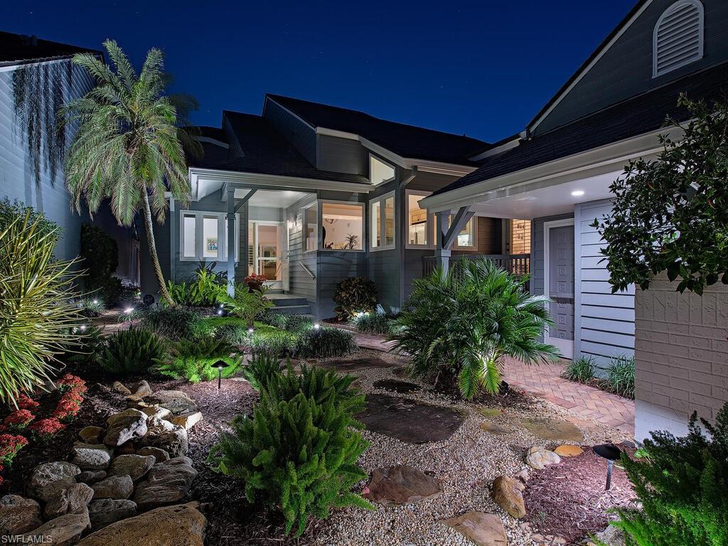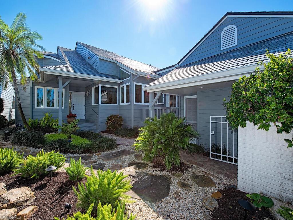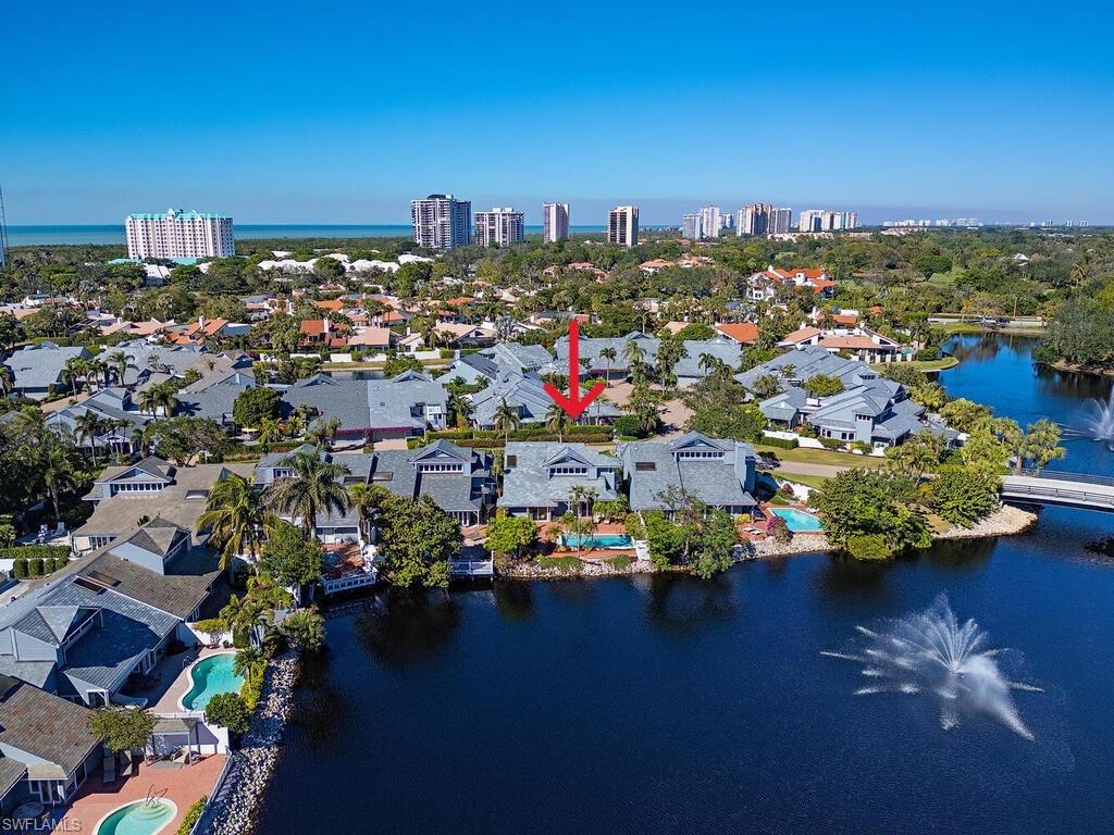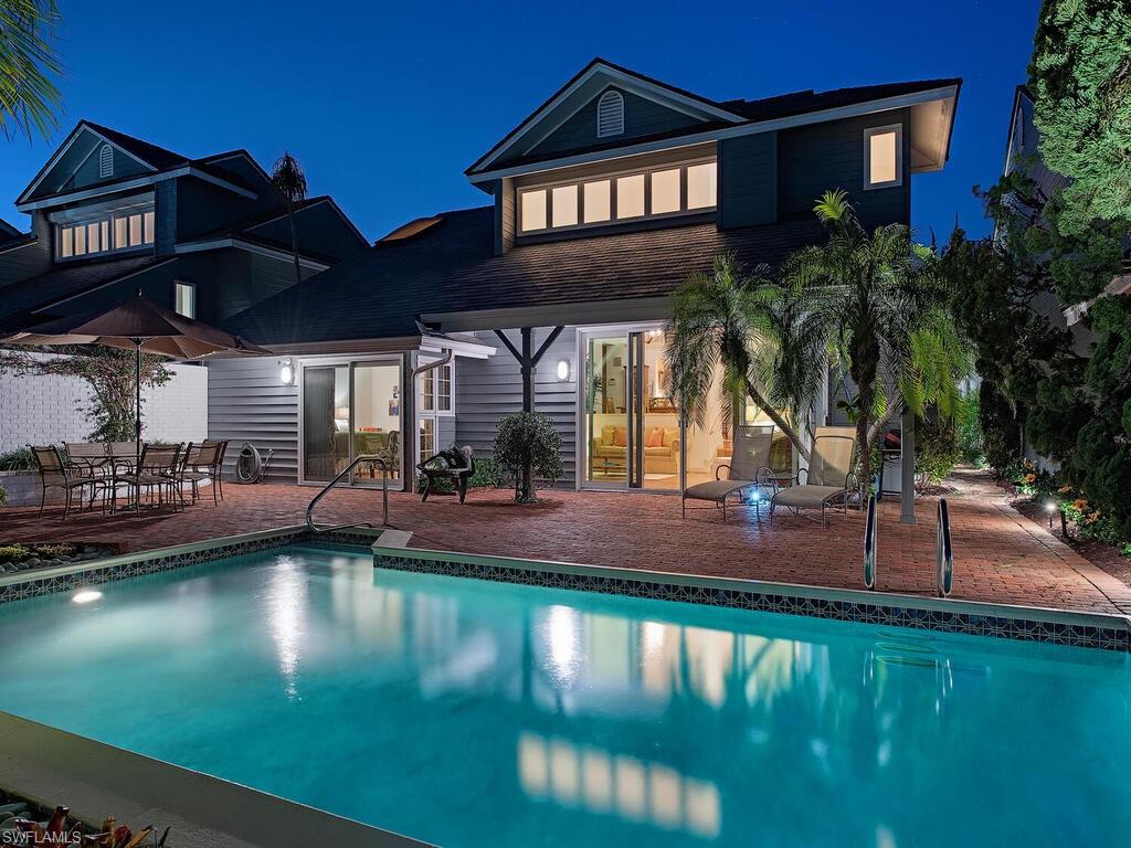 A very special detached Bridgeway Villa can now be yours. Recently updated with NEW furnishings included with the home, 656 Bridgeway was the site chosen as the Model when this community was built. As you approach the free-standing villa, reminiscent of Cape Cod, a winding flat-stone path leads you through the charming courtyard, past a soothing fountain surrounded by verdant tropical plants and trees. Southern exposure assures continuous sun on the spacious terrace, where the generously sized heated pool overlooks the entire pond. Additional paths guide you around the sparkling pool. Lush orchids tumble from the palms and stag-horn ferns. Dining al fresco is enhanced by the large pond fountain, beautifully lit at night. And how about the warm, inviting interior of this model villa. One feels right at home immediately. Bright living areas, vaulted ceilings, beautiful tile floors, and an open kitchen with water views are among the many welcoming features. Enjoy a splendid indoor/outdoor lifestyle in this private setting within Pelican Bay. Just across the street you will love the proximity to Waterside Shops, including the newly underway RH (Restoration Hardware) rooftop restaurant and luxury furnishings store, and Artis-Naples; home of the Baker Museum and the Naples Philharmonic. Pelican Bay offers an unparalleled lifestyle with access to world-class amenities including tennis courts, pickleball courts (in the works), state-of-the-art fitness center, and over 3 miles of private beach offering two restaurants, kayaks, canoes, catamarans and sunfish sailboats.