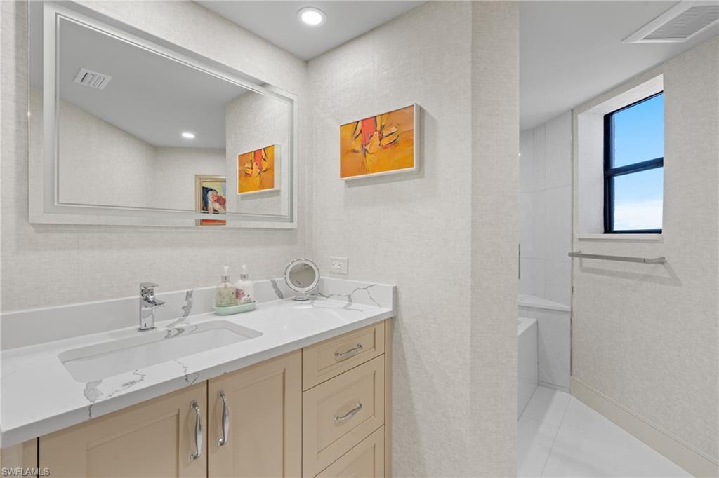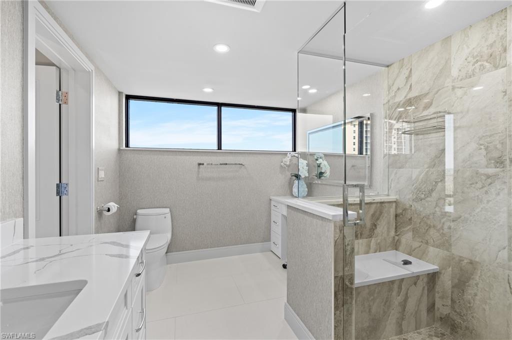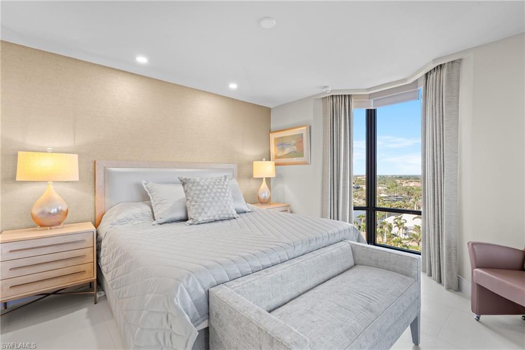 Perched high on the 12th floor of the exquisite Dorchester in Pelican Bay, this meticulously 2023 remodeled residence presents a unique opportunity to embrace the finest in Naples living. Bathed in natural light, this unit exudes modern elegance, featuring sleek quartz countertops throughout, complemented by timeless, neutral cabinetry in the kitchen. The culinary space is outfitted with new top-of-the-line appliances, including a Wolf induction/electric cooktop, GE Monogram refrigerator/freezer, and a Monogram oven, designed to satisfy even the most discerning chef. This residence is equipped with electric shutters on all balconies, a new tankless water heater, and the building recently completed the install of a new roof in 2024. The Dorchester offers under-building parking, 24-hour security, and on-site management to make your life worry-free. Relax by the resort-style pool or stay fit in the state-of-the-art fitness center. Host gatherings in the community room, or accommodate visitors in the guest suite. Step outside your door and experience Pelican Bay’s unparalleled amenities, all within walking distance to The Commons and the convenient Pelican Bay tram system. At Pelican Bay, you’ll also enjoy private access to nearly three miles of pristine Gulf beaches, where beach attendants make every day feel like you are at a 5 star resort - from setting up loungers and umbrellas to providing kayaks and sailboats for your enjoyment. Dine beachfront at Marker 36 or The Sandbar, or take advantage of the fitness classes and facilities at the exclusive Beach Club. This residence offers not only an exceptional home but an unmatched lifestyle, blending luxury, convenience, and a premier location. Don’t miss this rare opportunity to own a piece of paradise in the heart of prestigious Pelican Bay.