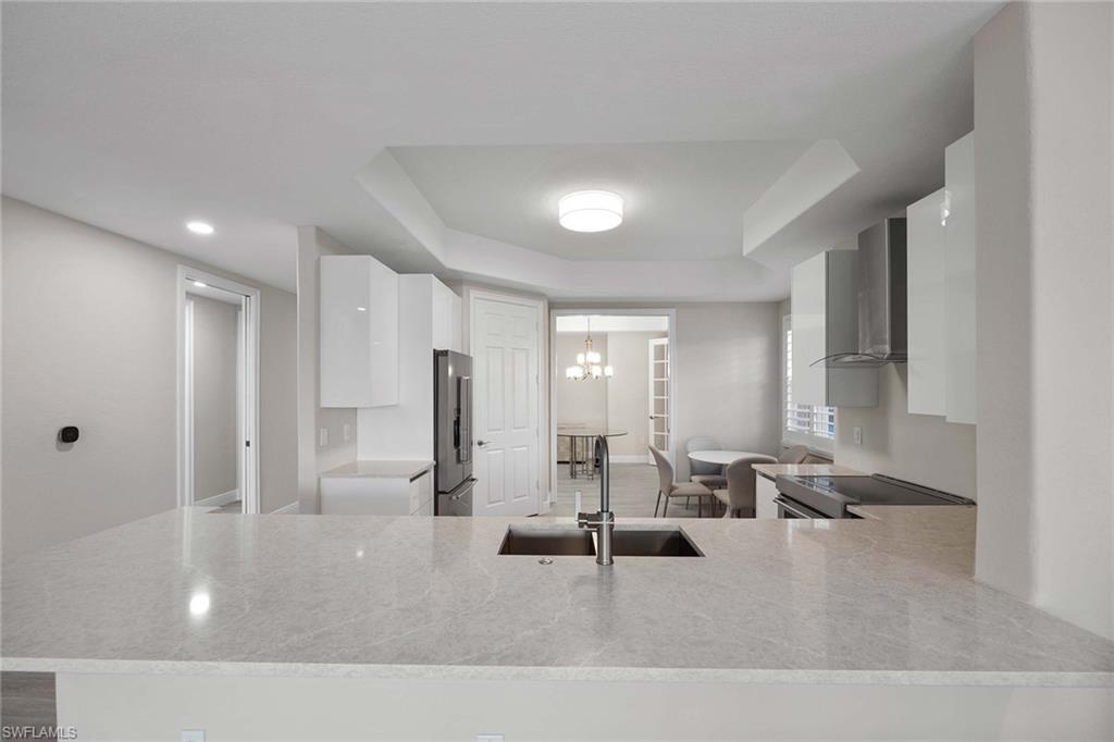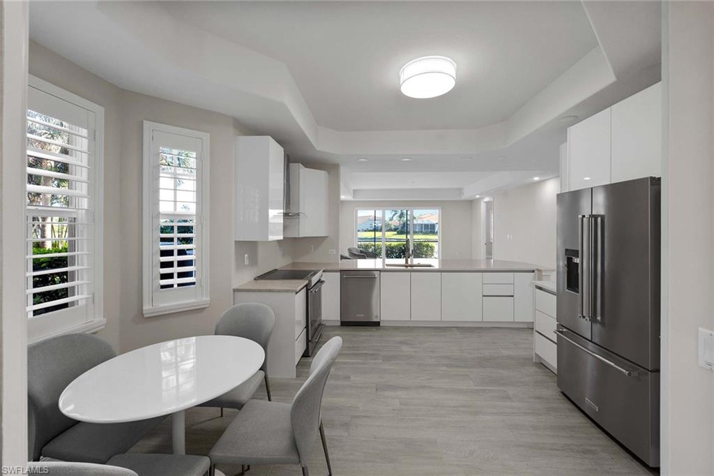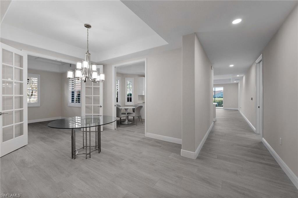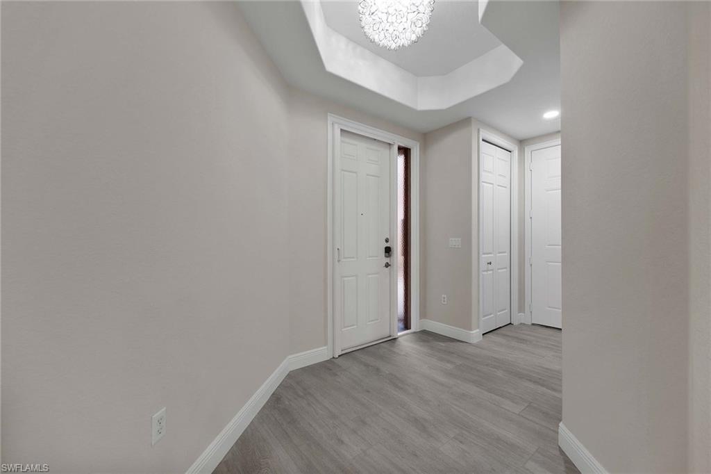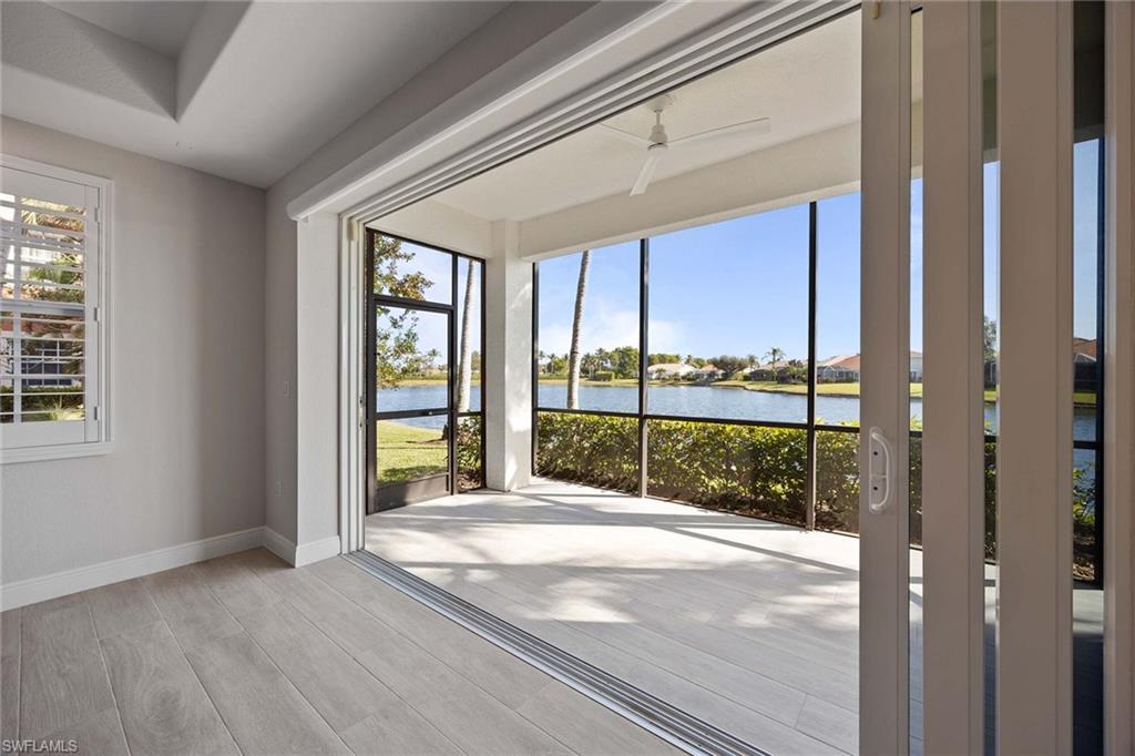 This first-floor coach home boasts a breathtaking lake view and has been meticulously upgraded with new flooring, fresh paint, new kitchen cabinets, new kitchen appliances and new kitchen countertops. With over 2,100 square feet under air, this spacious home features a large primary bedroom with two closets, a bath with dual sinks, a separate soaker tub and a shower. The second bedroom includes a full bath, and the den can easily be used as an office or a third bedroom. The home also offers a formal dining room, an eat-in kitchen and a large under-air storage area. Enjoy membership to the award-winning Players Club & Spa, which includes two resort-style pools, a lap pool, a huge fitness center, tennis courts, pickleball, bocce ball, two restaurants, a full-service spa and a full-time activity director. Lely Resort also offers two public golf courses and one private course.