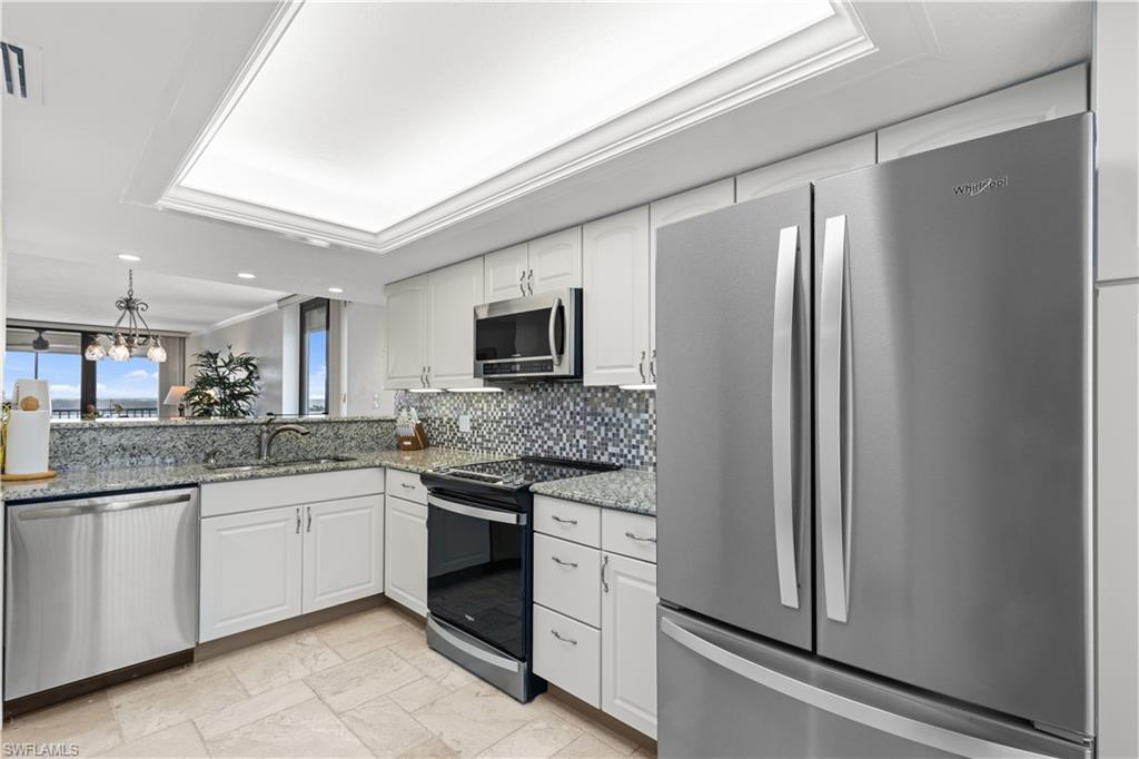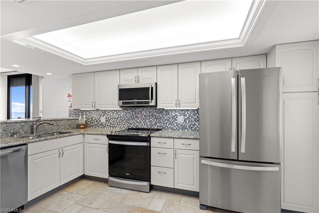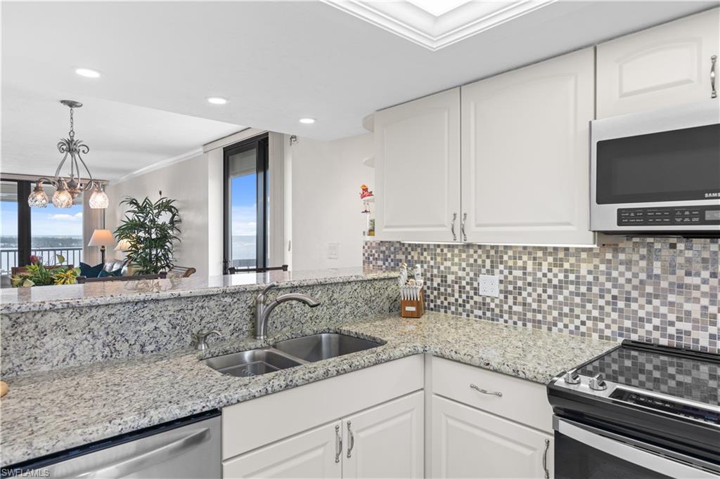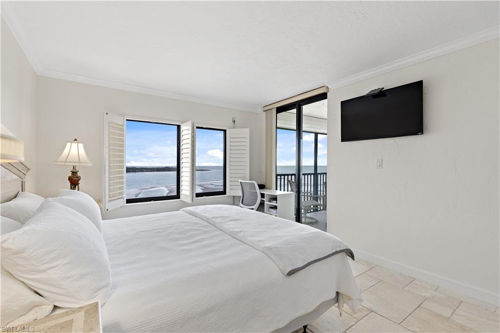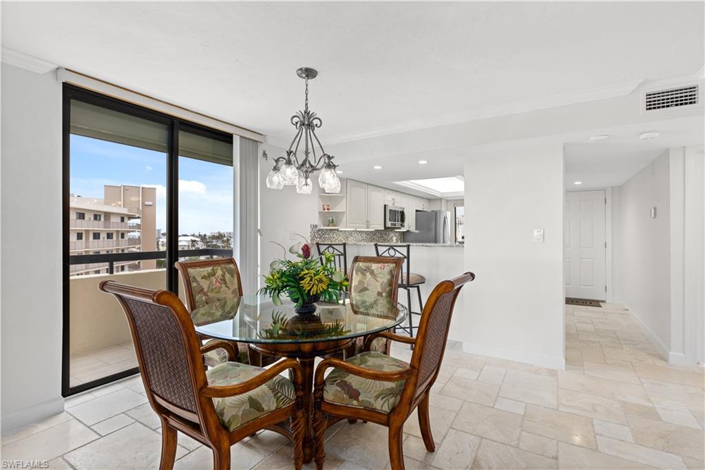 This property offers a perfect blend of stunning PANORAMIC VIEWS and modern amenities. From EVERY WINDOW, you'll be treated to gorgeous vistas of Fort Myers Beach, Lover's Key, and Big San Carlos Pass. The open, END UNIT design allows natural light to flood the space, making it SO BRIGHT and INVITING. The unit has been REMODELED with updated finishes and freshly painted inside and out, giving it a fresh, modern feel. The home is being sold TURNKEY FURNISHED, meaning you can move in and start enjoying the island lifestyle right away. The prime location on the south end of the island ensures easy access off the island, putting you near restaurants, shopping, and entertainment. Relax and take in the Gulf breeze on one of the two lanais. The kitchen is equipped with new, modern appliances, and the property features hurricane impact windows and doors, along with newly added lanai shutters for extra protection. Other upgrades include a newer A/C system and water heater.