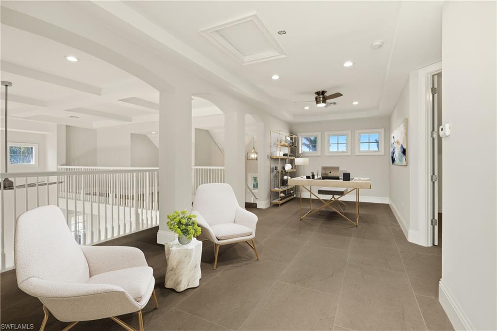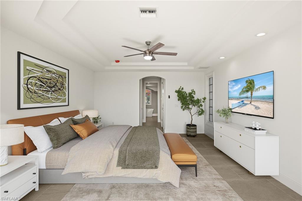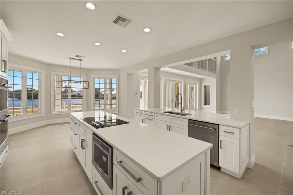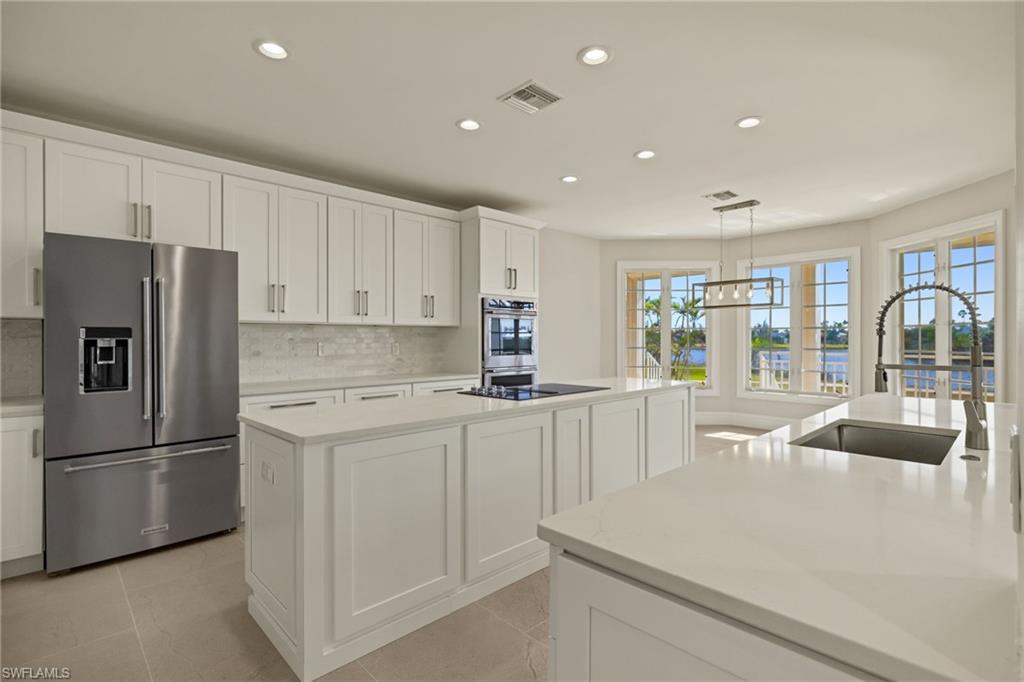 NEW IMPACT WINDOWS AND DOORS! This custom 4 bedroom, 4.5 bath, remodeled pool home is located on a quiet cul-de-sac on one of Sanibel's prettiest streets in Beachview Estates. Expansive views of the lake and golf course from almost every room. The main living level has a private office, volume ceilings, large 2-story great room, custom tile floors, laundry room with cabinets and sink, guest half bath and is freshly painted from top to bottom. The enormous eat-in kitchen has quartz counters, a large island, marble tile backsplash and all stainless-steel KitchenAid Appliances. The primary suite offers 2 walk-in closets, sliders to the back porch overlooking the lake & pool, plenty of natural light along with a luxurious bathroom offering a soaking tub, walk-in shower, double sinks, make-up vanity with quartz counters. The 2nd floor has 2guest bedroom en-suites, loft area and den. If you're an art collector this is your home, incredible wall space throughout. There is a separate mother-in-law suite with living/dining area, morning bar/small kitchenette, private bedroom and a full bath. The lower level offers an incredible amount of storage, plenty of room for a workshop and a 2-car garage.