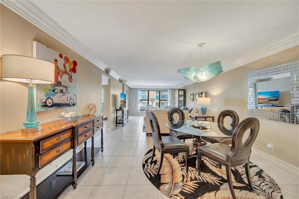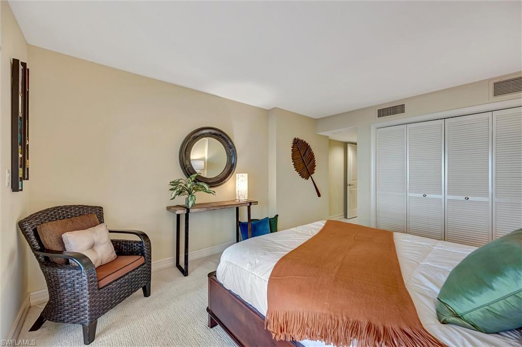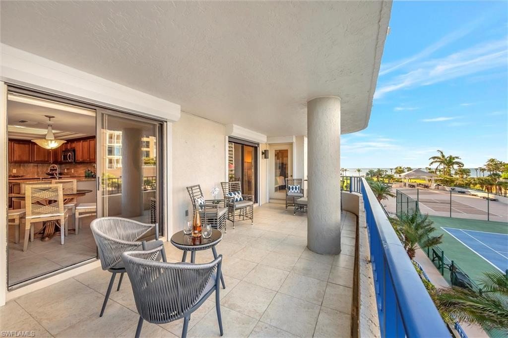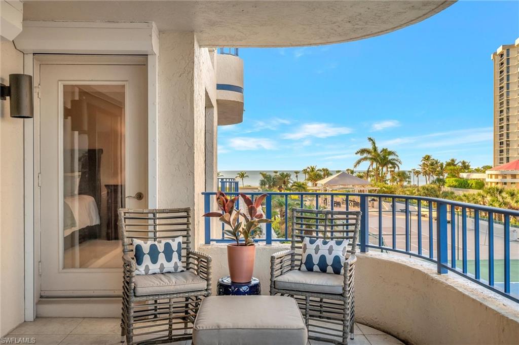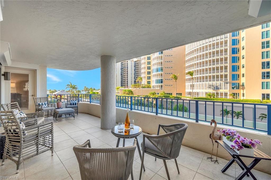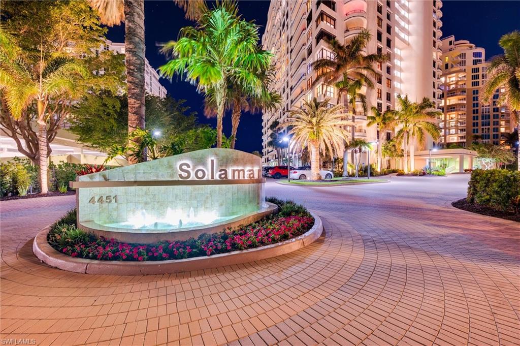 Best Value in Park Shore! Come and enjoy the gulf view from the oversized balcony of this beautiful 2 Bed/2 Bath with 1750 SF u/ac located on the 4th floor of the Solamar in the heart of Naples' premier neighborhood, Park Shore. This perfect and spacious condominium features tile flooring throughout the living areas, a remodeled kitchen with striking granite countertops, full granite backsplash, stainless steel appliances, and pantry. Updated chandeliers and recessed lighting, tiled lanai/balcony, full-size laundry room, extra-large storage closet, custom crown and base moldings, walk-in closet and 2 closets in the primary. You will love the magnificent primary bath with double vanity adorned with marble countertops, separate water closet with bidet, soaking tub & walk-in master shower. Important features for the snowbird are a whole-house dehumidification system, hurricane shutters for doors, impact glass windows, and smart thermostat. Decorated with a cozy modern flair and offered TURNKEY. Absolutely no work is needed to move-in and enjoy the beach life. Solamar, is a 20-story prominent high-rise atrium building with a waterfall, reflecting pond and beautiful lighting along the Park Shore beachfront offering residents a blend of luxury and comfort. A full-time building manager, 24-hour lobby supervision, a solid reserve budget and NO water damage from the recent storms make Solamar a buyer's favorite choice for value, amenities, and peace of mind. A great fit for a variety of lifestyles and offers residents the option of reserving two guest suites, use of an impressive fitness center, a wonderful gulfside heated pool and spa overlooking the park, tennis and pickleball courts, a grilling and bar area, secure under-building parking garage with one deeded garage parking space and extra spaces, social, library and conference rooms, and lush landscaping with many fountains. The Promenade, a 3-mile boardwalk along the gulf, is perfect for your morning outdoor exercise routine. Owners love the proximity to The Village Shops on Venetian Bay, a premier waterfront complex that is home to boutiques, bay side restaurants and a boat marina. Minutes to Naples' famed 5th Ave, Waterside Shops and Mercato for more designer shopping, five-star restaurants and pubs. If you dream of living on a white sandy beach and feeling gulf breezes, if you are not into home maintenance, if you desire an easy and active lifestyle, with sunbathing, beach yoga, biking, pickleball or boating, then the Solamar in Park Shore is the ideal home and escape you are looking for! Life is good at the Solamar!