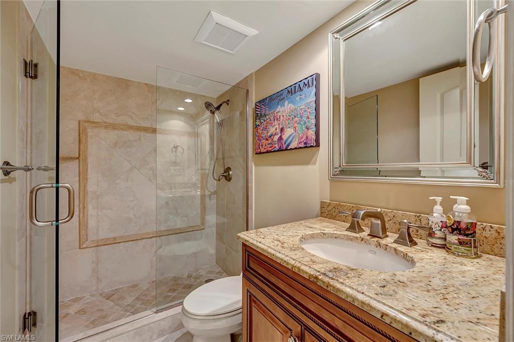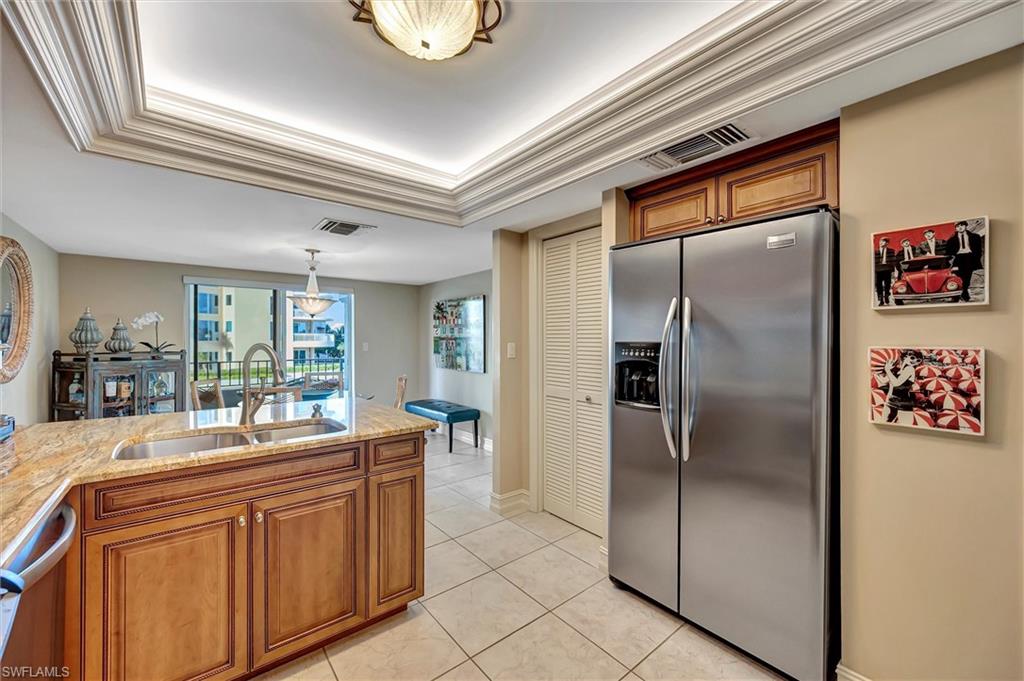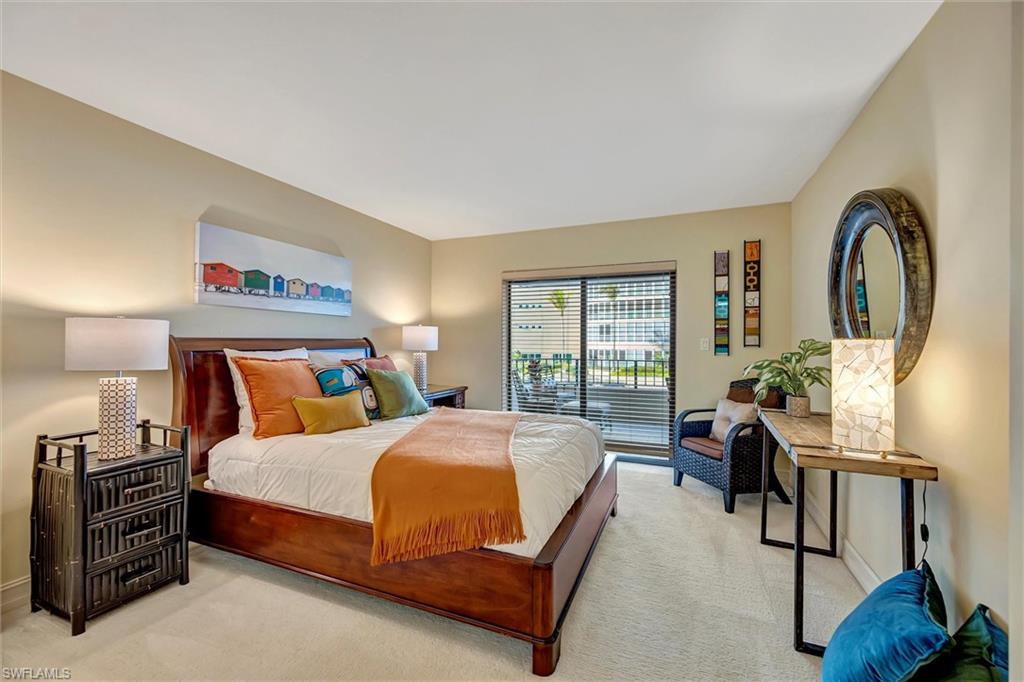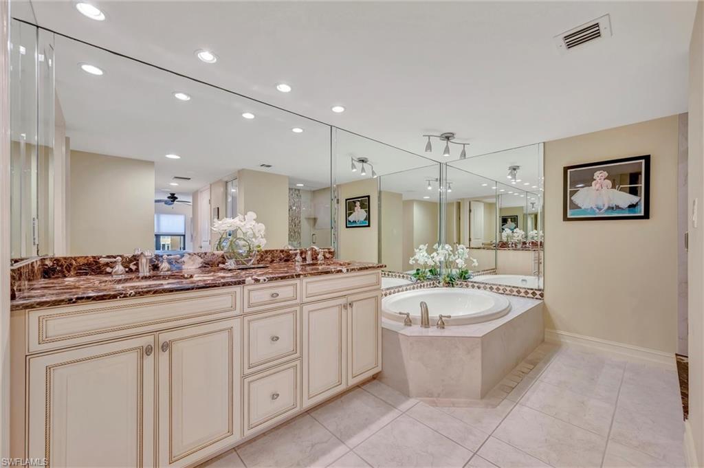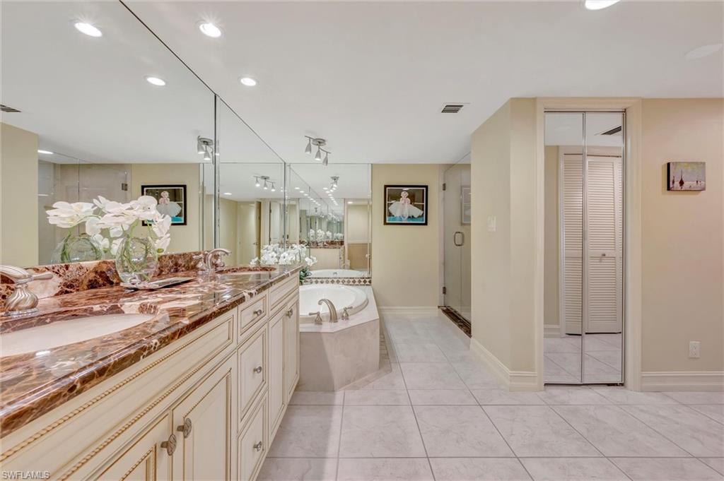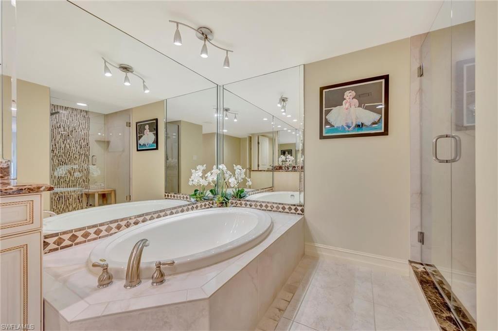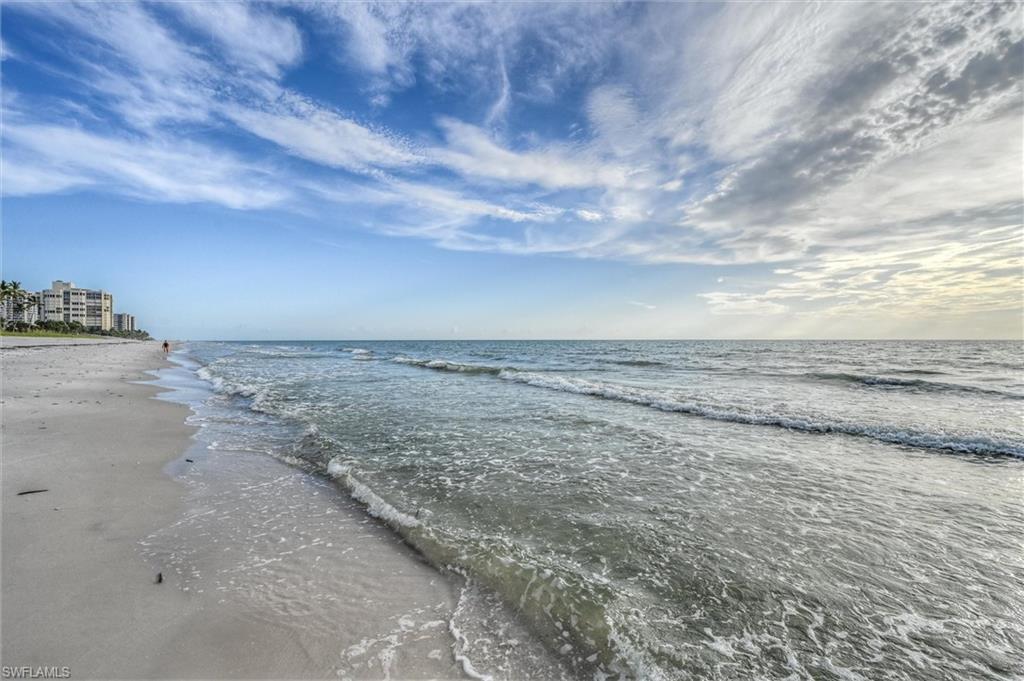 Best Value in Park Shore! Come and enjoy the gulf view from the oversized balcony of this beautiful 2 Bed/2 Bath with 1750 SF u/ac located on the 4th floor of the Solamar in the heart of Naples' premier neighborhood, Park Shore. This perfect and spacious condominium features tile flooring throughout the living areas, a remodeled kitchen with striking granite countertops, full granite backsplash, stainless steel appliances, and pantry. Updated chandeliers and recessed lighting, tiled lanai/balcony, full-size laundry room, extra-large storage closet, custom crown and base moldings, walk-in closet and 2 closets in the primary. You will love the magnificent primary bath with double vanity adorned with marble countertops, separate water closet with bidet, soaking tub & walk-in master shower. Important features for the snowbird are a whole-house dehumidification system, hurricane shutters for doors, impact glass windows, and smart thermostat. Decorated with a cozy modern flair and offered TURNKEY. Absolutely no work is needed to move-in and enjoy the beach life. Solamar, is a 20-story prominent high-rise atrium building with a waterfall, reflecting pond and beautiful lighting along the Park Shore beachfront offering residents a blend of luxury and comfort. A full-time building manager, 24-hour lobby supervision, a solid reserve budget and NO water damage from the recent storms make Solamar a buyer's favorite choice for value, amenities, and peace of mind. A great fit for a variety of lifestyles and offers residents the option of reserving two guest suites, use of an impressive fitness center, a wonderful gulfside heated pool and spa overlooking the park, tennis and pickleball courts, a grilling and bar area, secure under-building parking garage with one deeded garage parking space and extra spaces, social, library and conference rooms, and lush landscaping with many fountains. The Promenade, a 3-mile boardwalk along the gulf, is perfect for your morning outdoor exercise routine. Owners love the proximity to The Village Shops on Venetian Bay, a premier waterfront complex that is home to boutiques, bay side restaurants and a boat marina. Minutes to Naples' famed 5th Ave, Waterside Shops and Mercato for more designer shopping, five-star restaurants and pubs. If you dream of living on a white sandy beach and feeling gulf breezes, if you are not into home maintenance, if you desire an easy and active lifestyle, with sunbathing, beach yoga, biking, pickleball or boating, then the Solamar in Park Shore is the ideal home and escape you are looking for! Life is good at the Solamar!