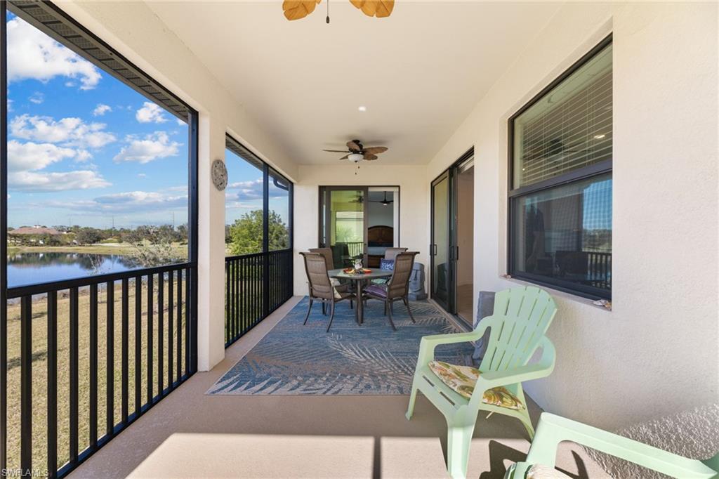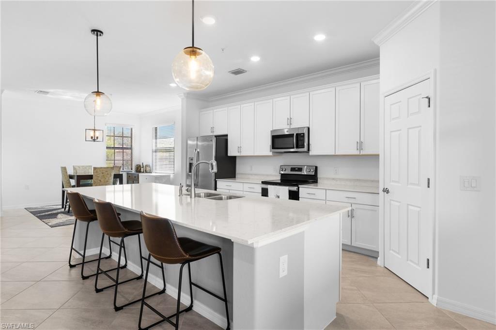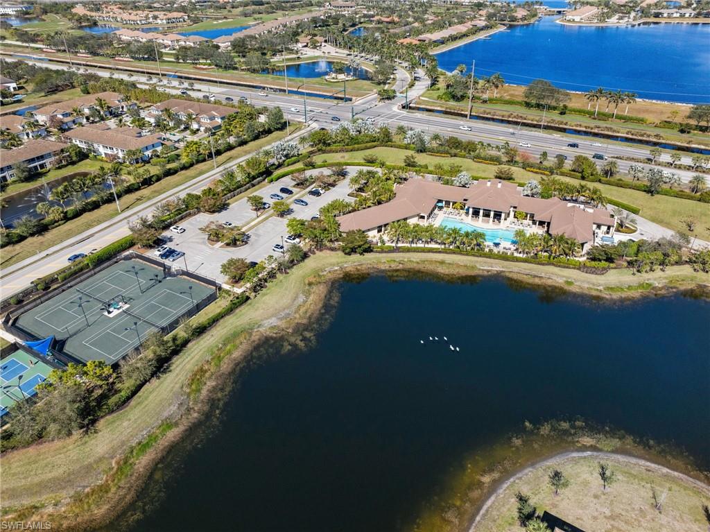 Discover this luxurious and spacious end unit with breathtaking lake views. This meticulously maintained residence features a large quartz kitchen island, stainless steel appliances, and a generous pantry, making it perfect for entertaining. The unit also includes an oversized two-car garage and ample air-conditioned storage space under the stairs. Enjoy peace of mind with impact glass on all doors and windows. The community offers an array of amenities, including a resort-style pool, bar, wellness area, movie theatre, and courts for pickleball, tennis, and bocce, along with live entertainment.