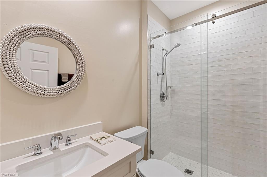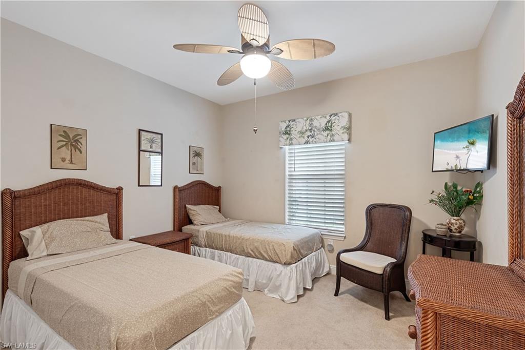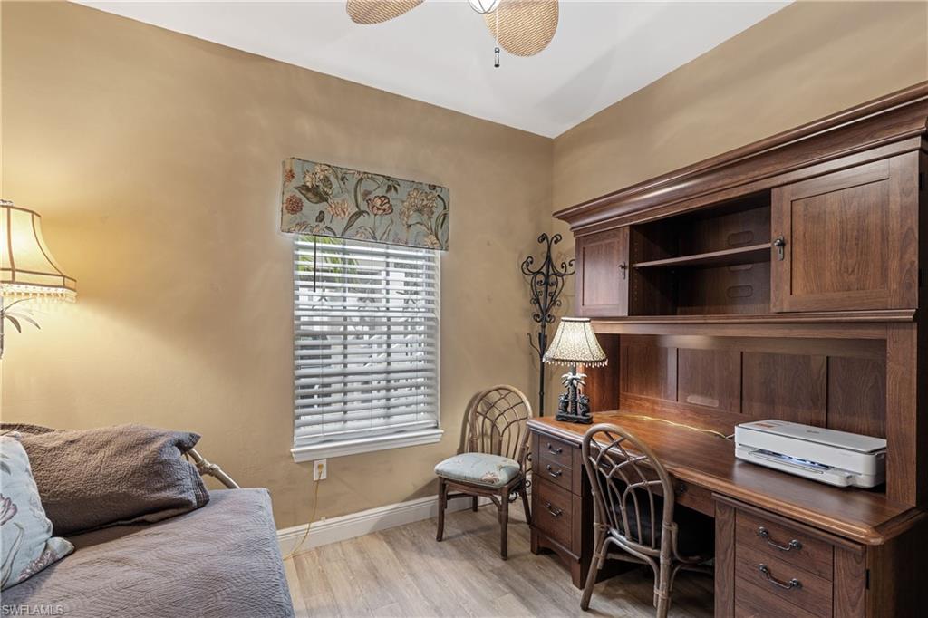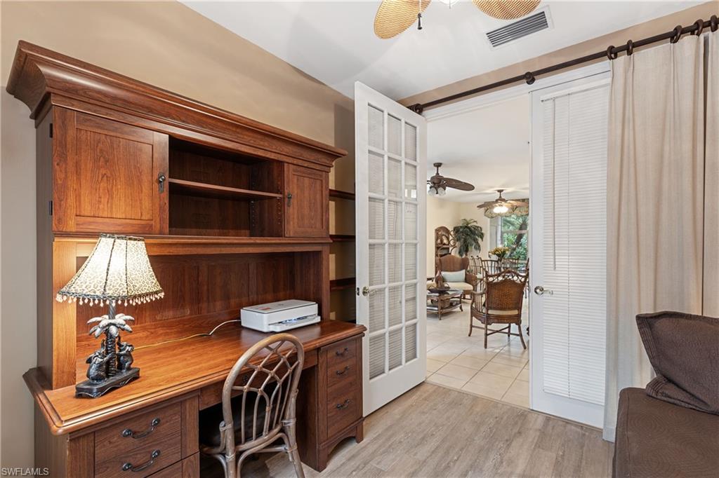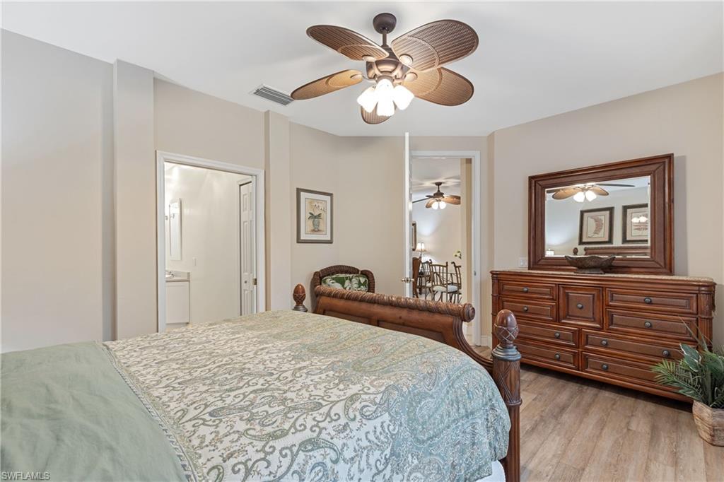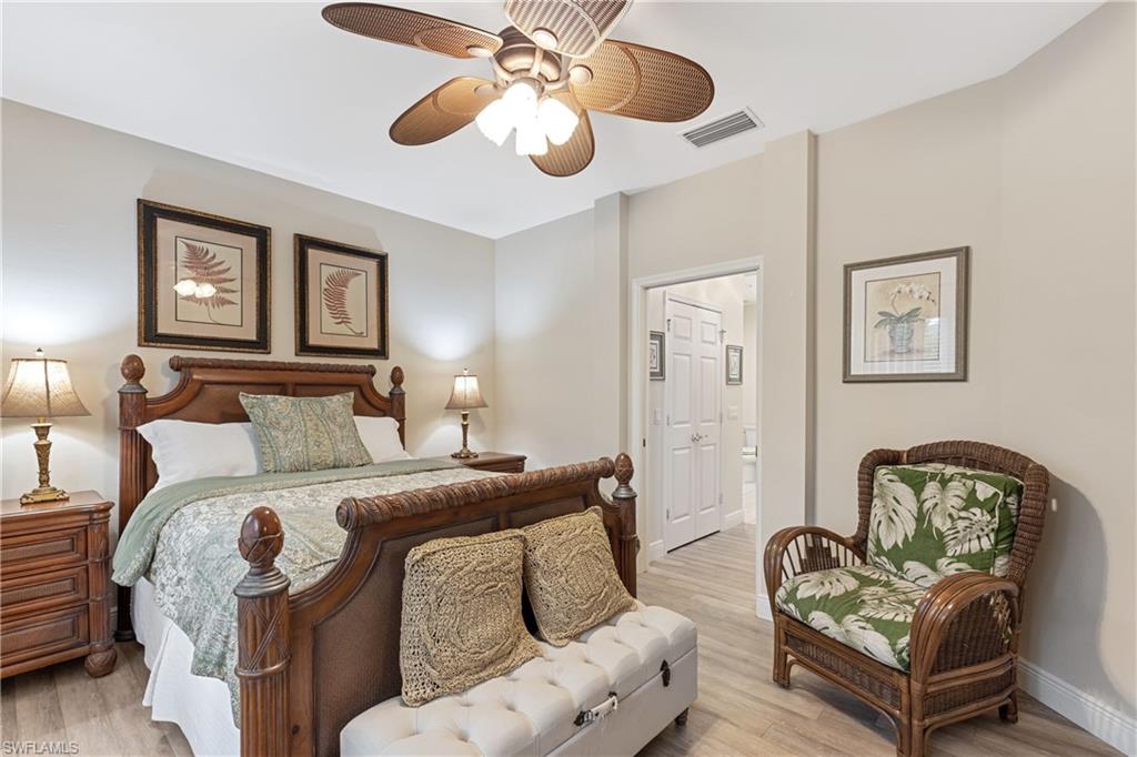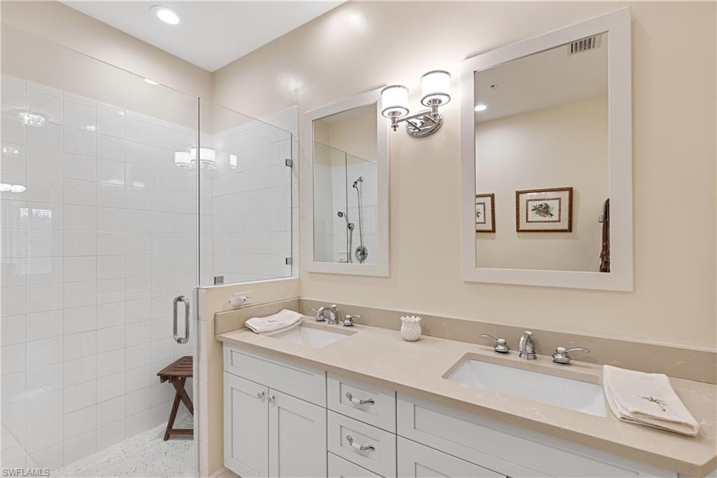 $68k remodeled first floor condo and a great price improvement! This two bedroom plus den first floor condo has a remodeled kitchen and baths with a comfortable sophisticated flair. The kitchen offers new shaker style cabinetry that flows all the way to the ceiling with lighted and windowed cabinet tops, counter tops are complimented with a lovely quartz. Appliances are upgraded and are stainless steel plus the refrigerator is encased in the cabinetry. The kitchen also offers a beautiful tiled backsplash. Gorgeous master and guest baths include updated showers and shaker style cabinetry with quartz counter tops. Main bedroom and den offer stylish plank wood flooring and 5 inch upgraded baseboards which flow throughout the home. Custom fans and lighting through out and new washer dryer combination. This lovely home is being sold mostly furnished and is a short walk to all the resort style amenities that are included with your purchase which include a Jr. Olympic pool, hot tub, a cabana bar by the pool where you can enjoy lunch and happy hours, a fitness facility with locker rooms and sauna, a Florida style clubhouse with restaurant, bar, tennis shop and administration offices. There is also bocci and pickle ball courts, a kids play area and plenty of sidewalks. If you are a tennis player there is an optional tennis membership that offers 12 beautifully kept Har Tru tennis courts that are lighted for night play plus we have an on site USTA teaching pro who offers private lessons and clinics. The tennis has many levels of play and offers team tennis as well. This gated resort style community is minutes drive away from fantastic shopping, beautiful beaches, theater, shops and the SW Florida International airport. Enjoy a beautiful and social resort community with a fantastic location.