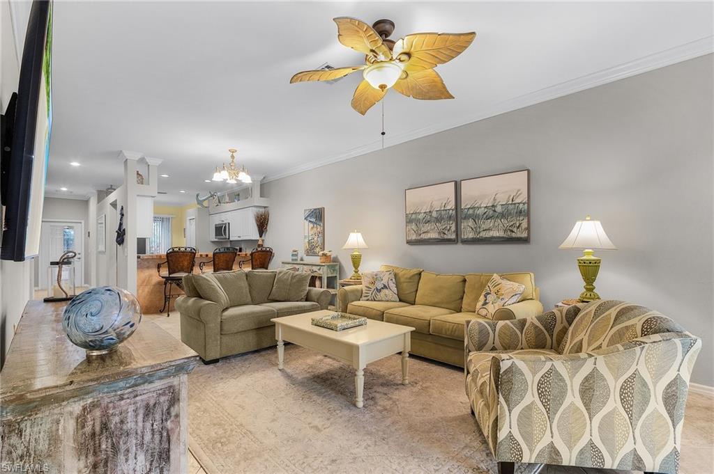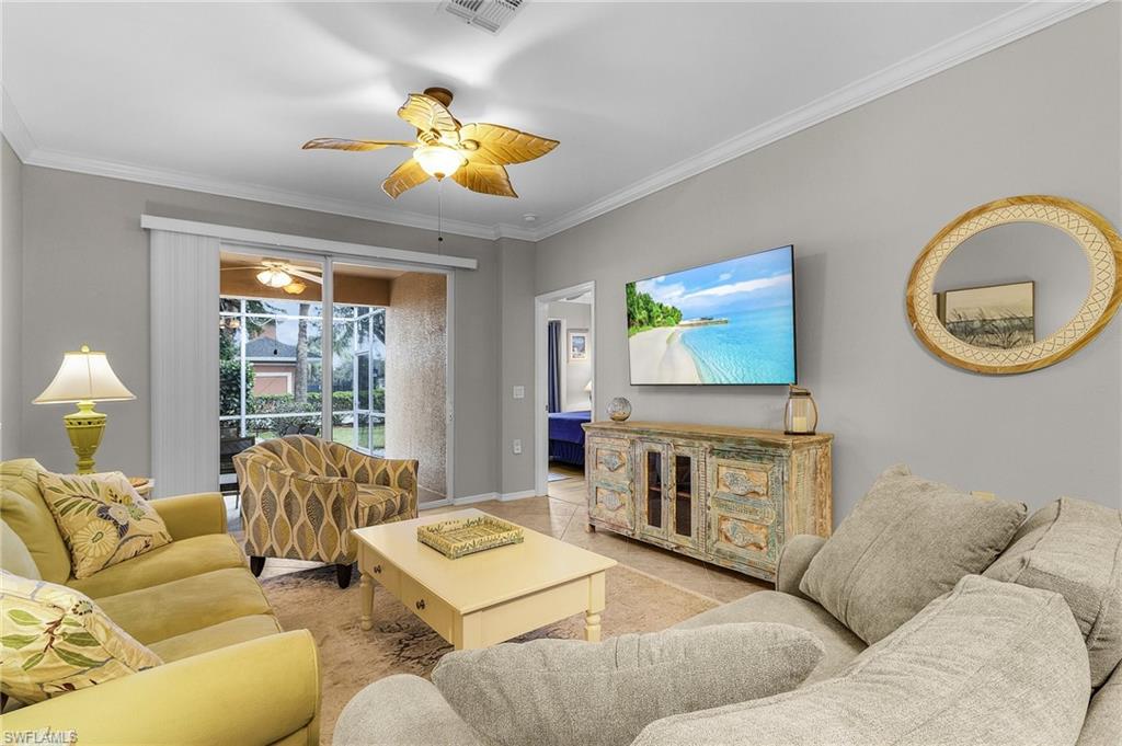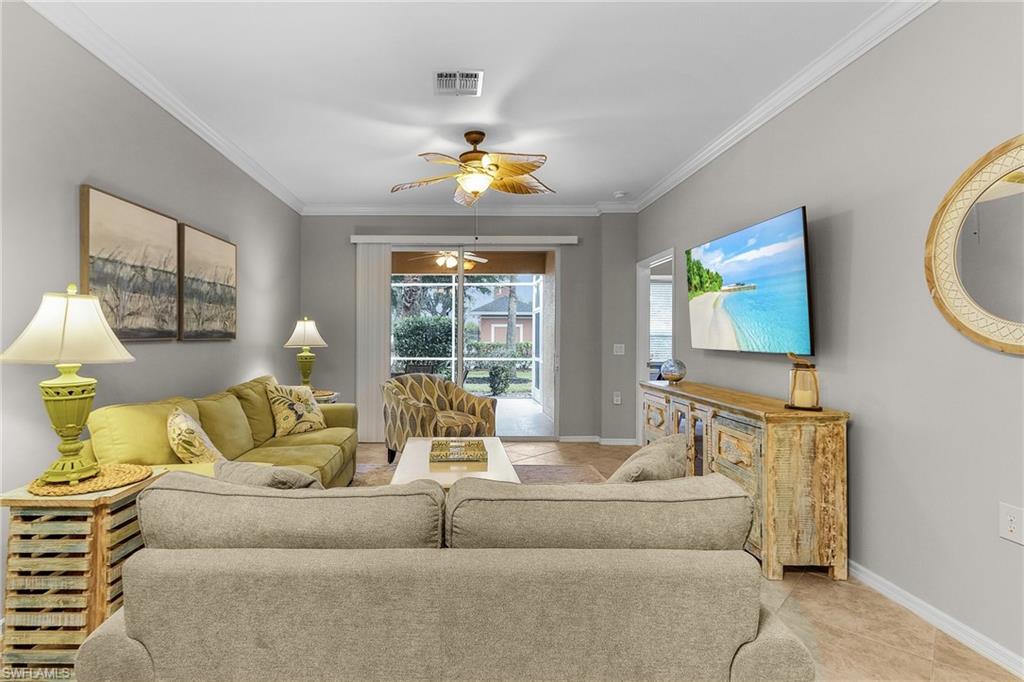 Experience resort-style living with this comfortable villa located just moments from the pool. Perfect for those who appreciate the luxury of a quick swim or peaceful poolside relaxation at any time. Lovely two bedroom plus den, two bath Villa with one car garage located in Stoneybrook. Nicely appointed with tile, LVP floors, fans and crown molding throughout. Kitchen has stainless steel appliances and decorative countertops. Laundry inside residence with newer washer/dryer. Screen lanai in both front and back of villa to enjoy the Florida Sunshine. Close to the Villa pool and surrounded by lush tropical landscaping. Community clubhouse features fitness room, resort style pool/spa, tennis, pickle ball, bocce ball, basketball, baseball, and tot lot. Stoneybrook is located on a public golf course availabe to all who love the sport! Located in the heart of Estero close to shopping, restaurants, FGCU, Miromar Outlets and RSW Airport. Come live the Florida Lifestyle!
