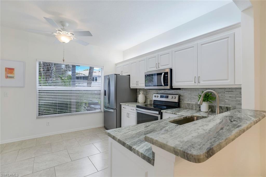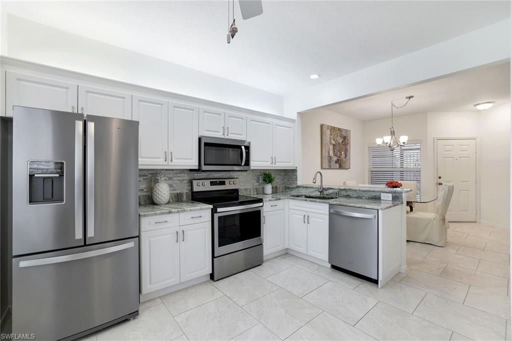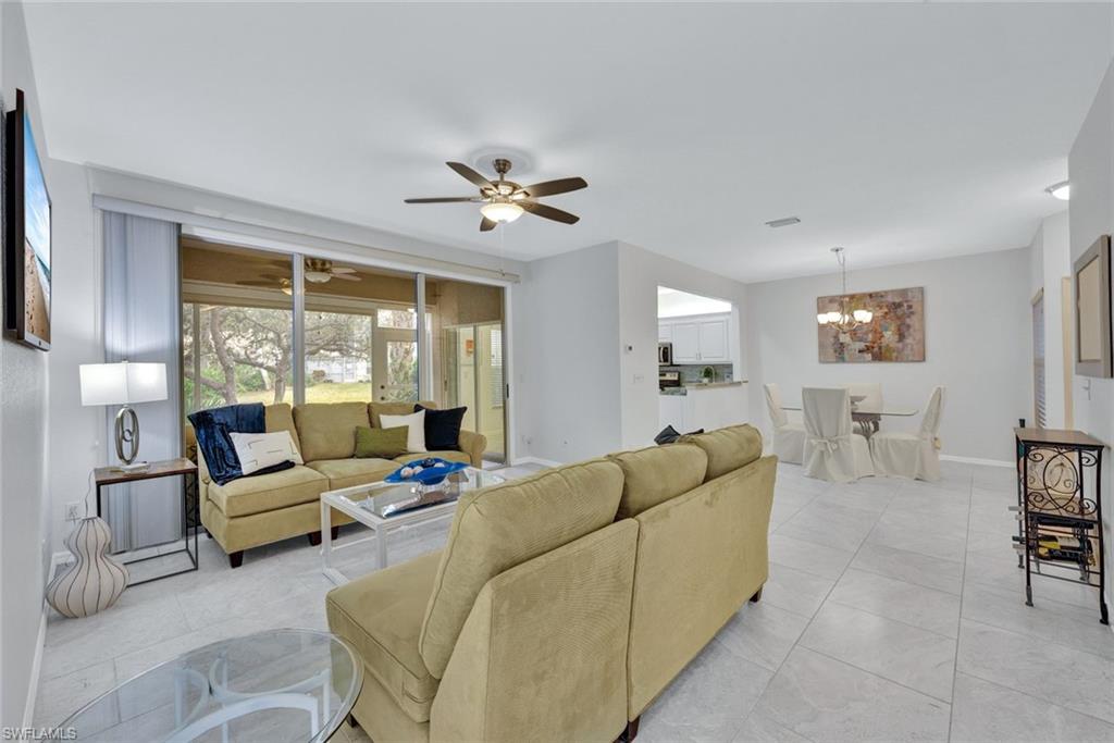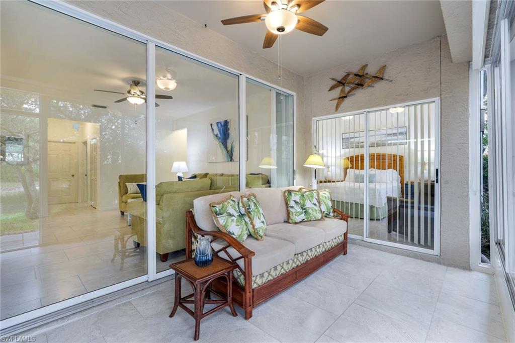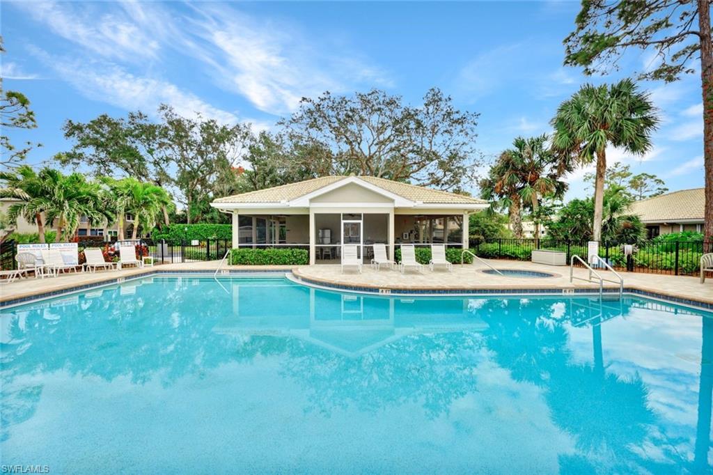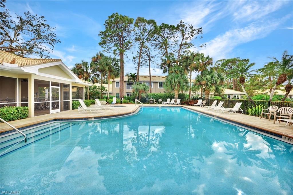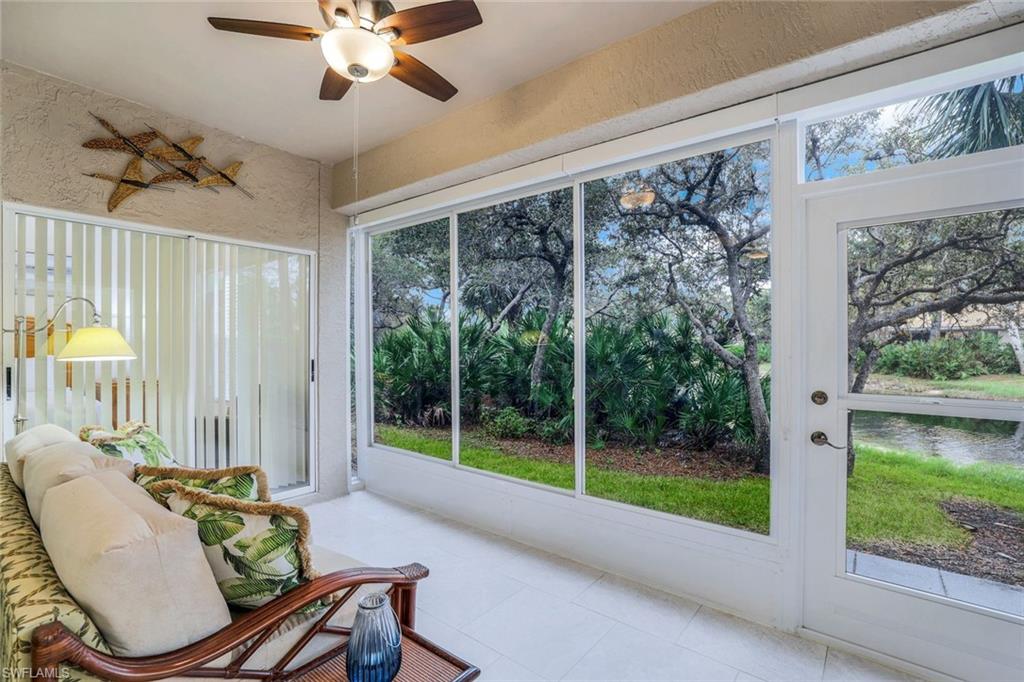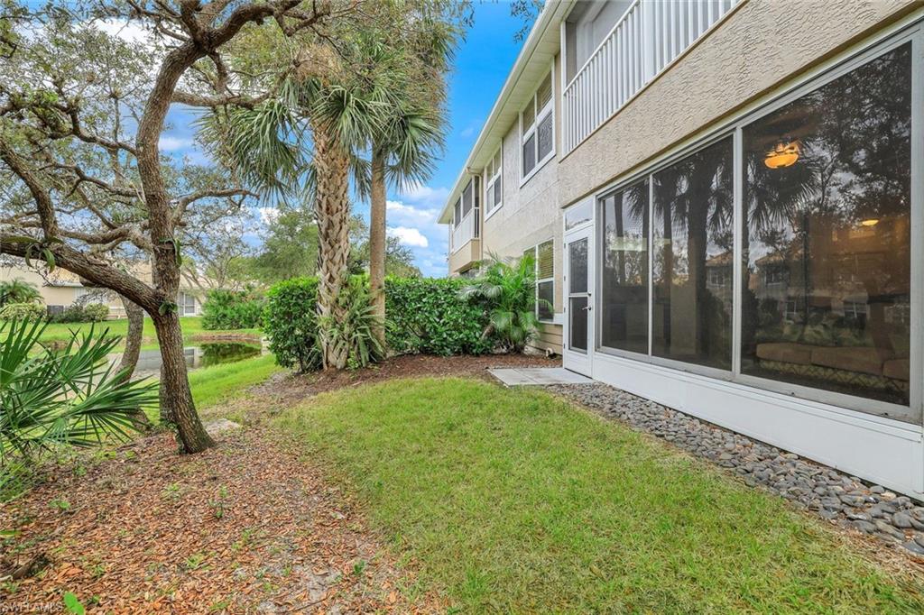 Situated in a charming enclave with an undeniably convenient location. This is a rarely occupied, updated, turnkey furnished, two-bedroom, two-bath, first-floor coach home with NO FLOODING during Ian, Helene, or Milton. The lanai has a private lake view, retractable windows, and a storm door that allows you to enjoy it even in inclement weather. It also has an attached garage, newer mechanicals, and appliances. The Gulf of Mexico beaches are within minutes, as well as the Mercato, where you'll find dining, shopping, and entertainment. Places of worship, medical facilities, and more are also only minutes away. Enjoy the community's two pools/spas, tennis/pickleball courts, and a very active social agenda in season.