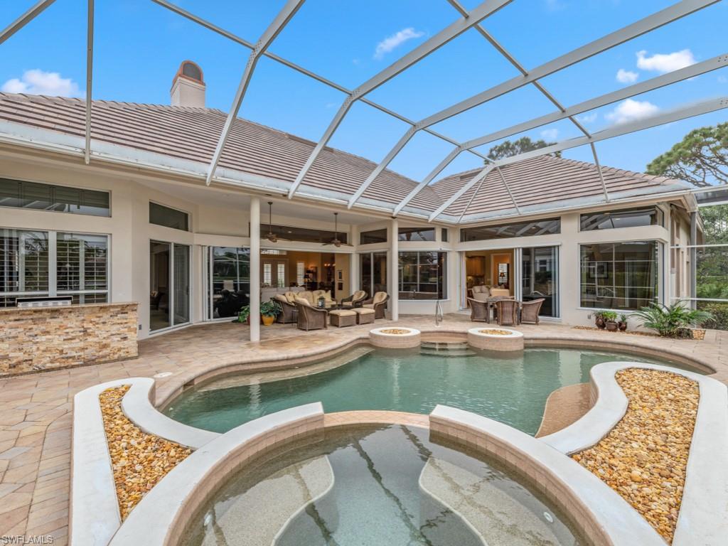 Welcome to your dream home in the prestigious Creekside community of Bonita Bay. This exquisite single-family residence boasts 4 spacious bedrooms plus a den, 3.5 bathrooms, and a generous 3-car garage, all within 3,600+ square feet of air-conditioned living space. Experience breathtaking picturesque views of the serene lake and the 8th hole of the Creekside golf course, perfectly framing the backdrop of everyday life. The open and airy floor plan exudes timeless elegance, ideal for both entertaining and comfortable family living. Step outside to your private oasis on the lanai, where a beautiful pool and spa await, complemented by an outdoor kitchen that encapsulates the ultimate Florida lifestyle. Notable features of this luxurious home include partial hurricane protection and a brand-new roof installed in 2024. The kitchen features top-of-the-line JennAir and Bosch appliances, an electric cooktop, a spacious island, and a double wall oven—perfect for culinary enthusiasts. The primary bedroom offers a tranquil retreat with a sitting area, his and her closets, and direct access to the lanai, creating a seamless indoor-outdoor living experience. Creekside is ideally located near the north gate and amenities center. Bonita Bay is a master-planned community that spans 2,400 acres of lush landscaping and winding pathways. Residents enjoy access to a private beach park, Backwater Jack's Restaurant, and several community parks, including Riverwalk Park, which features kayak and canoe launch facilities along with community pickleball and tennis courts. For those seeking an elevated lifestyle, the option to join the Country Club is available, offering five pristine golf courses, a sports and racquet center with a resort-style pool, a state-of-the-art fitness facility, and a luxury spa and salon. Don’t miss this incredible opportunity to make this stunning property your own and embrace the exceptional lifestyle that Bonita Bay has to offer!