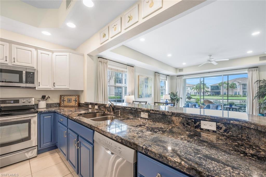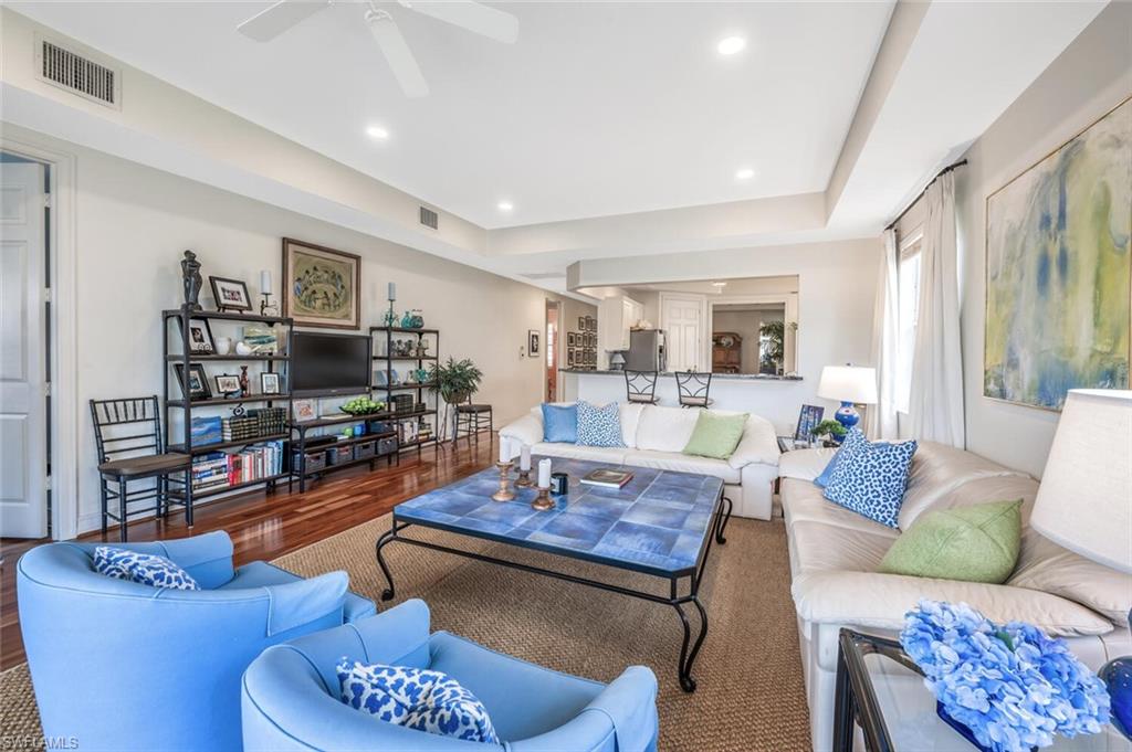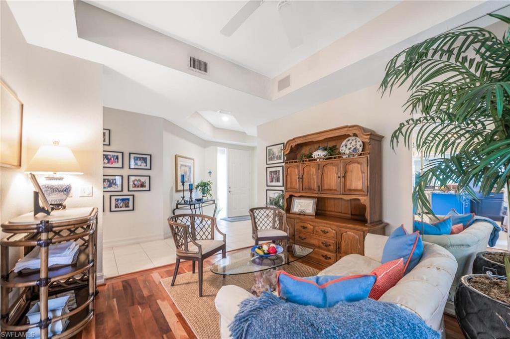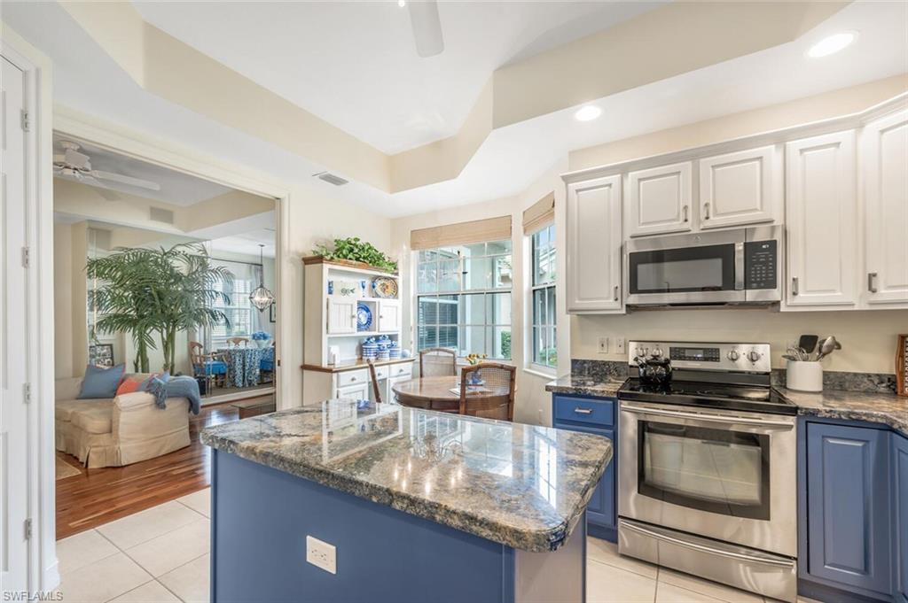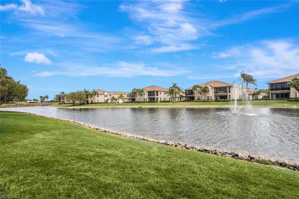 Welcome to this beautifully updated first-floor coach home in sought-after Wellington Place II in the Kensington Community. A rare opportunity to own two incredible units. With the second-floor unit directly above also available for purchase, this unique arrangement provides the perfect opportunity for multi-generational living or rental investment. This spacious residence features a 2-car garage , A multi purpose bonus room, an expansive open-concept design, offering two generously sized bedrooms, a den, a family room, and a separate living room, ensuring ample space for both relaxation and gatherings. The updated, chic kitchen is a standout, complete with an island, breakfast bar, oversized pantry, and a cozy dining nook. The screened lanai offers a peaceful retreat, with sweeping views of a tranquil lake and serene water features, creating the perfect backdrop for relaxation. With its eastern exposure, the lanai is perfectly positioned for picturesque sunrises for those earlier risers! Throughout the living areas, primary bedroom, and den, you'll find stunning American cherry hardwood flooring, adding warmth to the home's design. Resort-style amenities enhance the living experience, including a community pool, spa, exercise room, and clubhouse. The Kensington community is centrally located, offering easy access to all the conveniences you need. The vibrant Mercato is minutes away, with its upscale shopping, dining, and entertainment options. The location also places you close to the stunning Gulf beaches, allowing you to enjoy the best of coastal living.