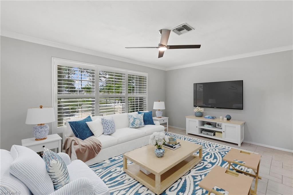 *Back on the Market* Prime Location* Low HOA Fees* Family/Pet Friendly* Just minutes to 5th Ave and Naples white sandy beaches* Lakewood is one of the most sought after Communities in Naples. Residents benefit from low quarterly fees that include fiber-optic internet, cable, and lawn irrigation. This home sits on a spacious corner lot with ample room for a pool. Recent upgrades include a brand-new roof (2025), new hurricane-rated garage doors, and full home re-piping. The oversized garage and extended driveway offer plenty of parking. Both bathrooms feature contemporary-finishes, including sleek tile and glass-enclosed showers. Energy-efficient double-pane windows, updated ductwork (2022), a tankless hot water heater, and newer air handler ensure year-round comfort and savings. The upgraded Kitchen boasts granite countertops, stainless steel appliances, and soft-close cabinetry with pull-out shelving. Plantation shutters, crown molding, and modern lighting throughout, this move-in-ready home blends timeless style with everyday practicality.