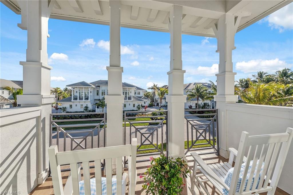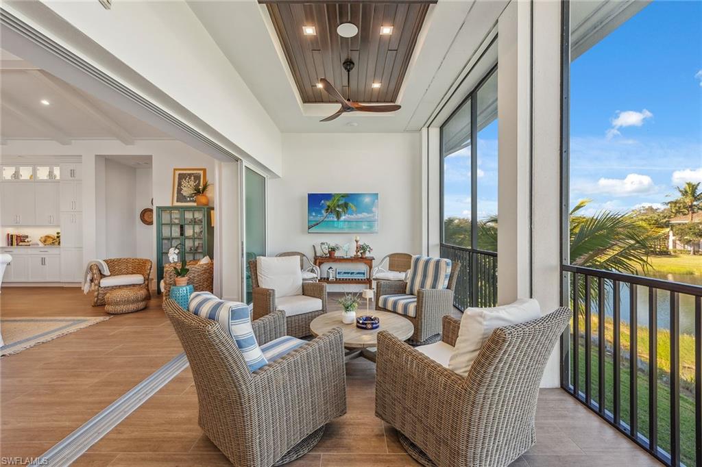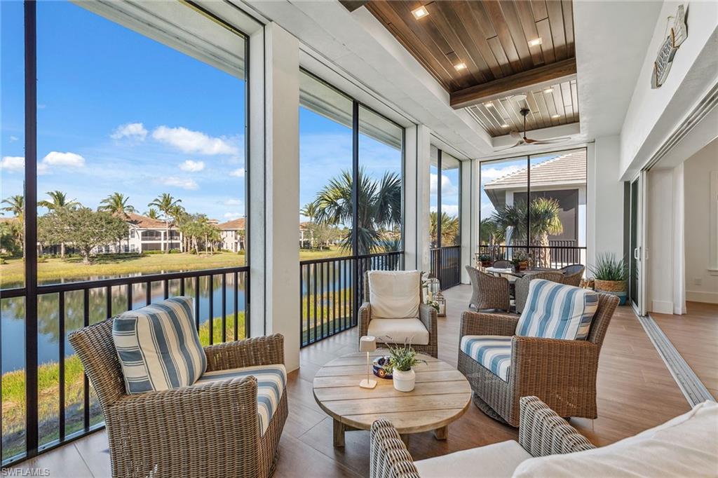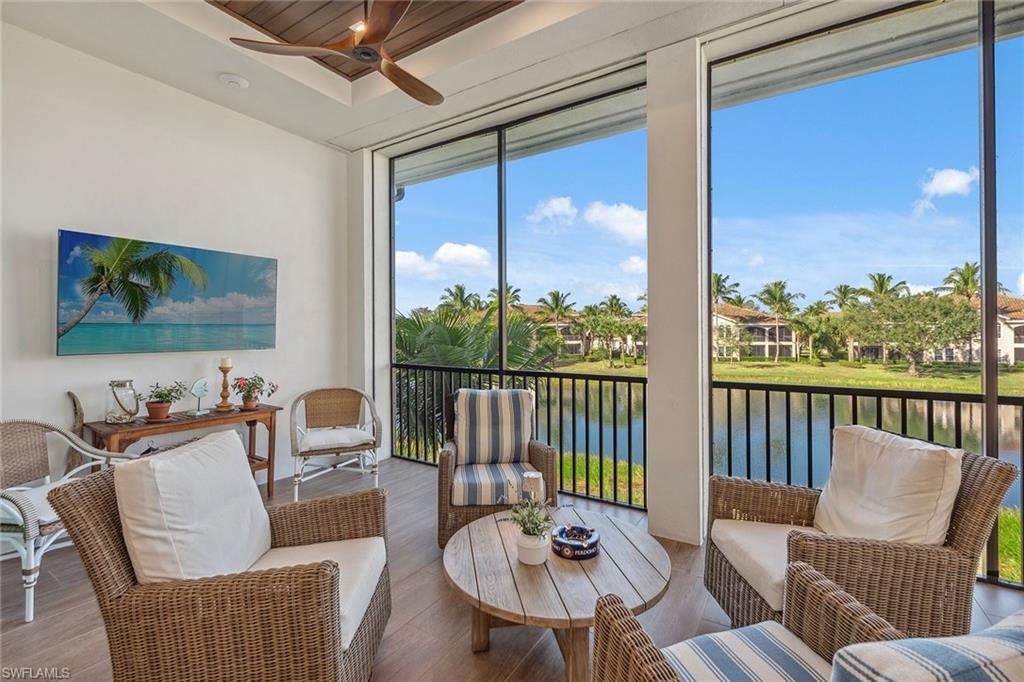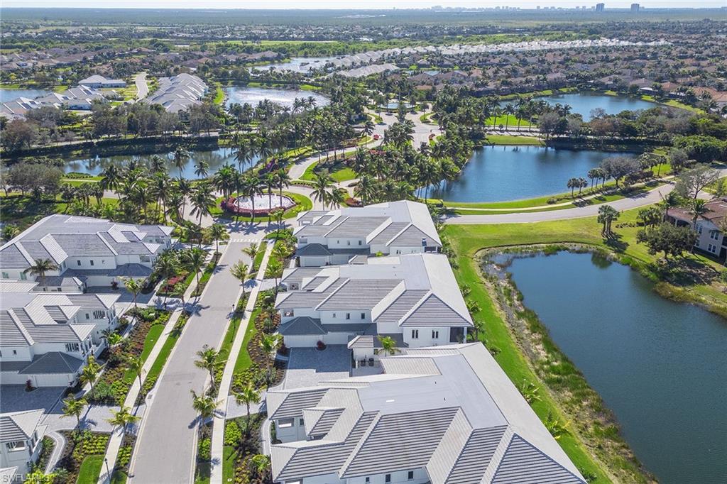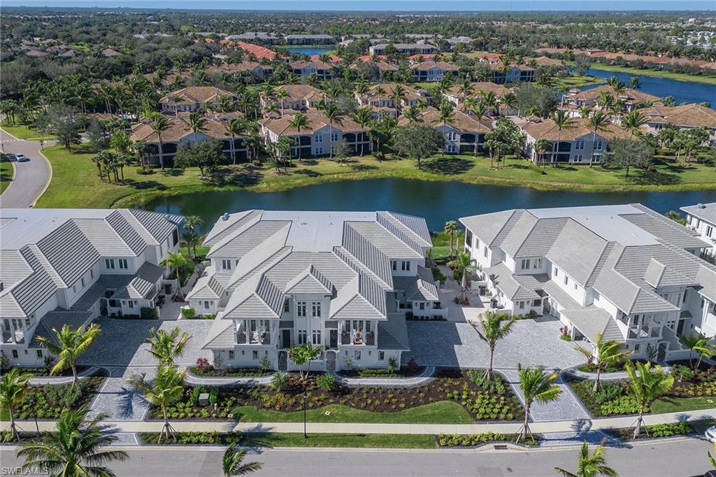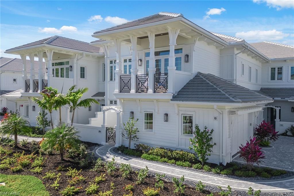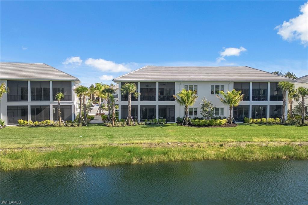 Welcome to this stunning, better than new, completed in 2024, three-bedroom, 3.5-bath plus study residence in the desirable Dorado village in Fiddler’s Creek. With southwest exposure and beautiful lake views, this coach home, quality-built by Gulf Bay, offers a luxurious lifestyle with high-end finishes throughout. A welcoming courtyard entry leads you to your home, and a private elevator adds convenience. The home is equipped with five Sonos amplifiers and five pairs of speakers in the great room, lanai and all three bedrooms, offering seamless audio throughout the property. The kitchen is complete with quartz counters, white subway tile backsplash and a large island. Top-of-the-line Bosch stainless appliances, including a French door refrigerator, five-burner natural gas cooktop, double-wall oven, microwave and dishwasher, are complemented by a Grohe kitchen faucet with pullout sprayer. White premium cabinets, some with glass fronts and in-cabinet lighting, provide ample storage. A sleek U-Line wine refrigerator creates a space that is ideal for entertaining. The spacious and open living room/great room is a wow with vaulted ceilings with shiplap inserts, coffered ceiling accents and impact glass sliders that open to the balcony with beautiful lake views. The room is finished with porcelain wood plank-style tile, two ceiling fans and recessed LED lighting. The primary suite offers a peaceful retreat with wood-look plank tile and vaulted ceilings. The luxurious primary bath features a walk-in frameless shower, a quartz vanity with two Kohler undermount sinks, Grohe faucets, and porcelain marble-look tile flooring and a spacious walk-in closet with custom cabinetry. The front guest bedroom features a private balcony, French doors and a tray ceiling. Wood-look plank tile flooring and shiplap ceiling inserts add warmth and charm to the space, including a walk-in closet, while the en-suite bath boasts a quartz vanity, Kohler undermount sink, Toto two-piece toilet and a frameless walk-in shower with tile from floor to ceiling. The second guest bedroom mirrors the first with wood-look plank tile, tray ceiling, as well as a walk-in closet. The adjoining bath includes a quartz vanity, Kohler undermount sink, Toto toilet, and a bathtub/shower combo with frameless enclosure and floor-to-ceiling tile. A charming den area offers a cozy spot with a tray ceiling and square recessed LED lighting, ideal for a home office or reading nook. The convenient powder room features a quartz vanity, Toto toilet and framed mirror. The electric storm shutters, hidden and recessed, ensure protection while preserving the home’s sleek look. Additional features include a laundry room with quartz counters, a front-load washer and dryer, and white cabinets. Enjoy the upgraded epoxy floor in the two-car garage, and the largest driveway in Dorado, providing parking for up to six cars. Enjoy exceptional community amenities in sought-after Fiddler’s Creek!