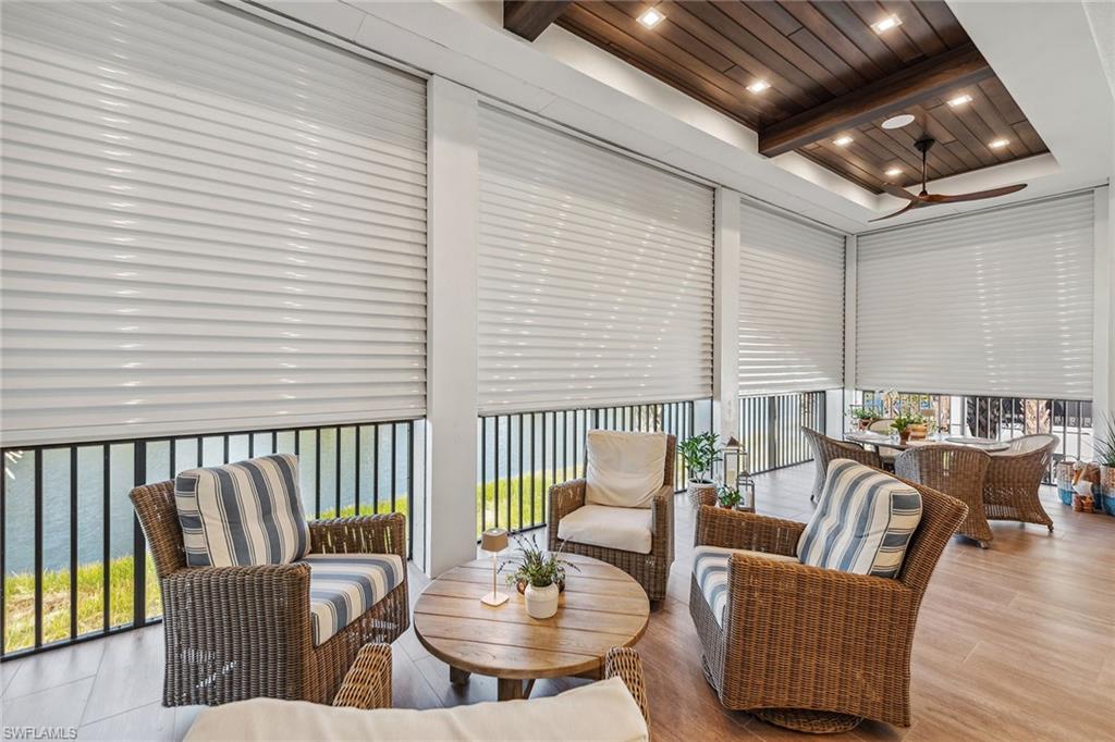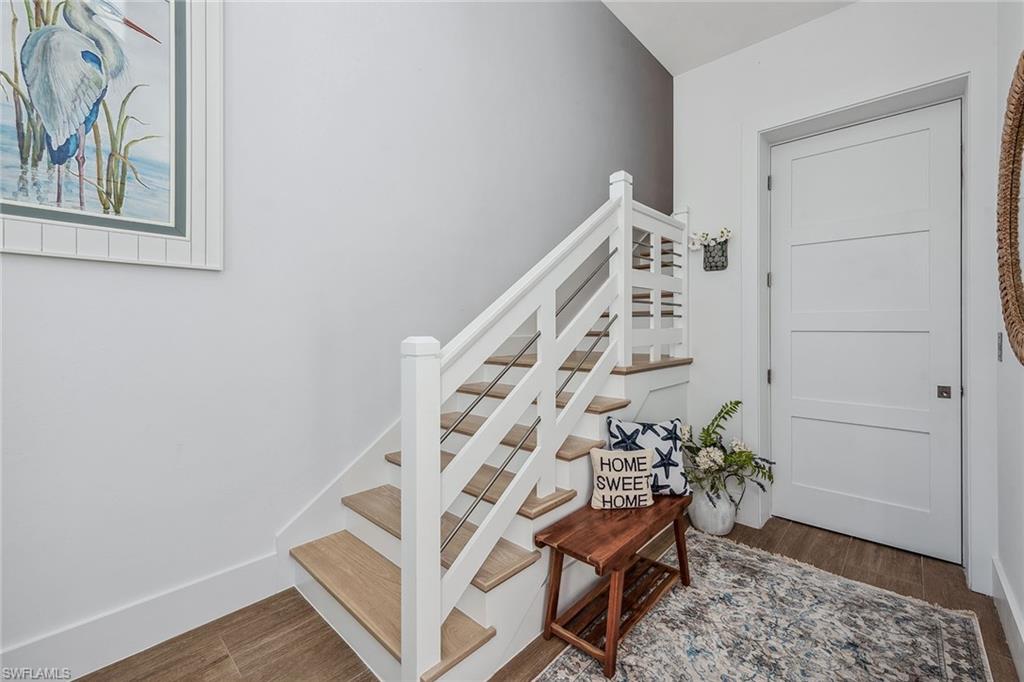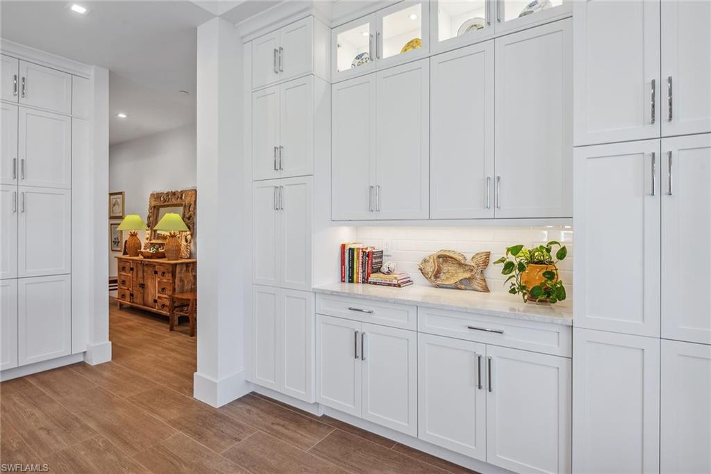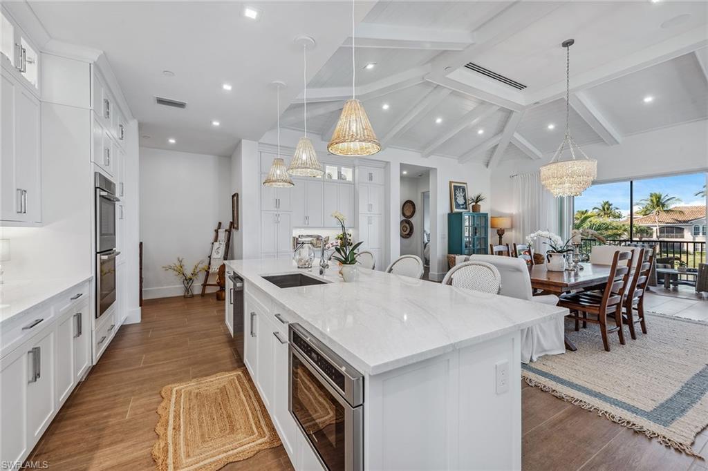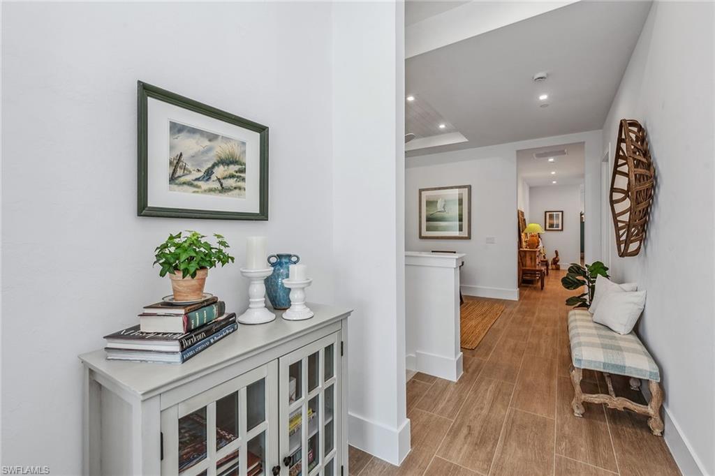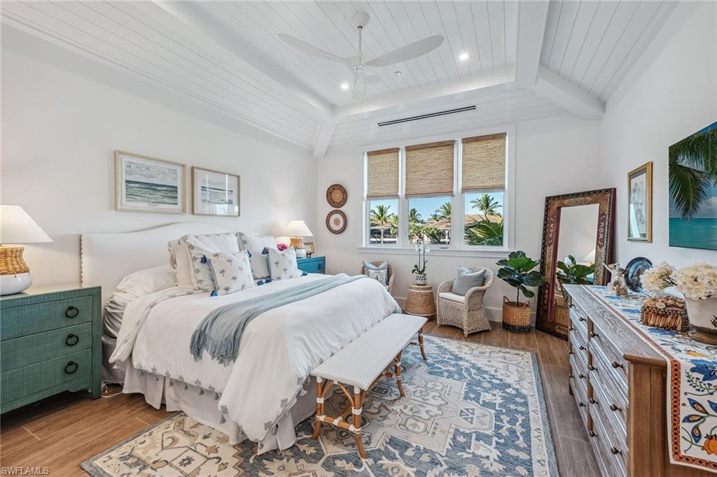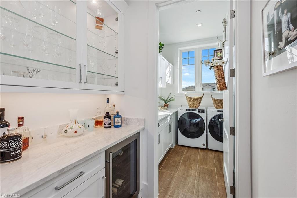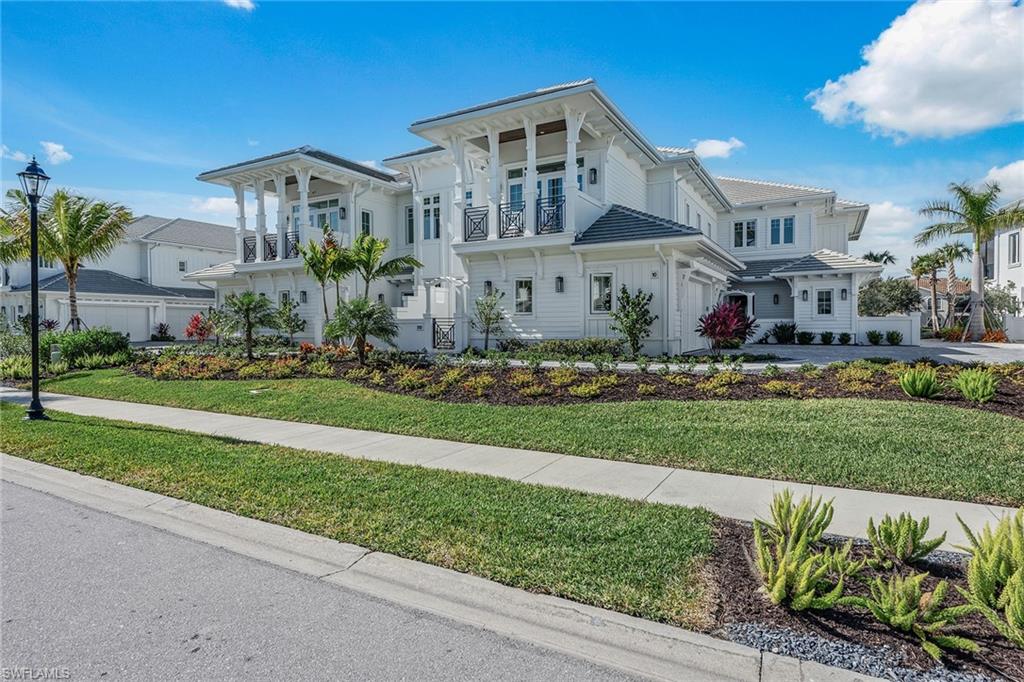Welcome to this stunning, better than new, completed in 2024, three-bedroom, 3.5-bath plus study residence in the desirable Dorado village in Fiddler’s Creek. With southwest exposure and beautiful lake views, this coach home, quality-built by Gulf Bay, offers a luxurious lifestyle with high-end finishes throughout. A welcoming courtyard entry leads you to your home, and a private elevator adds convenience. The home is equipped with five Sonos amplifiers and five pairs of speakers in the great room, lanai and all three bedrooms, offering seamless audio throughout the property. The kitchen is complete with quartz counters, white subway tile backsplash and a large island. Top-of-the-line Bosch stainless appliances, including a French door refrigerator, five-burner natural gas cooktop, double-wall oven, microwave and dishwasher, are complemented by a Grohe kitchen faucet with pullout sprayer. White premium cabinets, some with glass fronts and in-cabinet lighting, provide ample storage. A sleek U-Line wine refrigerator creates a space that is ideal for entertaining. The spacious and open living room/great room is a wow with vaulted ceilings with shiplap inserts, coffered ceiling accents and impact glass sliders that open to the balcony with beautiful lake views. The room is finished with porcelain wood plank-style tile, two ceiling fans and recessed LED lighting. The primary suite offers a peaceful retreat with wood-look plank tile and vaulted ceilings. The luxurious primary bath features a walk-in frameless shower, a quartz vanity with two Kohler undermount sinks, Grohe faucets, and porcelain marble-look tile flooring and a spacious walk-in closet with custom cabinetry. The front guest bedroom features a private balcony, French doors and a tray ceiling. Wood-look plank tile flooring and shiplap ceiling inserts add warmth and charm to the space, including a walk-in closet, while the en-suite bath boasts a quartz vanity, Kohler undermount sink, Toto two-piece toilet and a frameless walk-in shower with tile from floor to ceiling. The second guest bedroom mirrors the first with wood-look plank tile, tray ceiling, as well as a walk-in closet. The adjoining bath includes a quartz vanity, Kohler undermount sink, Toto toilet, and a bathtub/shower combo with frameless enclosure and floor-to-ceiling tile. A charming den area offers a cozy spot with a tray ceiling and square recessed LED lighting, ideal for a home office or reading nook. The convenient powder room features a quartz vanity, Toto toilet and framed mirror. The electric storm shutters, hidden and recessed, ensure protection while preserving the home’s sleek look. Additional features include a laundry room with quartz counters, a front-load washer and dryer, and white cabinets. Enjoy the upgraded epoxy floor in the two-car garage, and the largest driveway in Dorado, providing parking for up to six cars. Enjoy exceptional community amenities in sought-after Fiddler’s Creek!