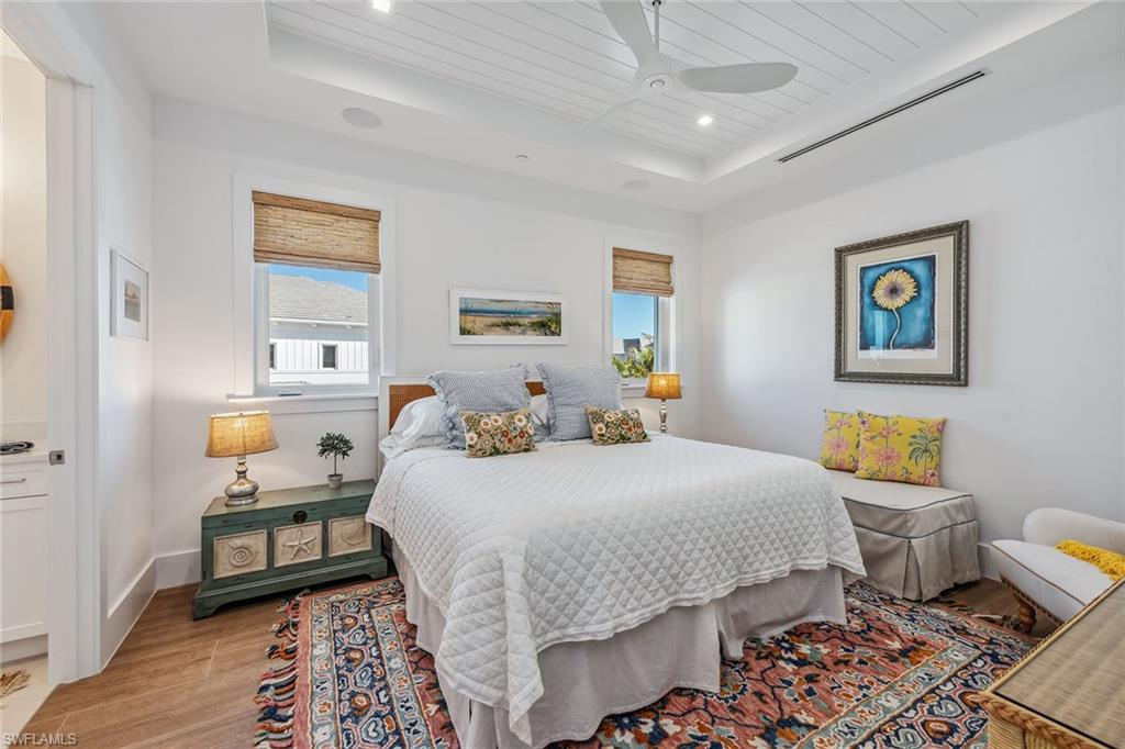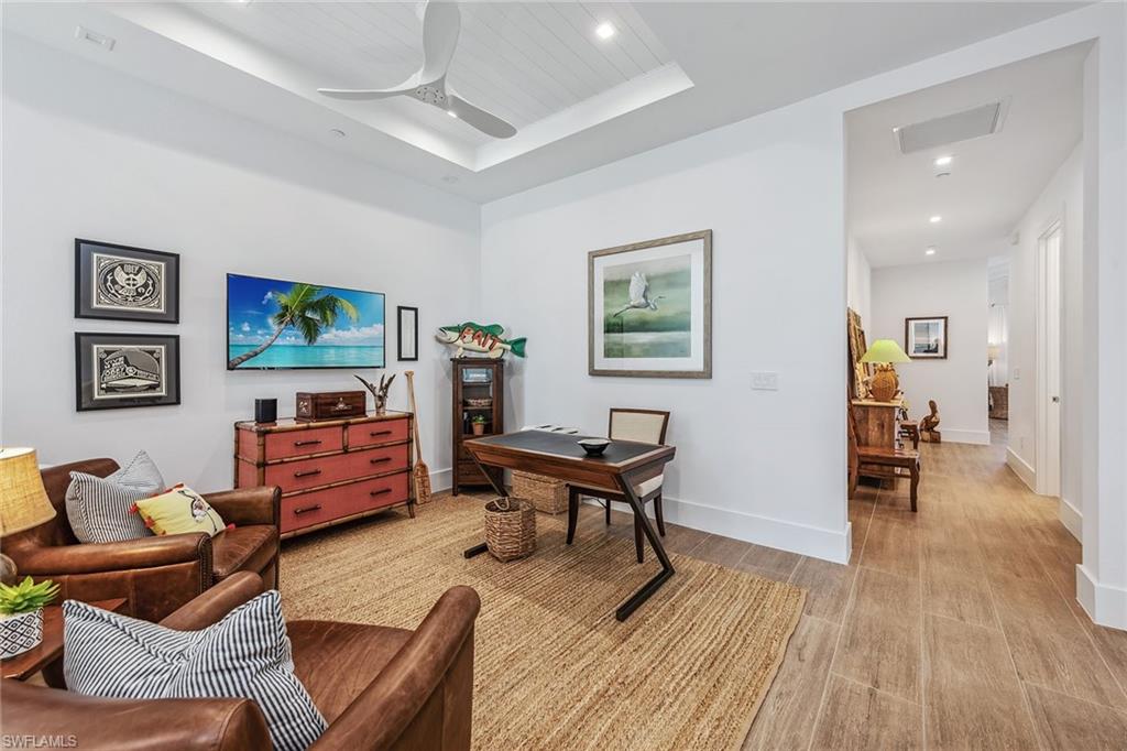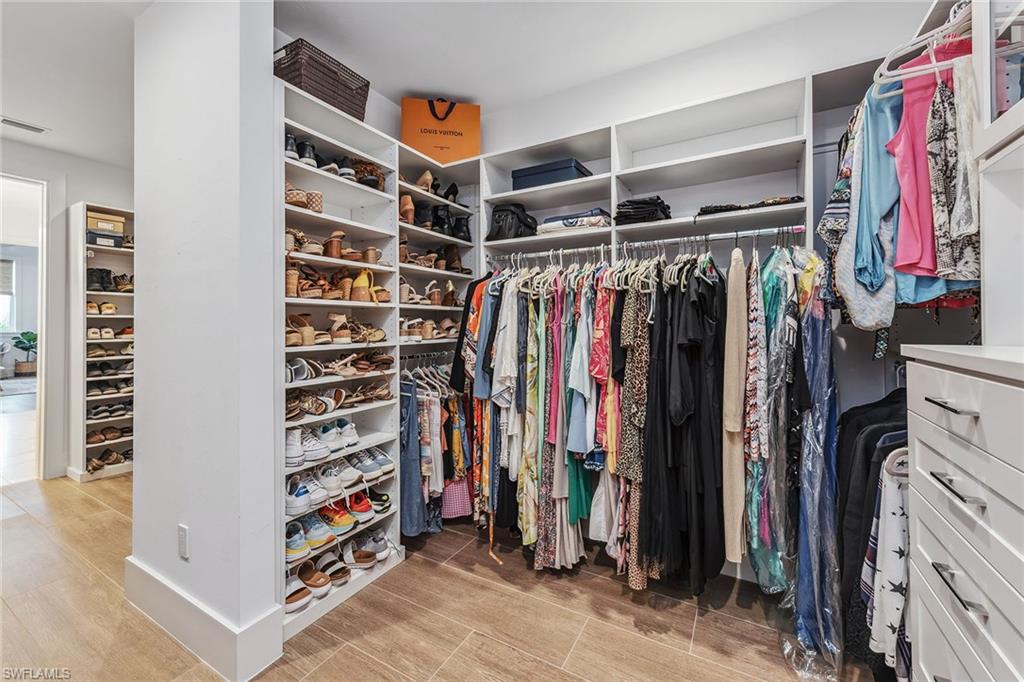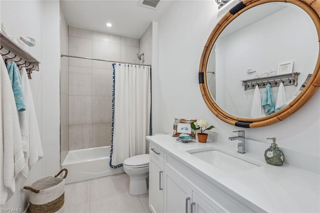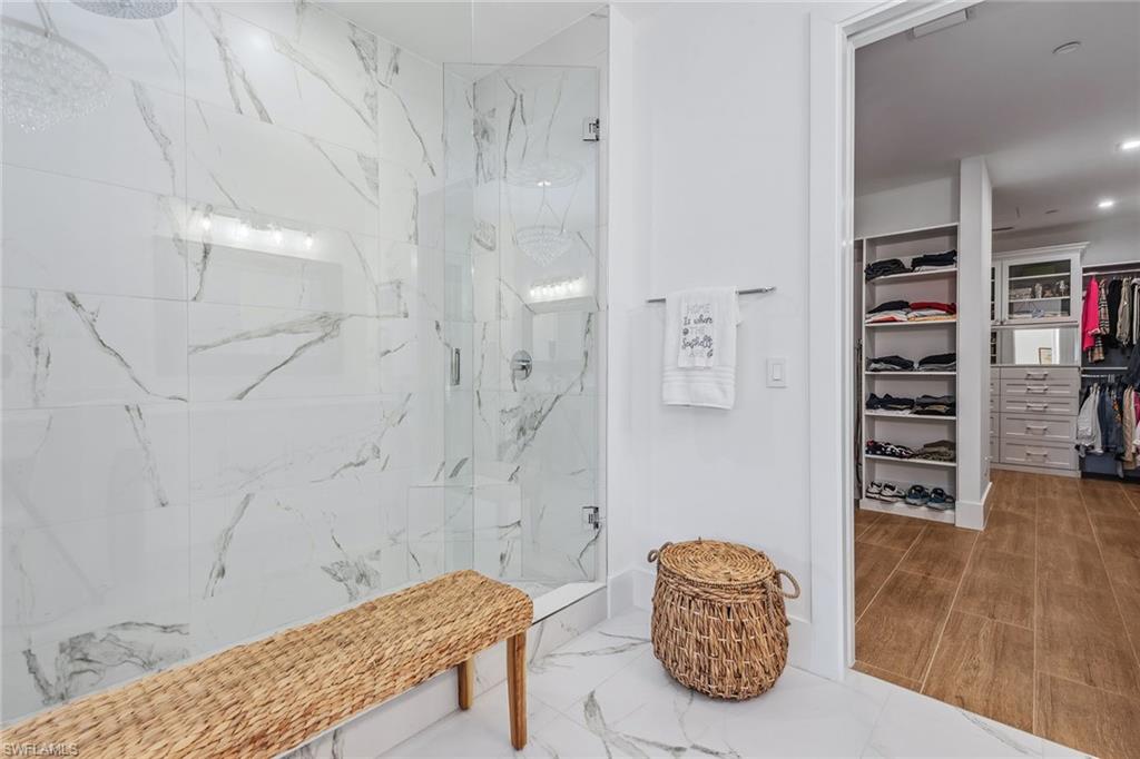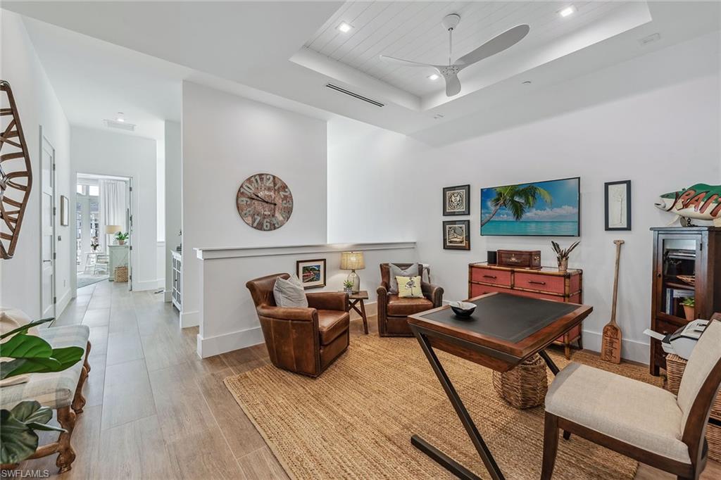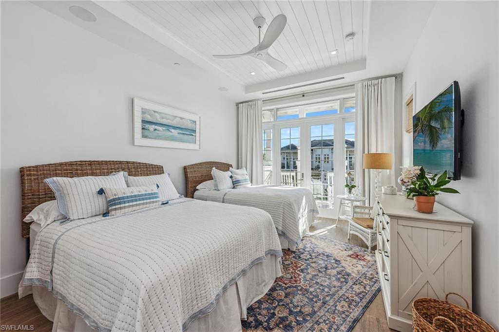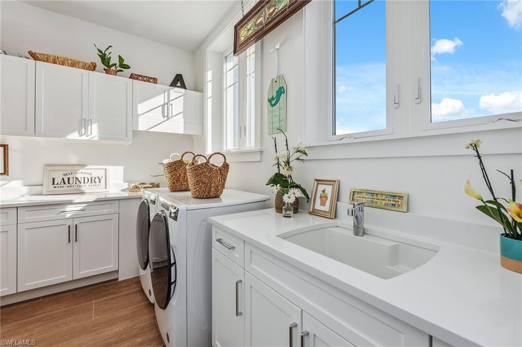 Welcome to this stunning, better than new, completed in 2024, three-bedroom, 3.5-bath plus study residence in the desirable Dorado village in Fiddler’s Creek. With southwest exposure and beautiful lake views, this coach home, quality-built by Gulf Bay, offers a luxurious lifestyle with high-end finishes throughout. A welcoming courtyard entry leads you to your home, and a private elevator adds convenience. The home is equipped with five Sonos amplifiers and five pairs of speakers in the great room, lanai and all three bedrooms, offering seamless audio throughout the property. The kitchen is complete with quartz counters, white subway tile backsplash and a large island. Top-of-the-line Bosch stainless appliances, including a French door refrigerator, five-burner natural gas cooktop, double-wall oven, microwave and dishwasher, are complemented by a Grohe kitchen faucet with pullout sprayer. White premium cabinets, some with glass fronts and in-cabinet lighting, provide ample storage. A sleek U-Line wine refrigerator creates a space that is ideal for entertaining. The spacious and open living room/great room is a wow with vaulted ceilings with shiplap inserts, coffered ceiling accents and impact glass sliders that open to the balcony with beautiful lake views. The room is finished with porcelain wood plank-style tile, two ceiling fans and recessed LED lighting. The primary suite offers a peaceful retreat with wood-look plank tile and vaulted ceilings. The luxurious primary bath features a walk-in frameless shower, a quartz vanity with two Kohler undermount sinks, Grohe faucets, and porcelain marble-look tile flooring and a spacious walk-in closet with custom cabinetry. The front guest bedroom features a private balcony, French doors and a tray ceiling. Wood-look plank tile flooring and shiplap ceiling inserts add warmth and charm to the space, including a walk-in closet, while the en-suite bath boasts a quartz vanity, Kohler undermount sink, Toto two-piece toilet and a frameless walk-in shower with tile from floor to ceiling. The second guest bedroom mirrors the first with wood-look plank tile, tray ceiling, as well as a walk-in closet. The adjoining bath includes a quartz vanity, Kohler undermount sink, Toto toilet, and a bathtub/shower combo with frameless enclosure and floor-to-ceiling tile. A charming den area offers a cozy spot with a tray ceiling and square recessed LED lighting, ideal for a home office or reading nook. The convenient powder room features a quartz vanity, Toto toilet and framed mirror. The electric storm shutters, hidden and recessed, ensure protection while preserving the home’s sleek look. Additional features include a laundry room with quartz counters, a front-load washer and dryer, and white cabinets. Enjoy the upgraded epoxy floor in the two-car garage, and the largest driveway in Dorado, providing parking for up to six cars. Enjoy exceptional community amenities in sought-after Fiddler’s Creek!
