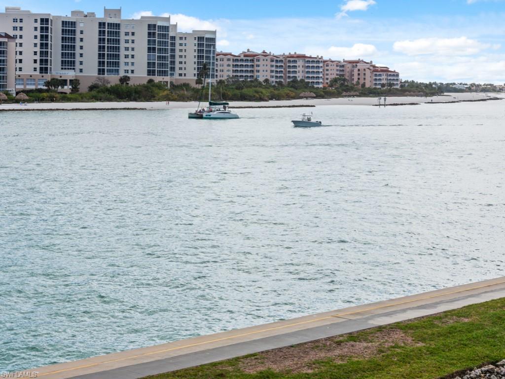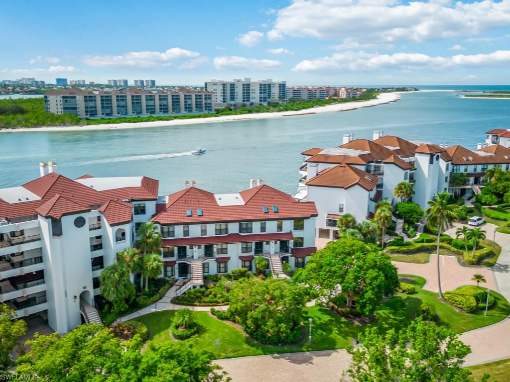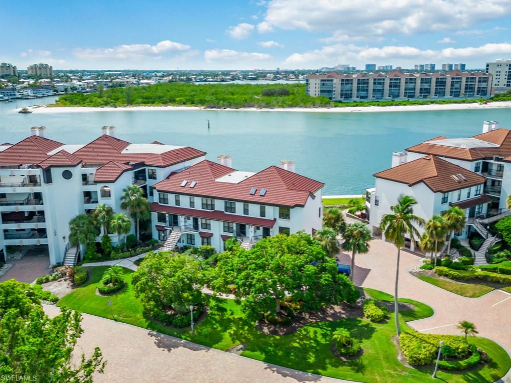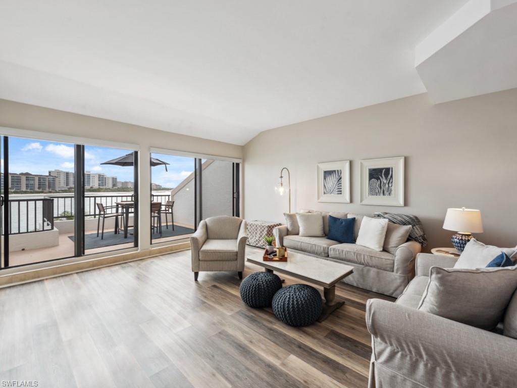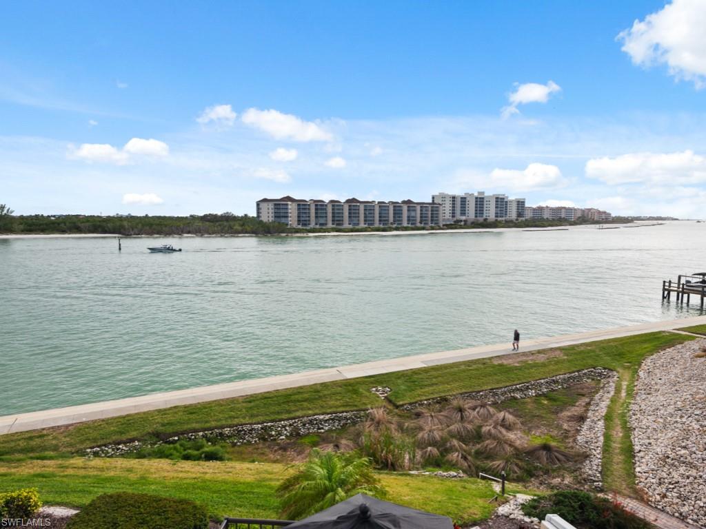 Phenomenal views of the Marco River and Gulf abound from this stunning, remodeled townhome residence. This 2 bedroom, 2 and a half bath home boasts a stunning, updated interior with thoughtful details throughout including plantation shutters and Hunter Douglas shades. The gorgeous kitchen has been opened to the living space to enhance the open floor plan and is complete with marble counters, beautiful white cabinetry, and stainless-steel appliances. The living area offers gorgeous views and opens onto the spacious terrace – the ideal place to relax and watch the dolphins and manatees play while enjoying the Florida sunshine and fresh salt air. The master suite is a private oasis overlooking the Marco River. The ensuite bath features dual sinks, walk-in shower, and jetted tub offering exceptional views of the water. Guests will enjoy the private guest bedroom with ensuite bath and custom nook with bunk beds. La Peninsula is a private, gated community located on charming Isles of Capri, ideally located near both Marco Island and downtown Naples. La Peninsula offers gorgeous tropical landscaping, club house, large pool, waterfront walking path, and more.