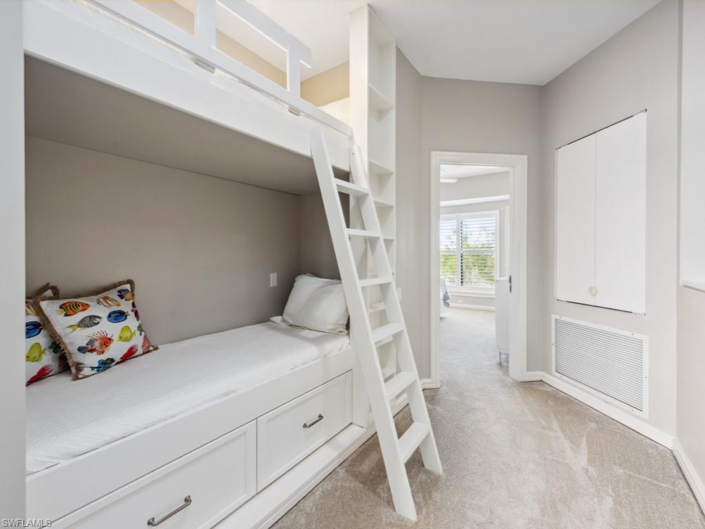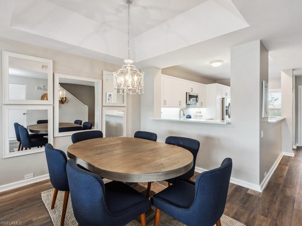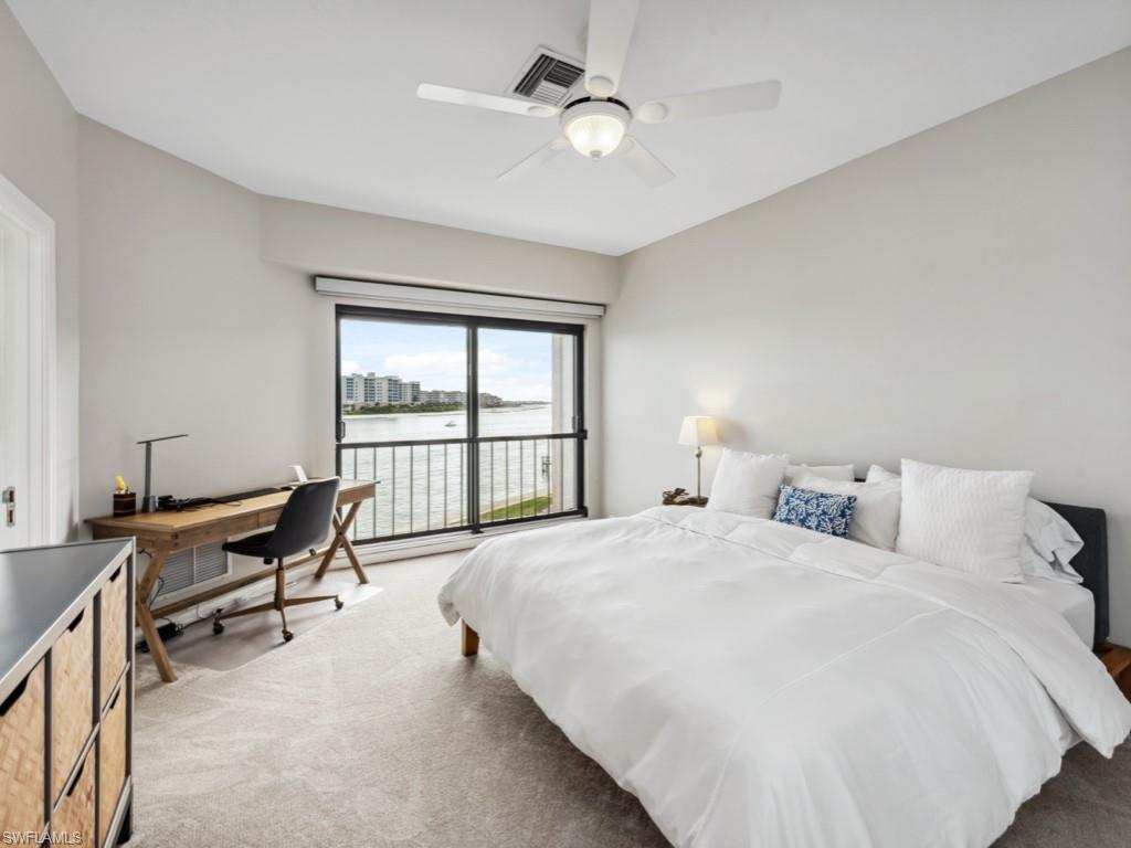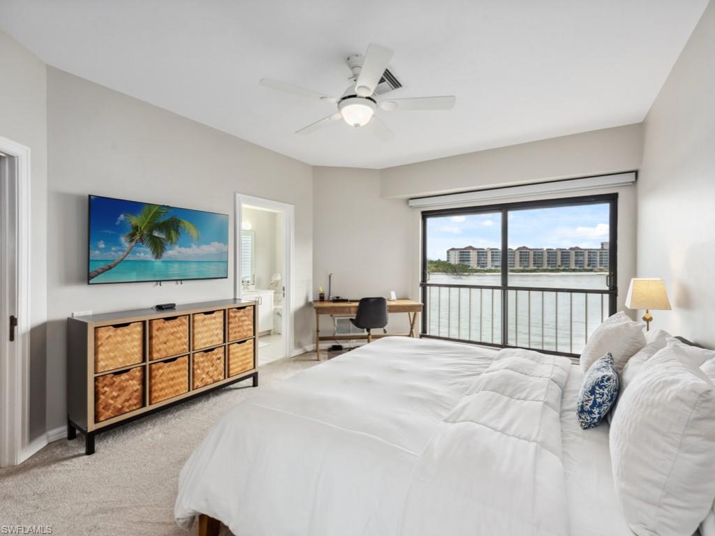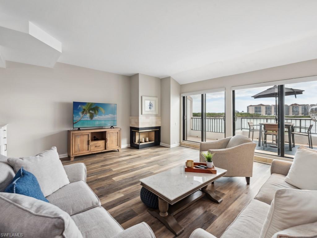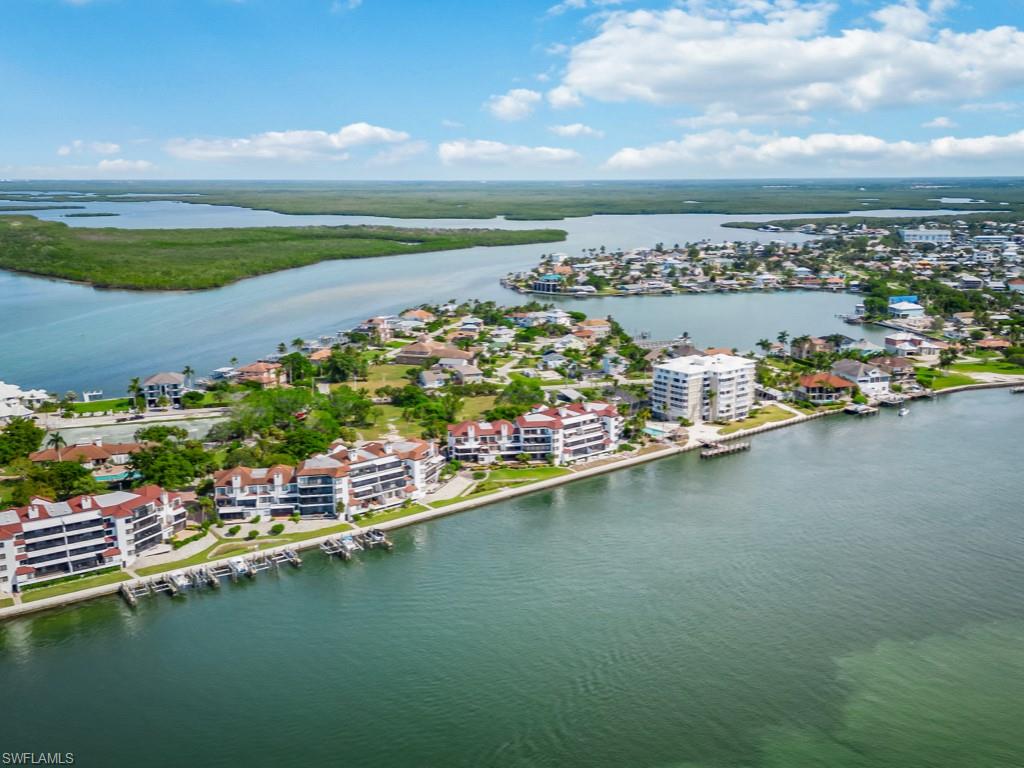 Phenomenal views of the Marco River and Gulf abound from this stunning, remodeled townhome residence. This 2 bedroom, 2 and a half bath home boasts a stunning, updated interior with thoughtful details throughout including plantation shutters and Hunter Douglas shades. The gorgeous kitchen has been opened to the living space to enhance the open floor plan and is complete with marble counters, beautiful white cabinetry, and stainless-steel appliances. The living area offers gorgeous views and opens onto the spacious terrace – the ideal place to relax and watch the dolphins and manatees play while enjoying the Florida sunshine and fresh salt air. The master suite is a private oasis overlooking the Marco River. The ensuite bath features dual sinks, walk-in shower, and jetted tub offering exceptional views of the water. Guests will enjoy the private guest bedroom with ensuite bath and custom nook with bunk beds. La Peninsula is a private, gated community located on charming Isles of Capri, ideally located near both Marco Island and downtown Naples. La Peninsula offers gorgeous tropical landscaping, club house, large pool, waterfront walking path, and more.