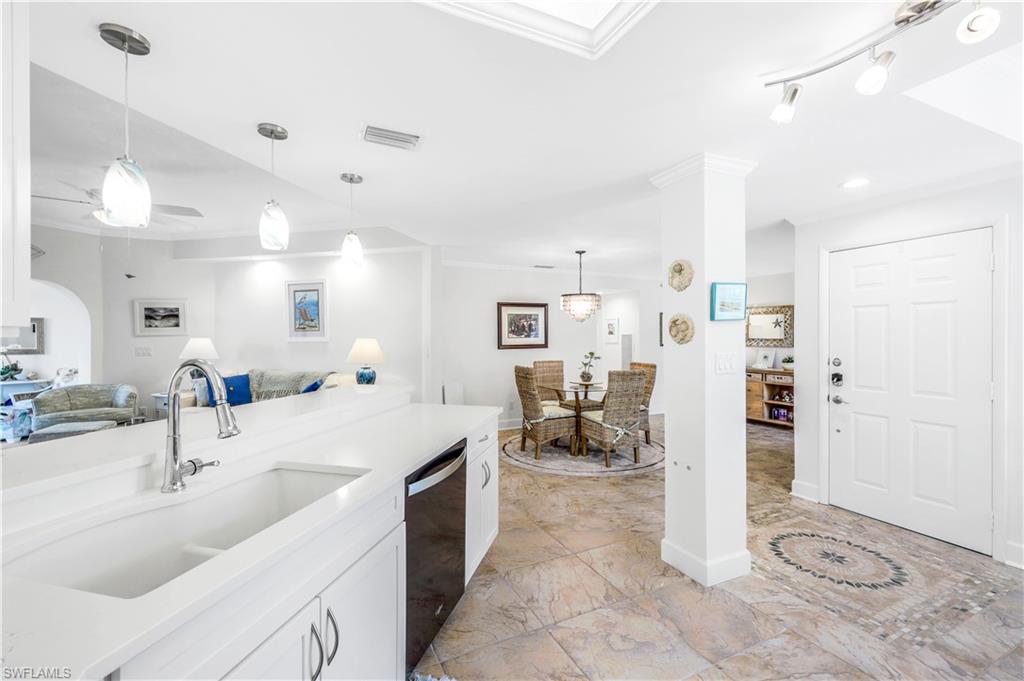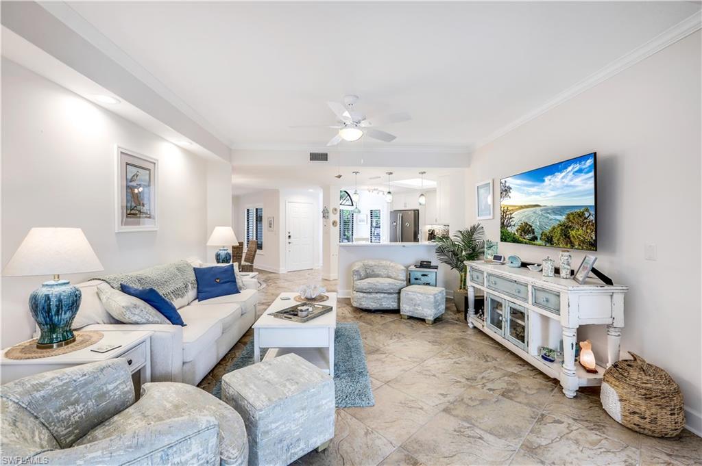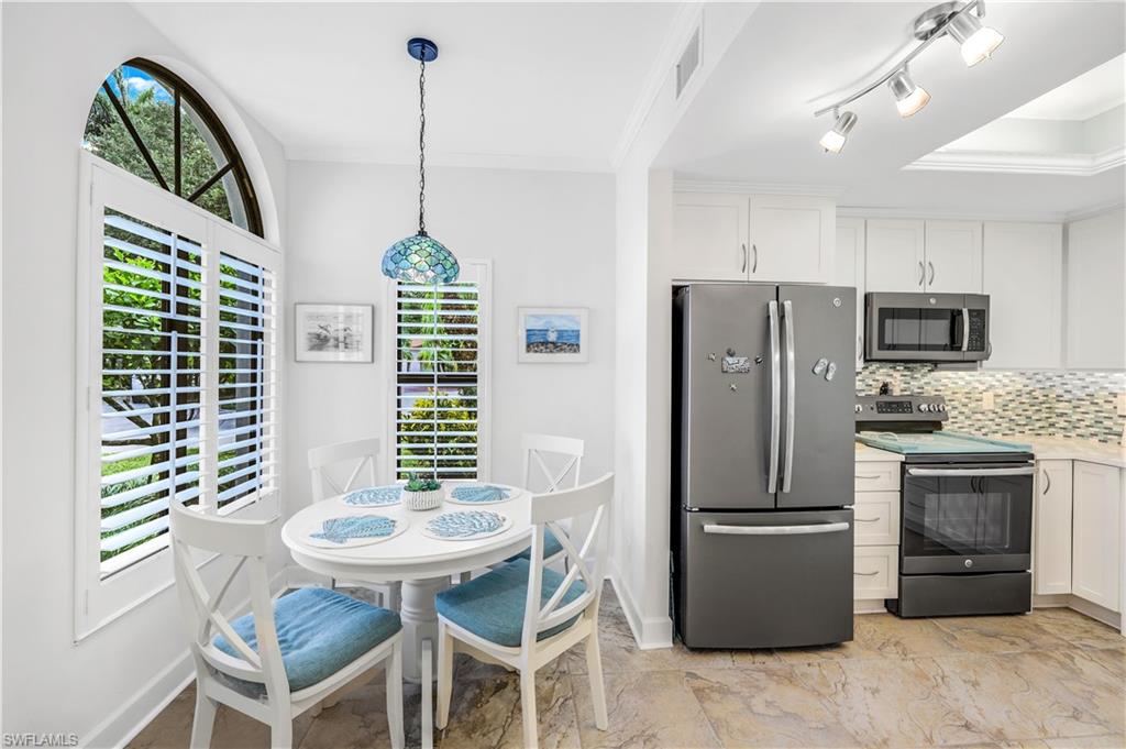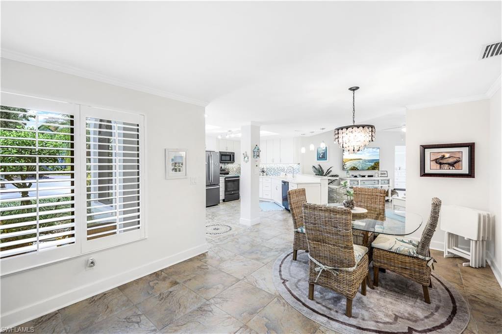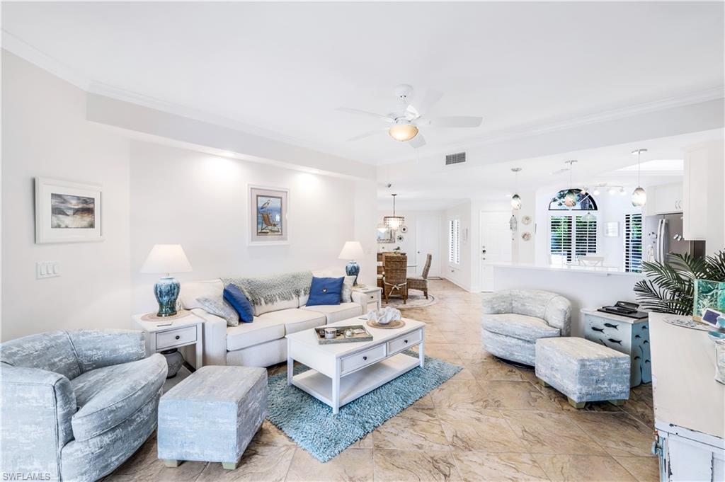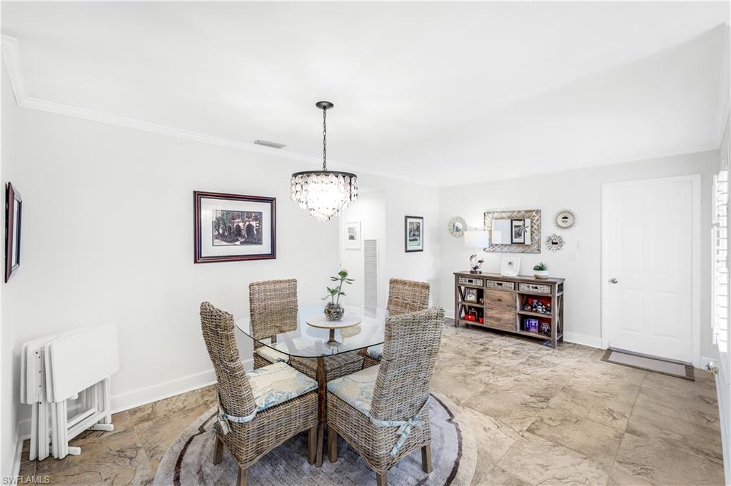 Motivated Seller! Welcome to your dream condo, where modern elegance meets unparalleled convenience! This stunning two-bedroom, two-bathroom condo with a one-car garage offers an exceptional living experience in Naples' most sought-after locations. Step inside to discover a spacious open floor plan adorned with beautiful tile floors throughout, providing a seamless flow from room to room. The attention to detail is evident with the exquisite crown molding that adds a touch of sophistication to every corner. The heart of the home, the kitchen, has been meticulously upgraded with brand-new cabinets, countertops, and top-of-the-line appliances, making it a chef's paradise. Both bathrooms also feature new cabinets, ensuring ample storage space and a cohesive aesthetic. Natural light pours in through the new impact sliders and windows, enhancing the condo's energy efficiency and offering peace of mind with their superior storm protection. Plantation shutters throughout add a touch of classic charm while allowing you to control the ambiance and privacy of your space. Located close to downtown Naples, this condo offers the best of both worlds: a tranquil retreat within walking distance of Baker Park and the Naples Greenway. Imagine starting your day with a leisurely stroll through lush nature trails within the community or spending afternoons exploring the scenic beauty of the Naples Greenway. The community boat dock provides easy access to the Gulf of Mexico via Rock Creek for boating enthusiasts, making it one of Southwest Florida's most unique boating communities. Whether you enjoy kayaking, fishing, or simply relaxing on the water, this location caters to your every need. The community itself is designed to foster a sense of relaxation and connection with nature. Residents can enjoy community gardens and a wooden walkway nature trail that winds through picturesque landscapes, offering a serene escape right outside your door. The sense of community is further enhanced by well-maintained common areas, a cabana with a community pool and spa, and friendly neighbors, creating an inviting atmosphere that truly feels like home. In addition to its natural beauty and outdoor amenities, this condo is in a prime location that provides easy access to all Naples has to offer. From world-class dining and shopping to cultural attractions and entertainment, you'll find everything you need just a short drive away. Whether you're looking for a quiet night in or an evening out on the town, this location offers endless possibilities. This condo is not just a place to live; it's a lifestyle. Its modern upgrades, convenient location, and community amenities perfectly blend comfort and luxury. Don't miss the opportunity to make this exceptional condo your new home. Experience the best of Naples living and schedule a viewing today. Welcome home! All roofs in the community were replaced in 2021. Maximum boat length at the dock is 23 feet with the engine out of the water.