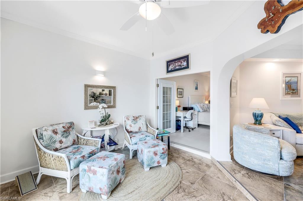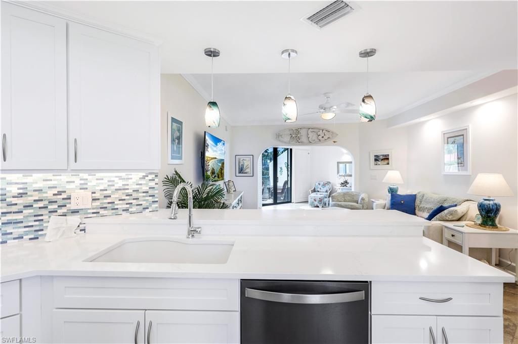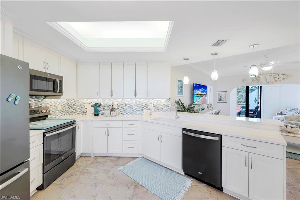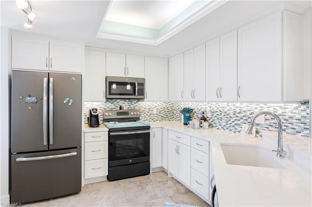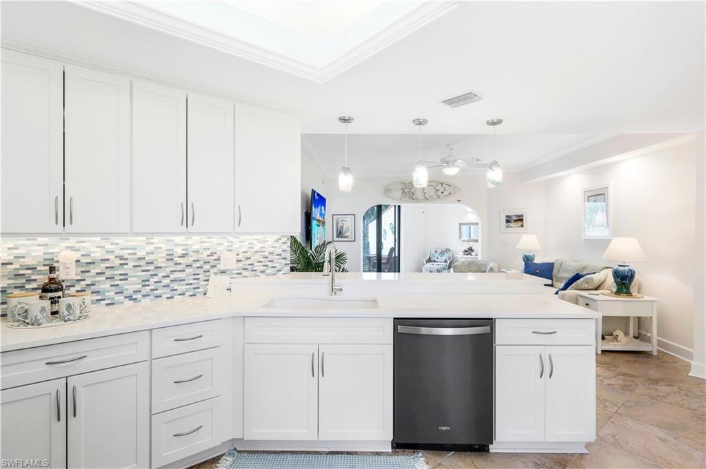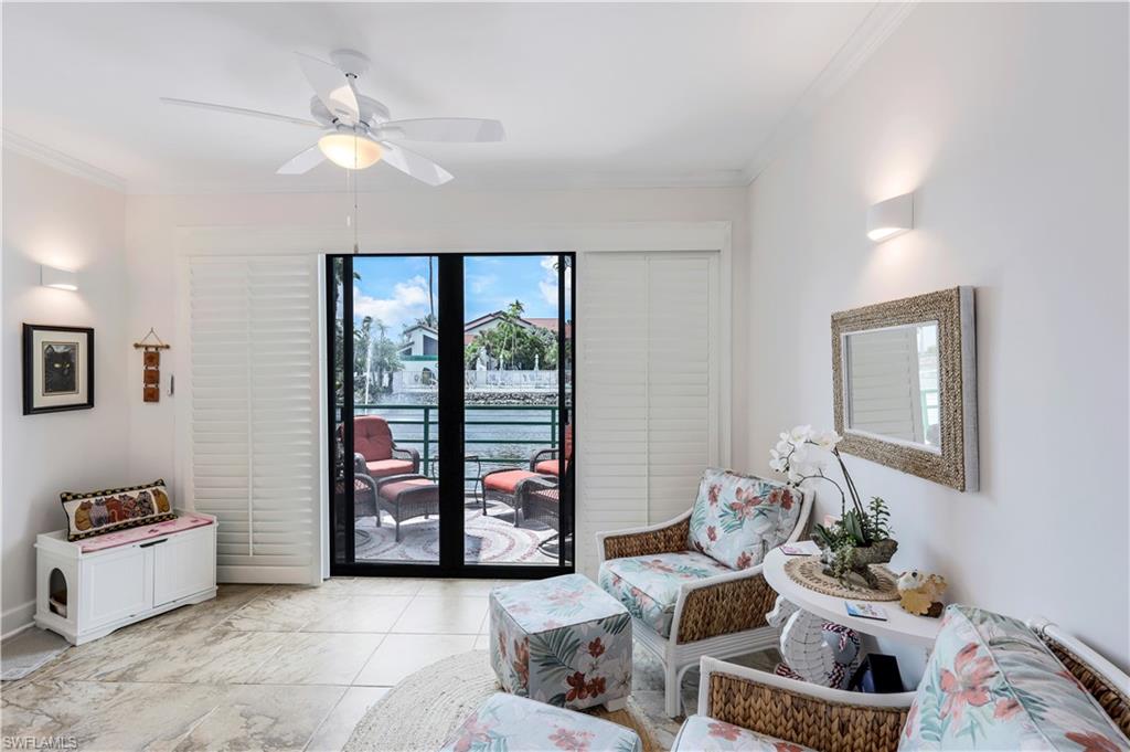 Motivated Seller! Welcome to your dream condo, where modern elegance meets unparalleled convenience! This stunning two-bedroom, two-bathroom condo with a one-car garage offers an exceptional living experience in Naples' most sought-after locations. Step inside to discover a spacious open floor plan adorned with beautiful tile floors throughout, providing a seamless flow from room to room. The attention to detail is evident with the exquisite crown molding that adds a touch of sophistication to every corner. The heart of the home, the kitchen, has been meticulously upgraded with brand-new cabinets, countertops, and top-of-the-line appliances, making it a chef's paradise. Both bathrooms also feature new cabinets, ensuring ample storage space and a cohesive aesthetic. Natural light pours in through the new impact sliders and windows, enhancing the condo's energy efficiency and offering peace of mind with their superior storm protection. Plantation shutters throughout add a touch of classic charm while allowing you to control the ambiance and privacy of your space. Located close to downtown Naples, this condo offers the best of both worlds: a tranquil retreat within walking distance of Baker Park and the Naples Greenway. Imagine starting your day with a leisurely stroll through lush nature trails within the community or spending afternoons exploring the scenic beauty of the Naples Greenway. The community boat dock provides easy access to the Gulf of Mexico via Rock Creek for boating enthusiasts, making it one of Southwest Florida's most unique boating communities. Whether you enjoy kayaking, fishing, or simply relaxing on the water, this location caters to your every need. The community itself is designed to foster a sense of relaxation and connection with nature. Residents can enjoy community gardens and a wooden walkway nature trail that winds through picturesque landscapes, offering a serene escape right outside your door. The sense of community is further enhanced by well-maintained common areas, a cabana with a community pool and spa, and friendly neighbors, creating an inviting atmosphere that truly feels like home. In addition to its natural beauty and outdoor amenities, this condo is in a prime location that provides easy access to all Naples has to offer. From world-class dining and shopping to cultural attractions and entertainment, you'll find everything you need just a short drive away. Whether you're looking for a quiet night in or an evening out on the town, this location offers endless possibilities. This condo is not just a place to live; it's a lifestyle. Its modern upgrades, convenient location, and community amenities perfectly blend comfort and luxury. Don't miss the opportunity to make this exceptional condo your new home. Experience the best of Naples living and schedule a viewing today. Welcome home! All roofs in the community were replaced in 2021. Maximum boat length at the dock is 23 feet with the engine out of the water.