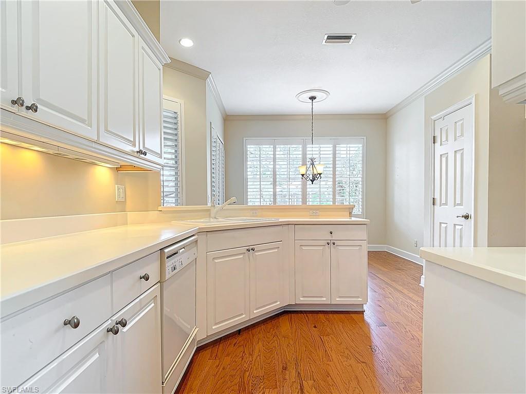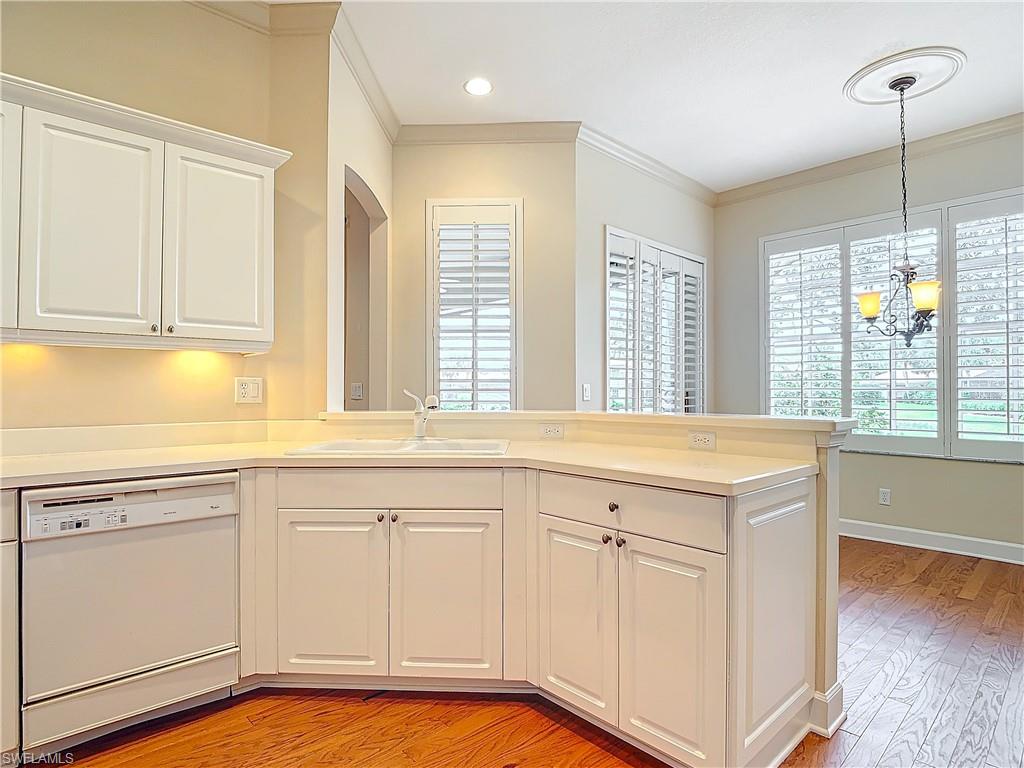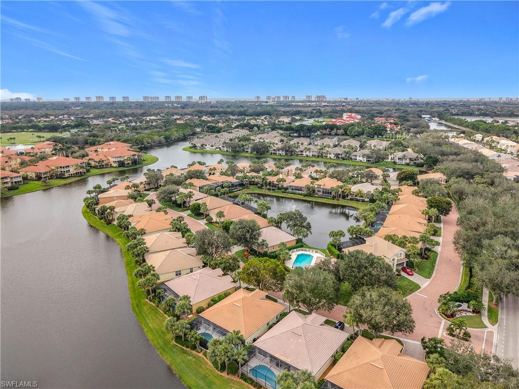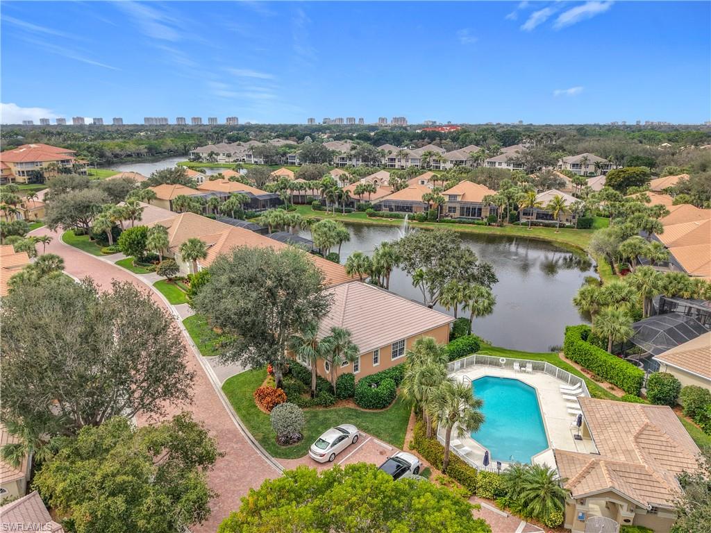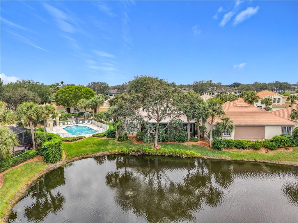Price Enhancement! A darling 2 bedroom with den all on one level home located in Pelican Marsh's Island Cove. Lake views from eat-in kitchen, living room and primary bedroom. No need to have a private pool as this gem is located right next door to community pool. Large lanai for outdoor enjoyment. The split bedrooms add for extra privacy. Primary bedroom bath has separate tub and shower & double sinks. Large walk-in closet in the primary bedroom. Pelican Marsh boasts it 133 Acres of Nature Preserves as well as the Community Center, Restaurant, Bocce Ball, Pickleball and Tennis Courts, Bike and Walking Paths, State of Art Fitness Center and optional golf memberships.