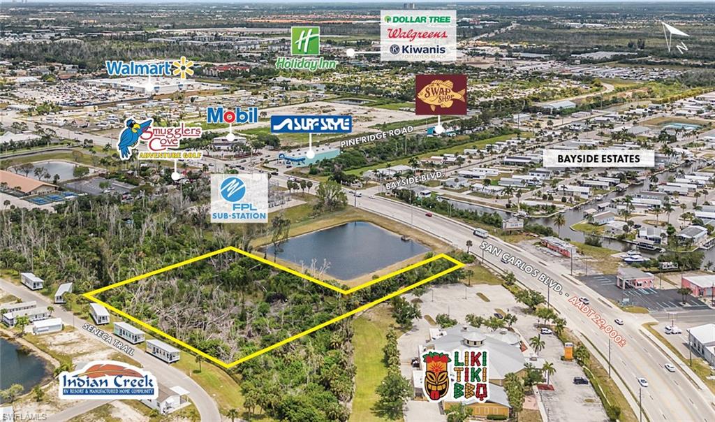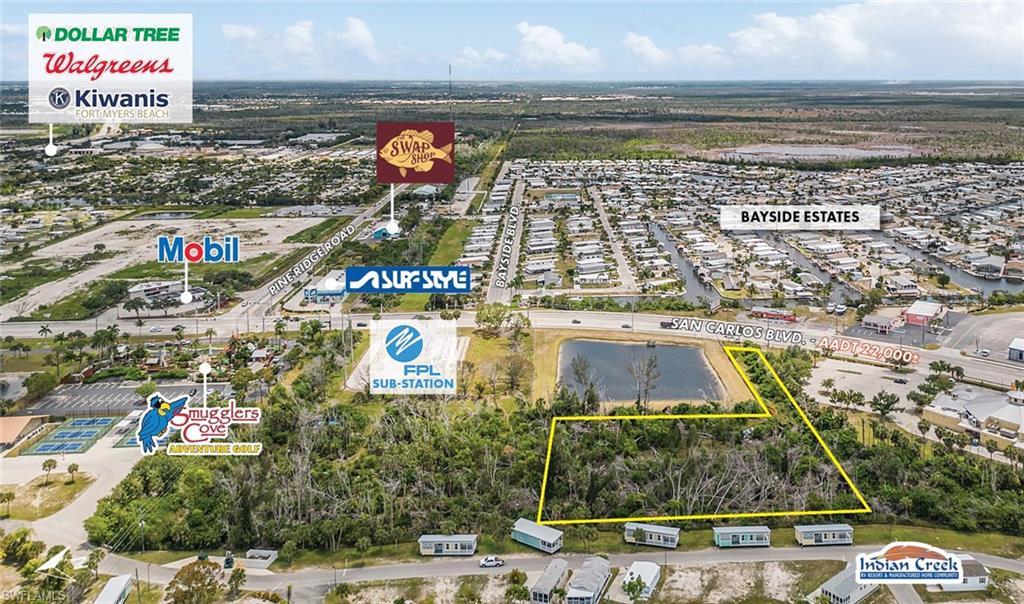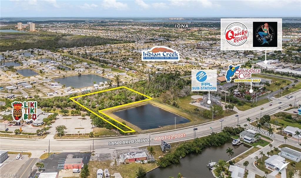 Presenting 17570 San Carlos Blvd., a 2.30± acre parcel located in Fort Myers Beach. This site features direct access from San Carlos Boulevard, the highly trafficked thoroughfare that connects Lee County to Fort Myers Beach. The property is currently zoned CPD, with the present permitted use allowing for a parking lot with 122 spaces. The commercial corridor in which the property sits is developed with a variety of C-2 uses, making the site a prime candidate for a rezone to C-2 or a new CPD. The property also falls within the Urban Community future land use category, which are areas characterized by a mixture of relatively intense commercial and residential uses, allowing for a multitude of development ventures. As Fort Myers Beach reemerges with development, this property presents an opportunity to capitalize on the rising demand in the Fort Myers Beach area. PROPERTY HIGHLIGHTS: • 2.30± acres of premier land with frontage on San Carlos Boulevard. • Conveniently located only 2.5 miles away from the white sand beaches of Fort Myers Beach. • Within a 15-minute drive of Sanibel, Cape Coral, and the City of Fort Myers. • Great investment potential for future commercial growth. • One of the last remaining large tracts of undeveloped land in the corridor. • Urban Community future land use allows for density ranging from 1 Du/Acre to 6 Du/Acre, with a maximum of ten dwelling units per acre. • Positioned in a high-growth corridor and surrounded by amenities, attractions, and outdoor recreational activities. • Excellent opportunity for rezoning to accommodate a variety of commercial ventures.