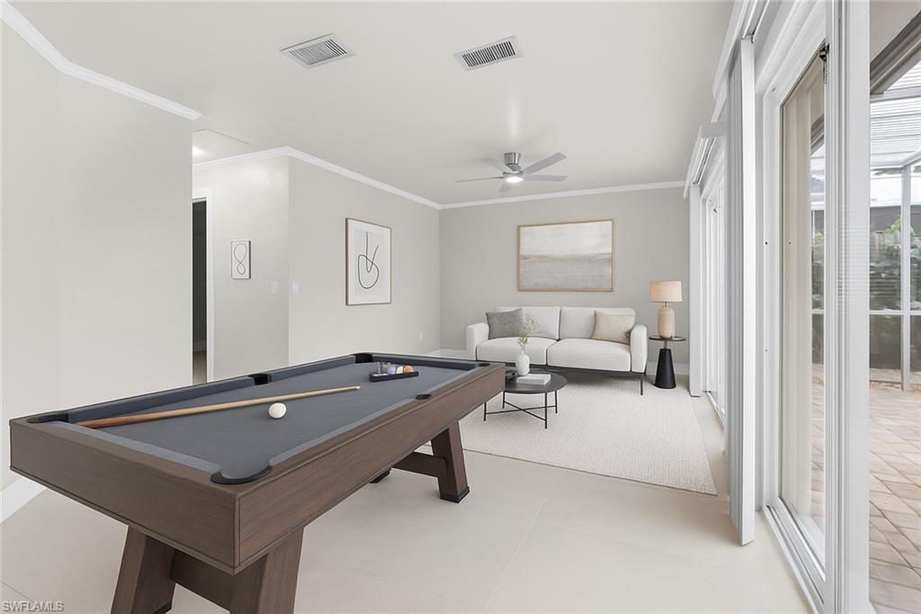 You can't beat this new, lower price for this Resort-Style Living in Bonita Shores – Remodeled 4-Bedroom Home! Welcome to your dream home! This beautiful 4-bedroom, 3-bathroom residence in Bonita Shores has been beautifully remodeled, offering the perfect blend of style, comfort, and functionality. Whether you’re looking for a luxurious permanent residence or the ultimate vacation retreat, this home has it all. As you approach, you'll be impressed by the manicured landscaping and expansive driveway, setting the tone for this resort-style gem. Step inside and be greeted by a spacious and modern living area, featuring sleek ceramic tile flooring throughout. The custom-built kitchen is a chef’s delight, boasting elegant cabinets with contemporary accents and a stunning island that’s perfect for gathering with family and friends. The home’s thoughtful layout includes: A private master suite for ultimate relaxation. A guest bathroom equipped with a jacuzzi-style bathtub. An additional family room, versatile enough to suit any need—ideal for a game room, entertainment space, or home office. Key upgrades include a brand-new roof (2024) and state-of-the-art HVAC system (2025), ensuring worry-free living for years to come. Outdoor living is equally spectacular, with two screened-in lanais (front and back) and a resort-style pool surrounded by lush, natural privacy fencing. Perfect for entertaining or unwinding in your own personal oasis. Located just minutes from Bonita Springs’ renowned beaches, top-notch restaurants, shopping, and a short drive to Naples, this home offers the ultimate in convenience and lifestyle. Don’t miss this rare opportunity to own a piece of paradise in one of Florida’s most sought-after communities.
