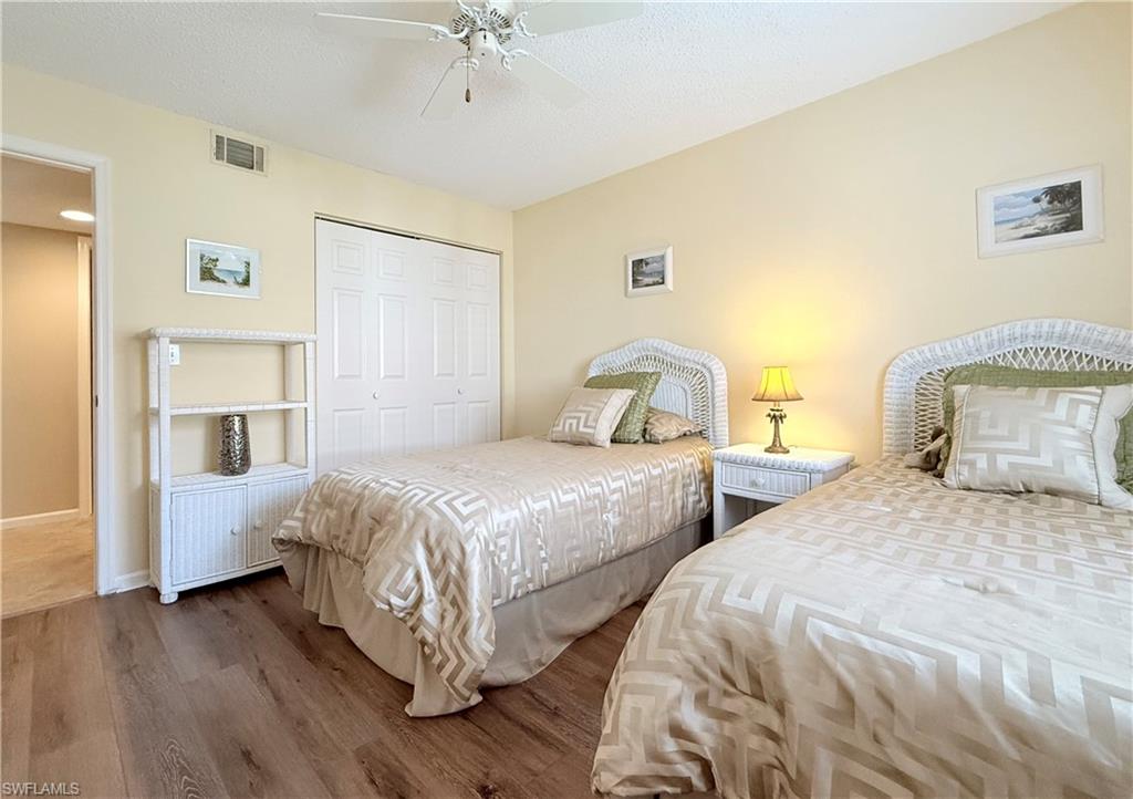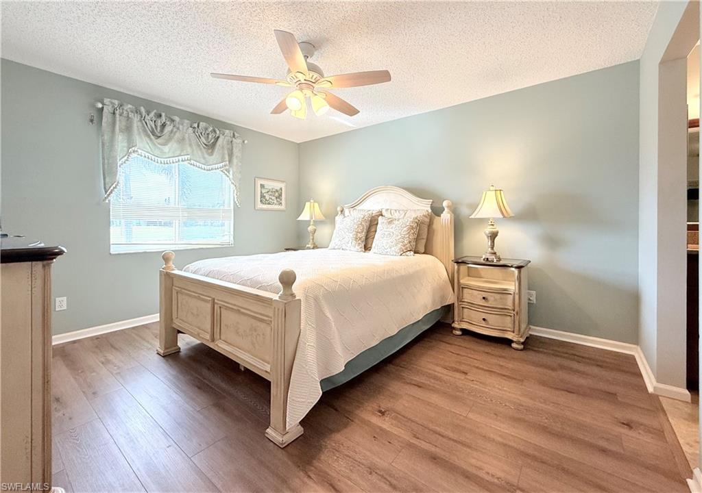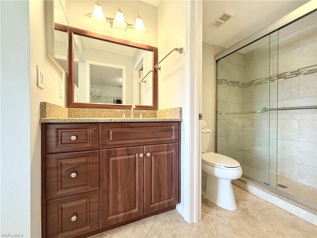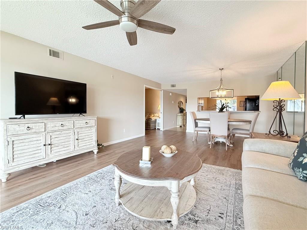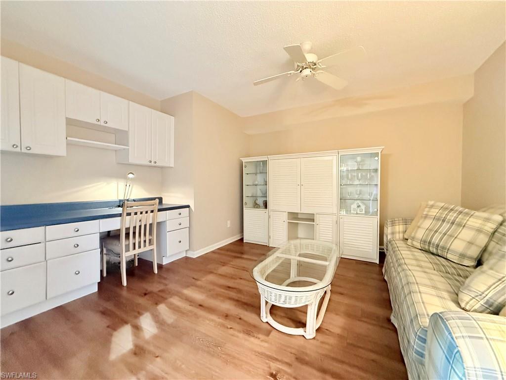 NOW AVAILABLE ... GROUND FLOOR 2BR + Den w/ Garage Condo at Glen Eagle Golf and Country Club. Full golf membership is deeded with property!! Located within walking distance to the clubhouse. Back lanai has highly desired western exposure with view of water and golf. HVAC replaced in 2021. HWH replaced in 2022. Beautiful condo has many updates. Exceptionally cared for by current owner this home is move in ready. Large neutral tiles cover floors in entry, kitchen, hallway and baths. Dining room, den, living room and bedrooms have luxury vinyl plank flooring. Spacious kitchen has updates to include re-faced cabinets, under cabinet lighting and matching appliances. Lighting fixtures and ceilings fans updated in kitchen, dining, living room, primary bedroom, primary bath and guest bath. Dining and living room are open concept with double pocket doors into den. Den is multi purpose room that can be used as 3rd bedroom when needed (has pull out sofa) and/or home office (has built in desk area). Living room opens to back lanai where you'll enjoy relaxing with view of water, golf and sunsets. Primary bedroom is spit from guest bedroom for added privacy. Primary bath is updated and has a large walk in closet. Guest bath has updated vanity and fixtures. Large walk in laundry room offer a large amount of storage space. Current owner hopes new owner will love as much as she did. Its more than a home, it's a lifestyle. Glen Eagle offers its residents an 18 hole golf course, clubhouse with indoor and outdoor dining options, fitness center, tennis courts, pickleball courts, indoor golf simulator, community pool and bocce ball. With a very active social calendar you will always have activities to enjoy with current friends while meeting new friends. Glen Eagle is located just minutes for downtown Naples and beaches.