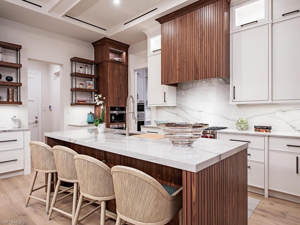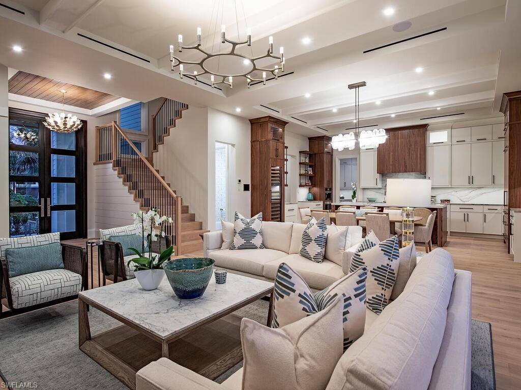 Exquisite New Construction Waterfront Residence within the highly desired Park Shore! Thoughtfully designed by MHK Architecture, conscientiously crafted by T.B. Price Builders, and tastefully appointed by Lisa Ficarra of Ficarra Design Associates, this coastal new construction home lends itself to casual, yet elevated living. The spacious open floor plan features a great room, dining area, elegantly appointed gourmet kitchen, and adjacent caterer’s kitchen. The gracious first floor primary suite boasts a sitting area, spa inspired bath, and morning bar with a well appointed study nearby. Second level living offers four guest ensuites, media loft, additional laundry, wet bar, and generous outdoor balcony. Seamless outdoor living awaits with covered and open-air spaces, featuring a stunning pool and spa area masterfully designed by ALD, Inc. Perfect for relaxation, this exceptional setting offers picturesque views of the Bay in this highly sought-after neighborhood. Park Shore offers private, guarded, gated beach access, and close proximity to Venetian Village and Waterside Shops. Park Shore is centrally located and west of US-41 between Vanderbilt Beach and historic Old Naples. Just a short boat ride to the open waters of the Gulf of Mexico!