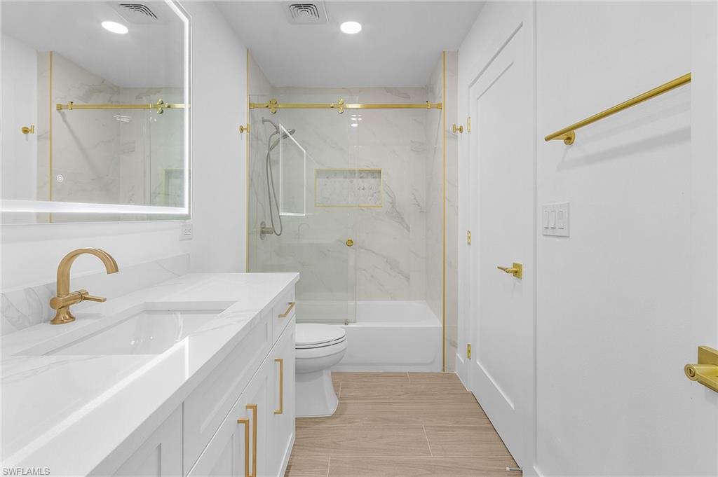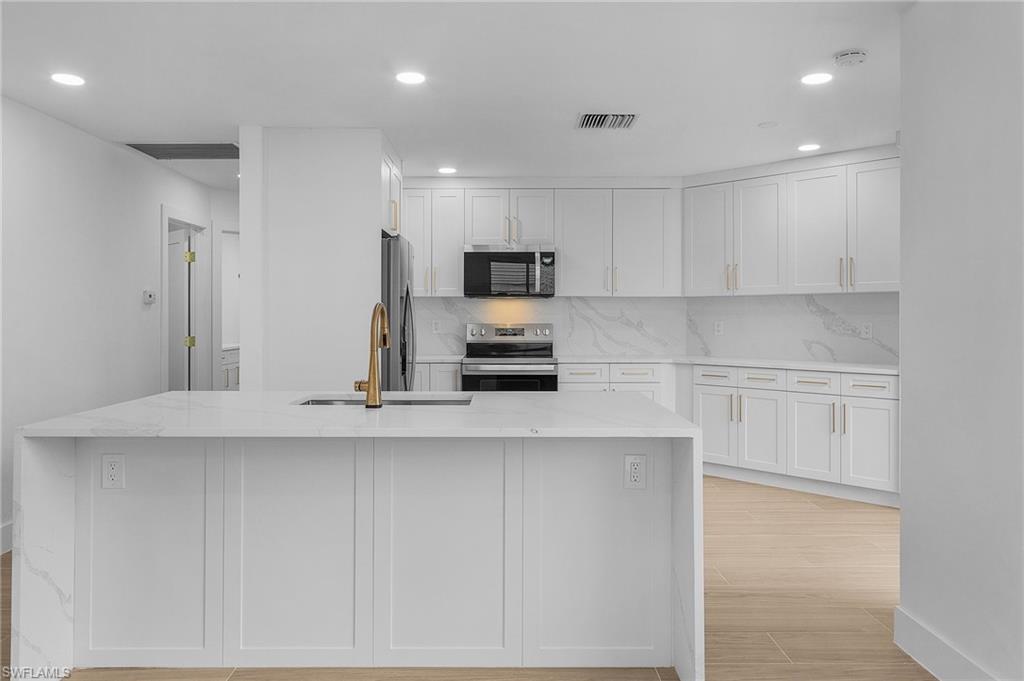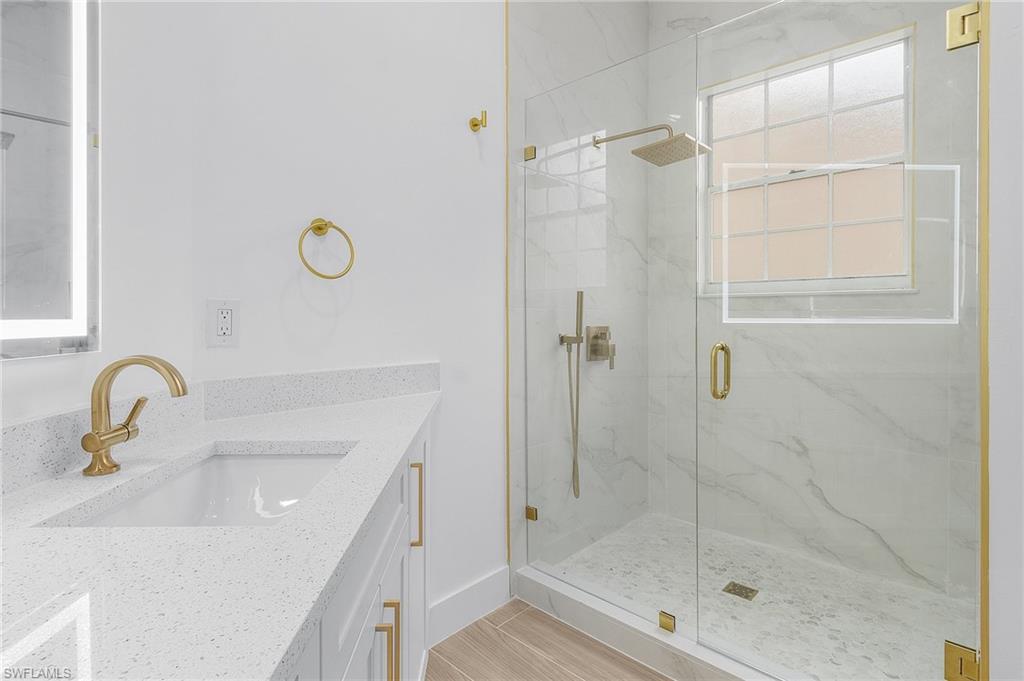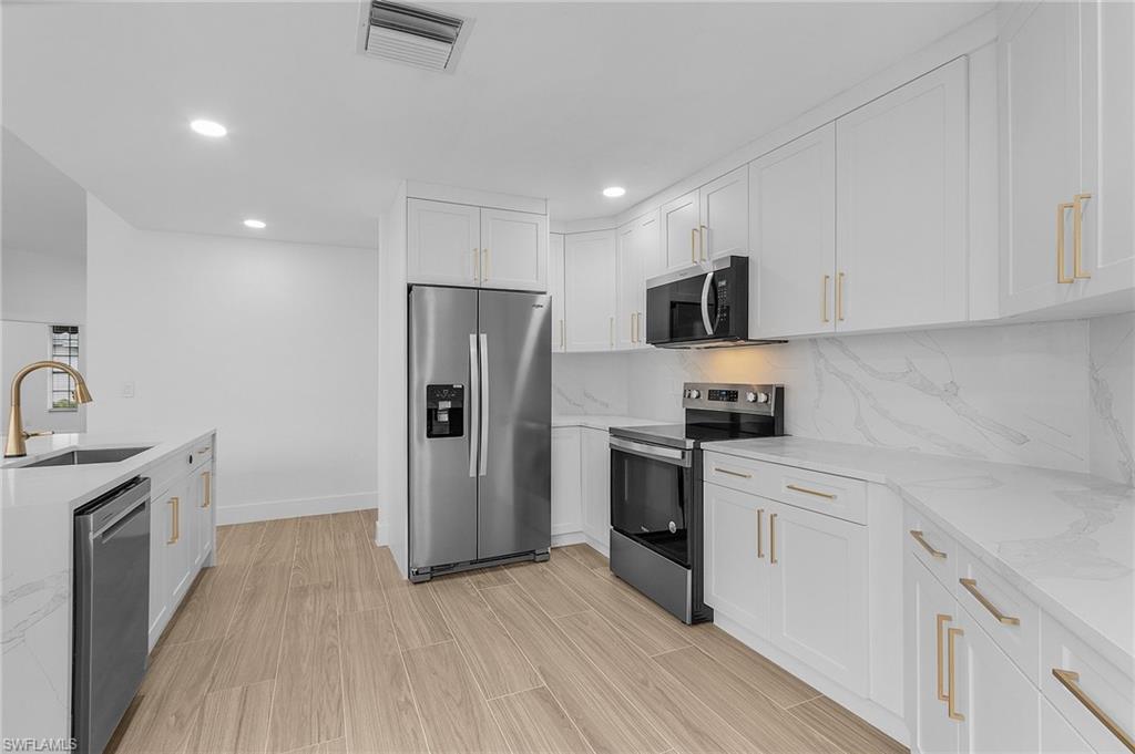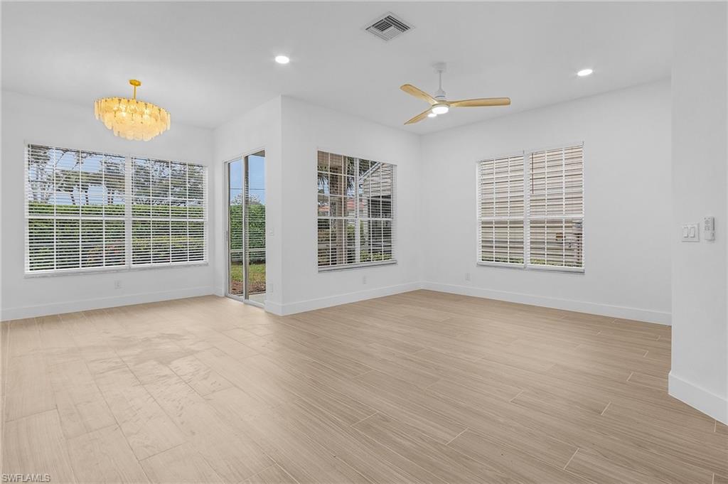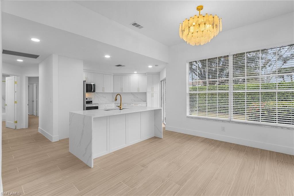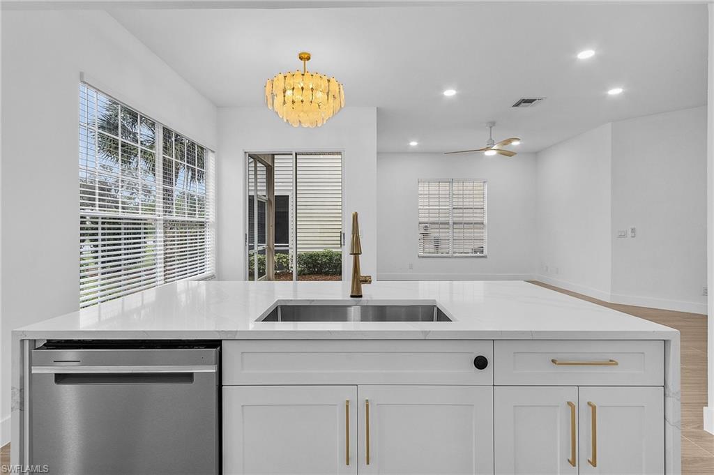 This gated Lakeside Community is in a prime north Naples location. Near the Gulf with some of the best white sand beaches in FL! Minutes from award-winning dining, upscale shopping, top rated golf, outdoor activities, I-75 & more. "A" rated school district. HOA fees are only $976/qtr! You are greeted by a spacious lush green front yard and large oak tree. Inside offers an open floorplan design w/ 1538 sq ft of living area, 3 Bedrooms, 2 full baths, eat-in kitchen, dining area, spacious great room & laundry room. The kitchen was custom designed and brand new with never used brand new whirlpool appliances with warranty! Master BR has walk-in custom made closet & en suite w/ 2 sinks. Enjoy the sunrise or beautifully painted sunset sky from the spacious lanai. The home is completely updated with custom wood cabinets in baths and kitchen, wood look porcelain tile, custom closets in every room of the home, Delta faucets and bath fixtures. THERES NO OTHER HOME FOR SALE IN LAKESIDE AS BEAUTIFULLY DONE AS THIS ONE! The 40-acre lake features 2 lighted fountains, fishing & kayaking! Amenities include a fitness center, sauna, billiards, KT & choice of 2 pools. Play a round of tennis or pickleball. There's also a tot playground, basketball, bocce & shuffleboard. A 1.5 mile walking path meanders through beautiful landscaping.