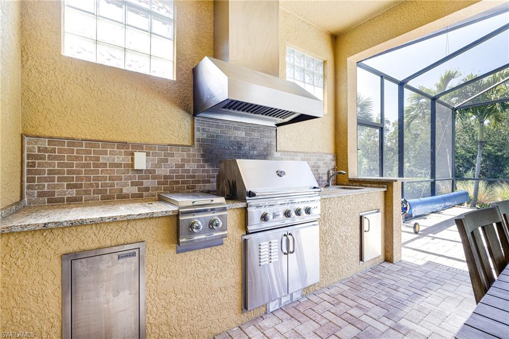 Coastal Elegance Meets Modern Luxury in this stunning three bedroom, 3 full bath plus powder room and den/study Martinique model expertly built by WCI, one of only eight of it's kind in the entire community and upgraded with over $140,000 in premium enhancements. Offering 2,509 sq. ft. of sophisticated coastal living space, this home is designed for elegance and comfort. The spacious great room features an elegant tray ceiling, while the gourmet kitchen boasts 42” cabinetry, quartz countertops, a stylish tile backsplash, a generous breakfast bar, and top-of-the-line KitchenAid appliances, including a stove hood, with under-cabinet lighting, recessed lighting and designer light fixtures. The adjacent dining area is the perfect space for entertaining family and friends. Every detail is thoughtfully curated, from the crown molding and plantation shutters to the high- impact windows and doors, 12” x 24” tiles, and rich hardwood floors in the three bedrooms and the den/study. The primary bedroom features a tray ceiling, double vanity, a large shower, water closet, linen closet and a sizeable walkin closet. All bedrooms ensure the ultimate in privacy and convenience, each offering it's own en-suite bath and individually air-conditioned walk-in closets. Step outside to your private tropical oasis, where a heated saltwater pool with a lounging shelf awaits surrounded by a brick-paver pool deck basking in sunny western exposure. The chef’s outdoor kitchen is a true showstopper, featuring a high-end gas grill, double burner, sink, and exhaust hood. It is the perfect area for you and your guests to enjoy true Floridian al fresco dining while taking in the serene views of lush, mature landscaping, a tranquil canal, and a protected preserve, all accentuated by LED landscape lighting. This fabulous home is located in desirable Artesia Naples, a low-density gated neighborhood with low HOA fees, no CDD, and resort-style amenities that include a gorgeous modern clubhouse with a dining room, card room, billiard room, theater, yoga studio and a well-equipped fitness room. Outside reveals a tropical heated community pool with lap lanes and views of the community’s largest lake with a majestic fountain, along with barbecue grills, pickleball, bocce, and dog park. All of this, just minutes from the world-class beaches, shopping, and dining of Naples and Marco Island! Don’t miss this rare opportunity—schedule your private tour today!