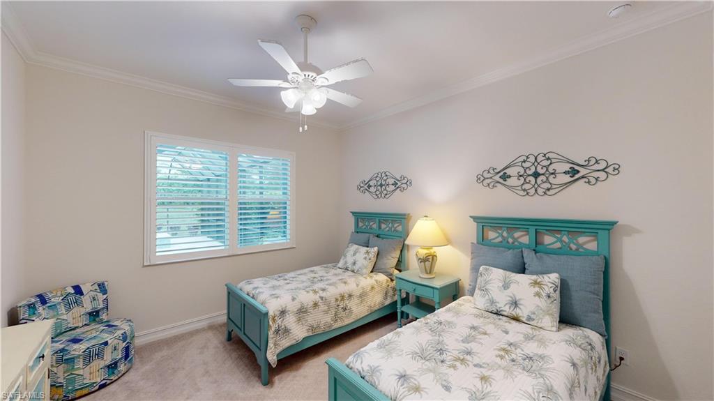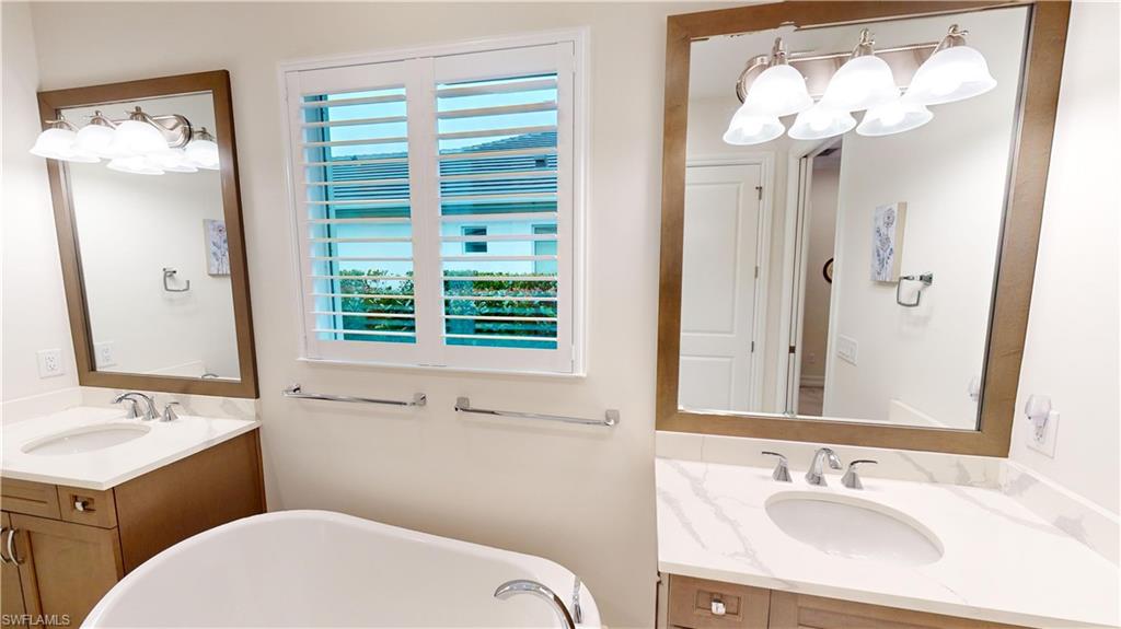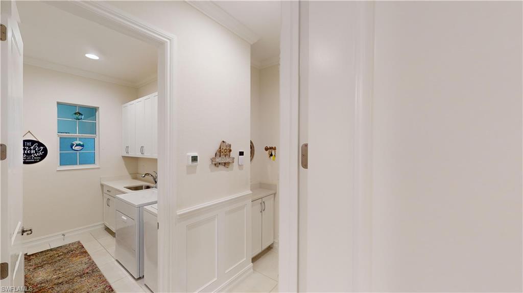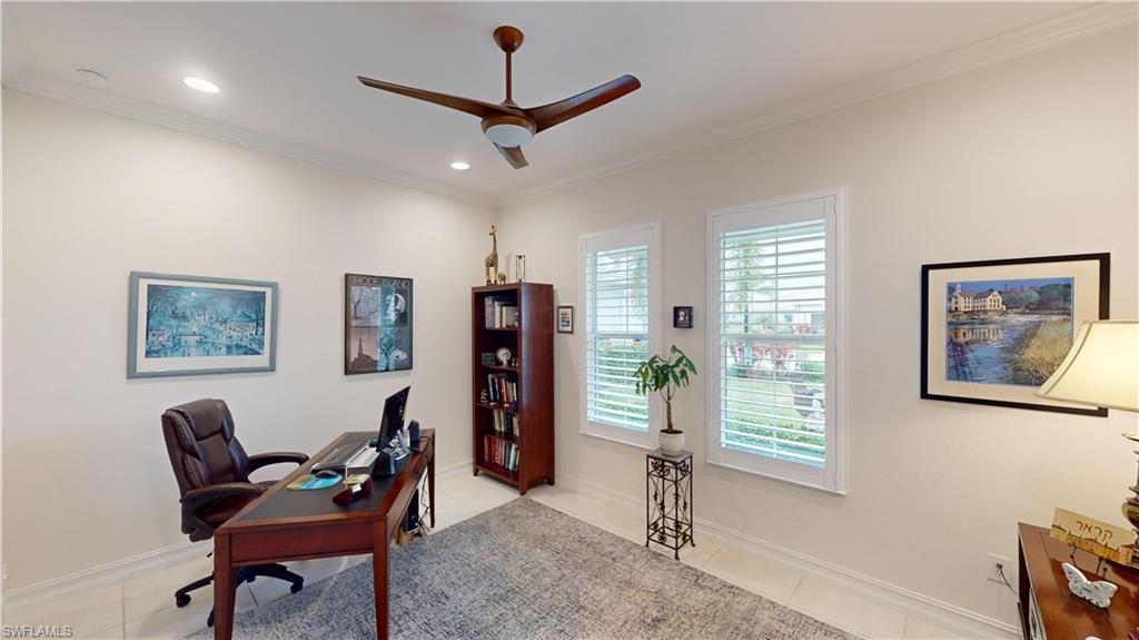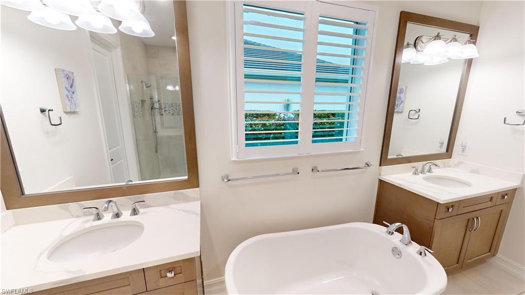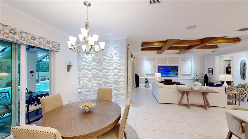 This stunning 2020 Stock Construction (Siesta III Floorplan) home is bursting with luxurious upgrades. The centerpiece of the backyard is a magnificent custom heated salt-water pool, perfect for year-round enjoyment. Inside, the kitchen dazzles with elegant under & above cabinet lighting and beautiful glass tile backsplash that complements the gleaming quartz countertops. The master suite is a true retreat, featuring a generous walk-in closet, a beautifully designed bathroom with double sinks, a relaxing separate tub, and a lavish walk-in tile frameless shower enclosure that adds a spa-like elegance. You'll find high-impact-resistant windows throughout the home, providing safety and energy efficiency, along with a Reme Halo UV light integrated into the A/C system for improved air quality. Attention to detail is evident with custom handmade wainscoting and exquisite crown molding accentuating the living spaces. Additionally, plantation shutters adorn the windows, adding a classic touch, while modern conveniences such as an alarm system, and in-ceiling surround sound in the great room enhance your lifestyle. The garage is a functional and comfortable space featuring a wall-mounted ductless air conditioner, insulated garage door, insulated ceiling, and well-organized wall cabinets. The exterior is beautifully landscaped with screening shrubs and trees that provide privacy. You'll also appreciate the peace of mind offered by the 24 kW whole-house Generac generator, connected to a sizable 500-gallon propane tank. The outdoor kitchen, crafted by SWFL Kitchens, is perfect for entertaining guests, while Storm Smart hurricane shutters protect your home. Custom-designed cypress ceiling beams in the great room lend a warm, rustic charm, and ceiling fans and crown moldings can be found throughout the home. Don't forget the convenience of a 48-bottle under-cabinet wine refrigerator to keep your favorite drinks perfectly chilled. Living in Naples Reserve means immersing yourself in natural beauty, exploring (22) lakes, and enjoying miles of scenic bike and walking trails alongside a picturesque 1-mile rowing lane. The community provides security with a manned guard gate. It offers fantastic amenities, including The Island Club, The Outrigger for hosting events, a fully equipped fitness center, and a resort-style pool with lap lanes. Enjoy refreshments at the cafe or tiki bar, relax on the beach with volleyball, and enjoy the pickleball courts, tennis courts, and bocce ball area. Furthermore, there are two dog parks and a dedicated playground.