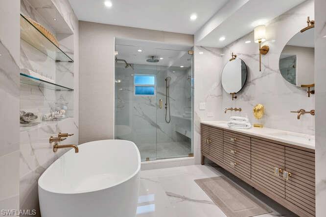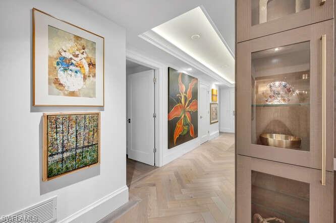 THE BEST OF EVERYTHING! This home was remastered two years ago with more than enough glamour to please the most discriminating. The living room, dining room and fabulous open kitchen are all oriented to take advantage of the beach view over the pool. Fine craftsmanship is evident everywhere. The cabinetry, ceilings, floors, and every nook and cranny speaks quality and thoughtfulness. From the moment you leave the elevator, your guests will feel the elegance starting in the elevator lobby. That feeling is only enhanced as you enter the front door. Rich contemporary design throughout with a kitchen to astonish even the best chefs. Storage is extensive. The ceiling treatments in every room will delight you. The creative way the middle en-suite bath now opens two ways to create a wonderful guest bath will please your guests. Three en-suite baths will delight all who visit. And the view of the beach over the pool will only enhance the sunsets that will wow you for years to come. The property is well managed by an on-site manager and the attention to detail shows.
