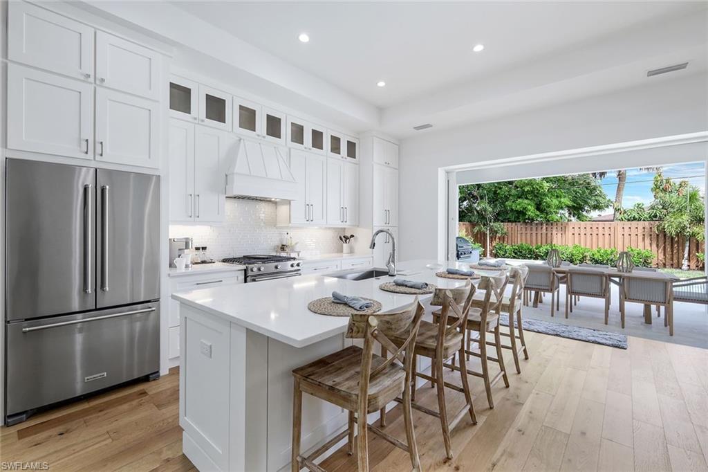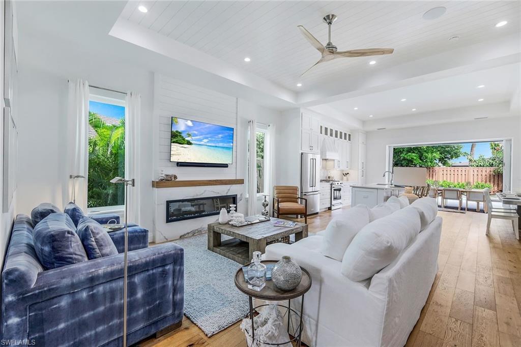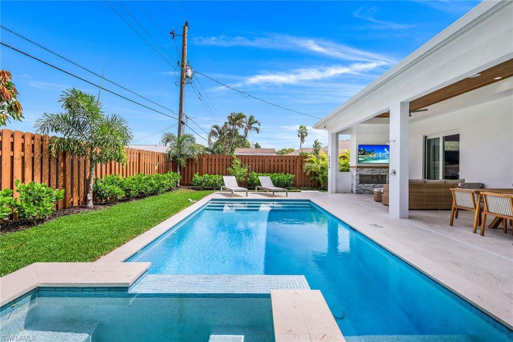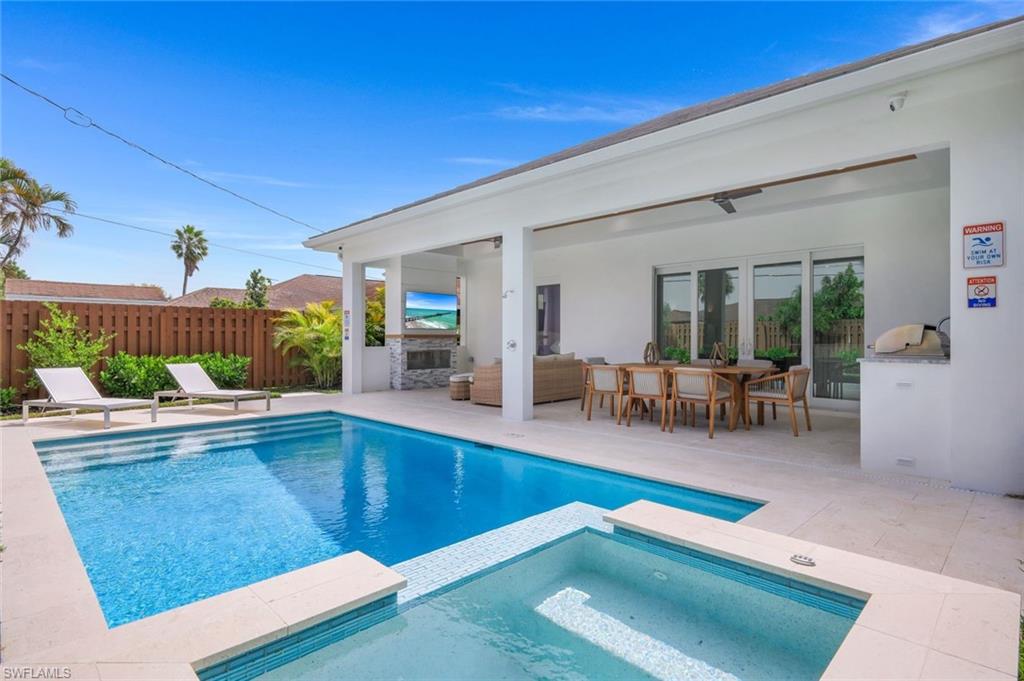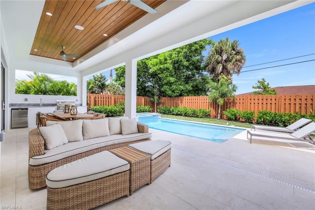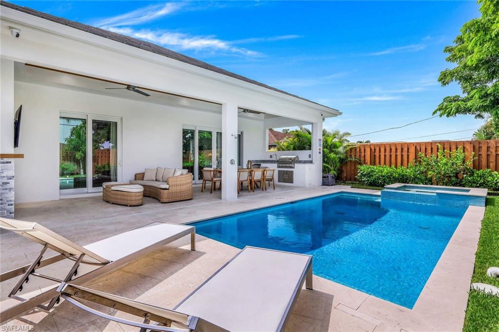 INVESTORS TAKE NOTICE: Proven rental history with upcoming rentals in place, if desired. Introducing this stunning, move in ready, newer construction home in Naples Park! Built by Naples Luxury Builders, a leading name in the Vanderbilt Beach area, this exquisite four-bedroom, three-bathroom residence is designed for luxury living and is being sold turnkey. Featuring impressive 11 and 12-foot ceilings, an open-concept layout, and elegant wide plank wood flooring, this home is a true masterpiece. Enjoy high-end finishes and upgrades throughout, including a stylish dry bar and a spacious outdoor living area complete with a summer kitchen. The resort-style saltwater pool and spa provide the perfect retreat, while hurricane impact doors and windows ensure safety and peace of mind. The bright and airy kitchen boasts beautiful solid surface countertops, upscale cabinetry, a gas range, and stainless steel appliances, making it a chef's dream. Step into the backyard oasis, where the pool, spa, outdoor kitchen, and fireplace embody the ultimate Florida lifestyle. The home is being sold turnkey and also has built in Sonos speakers and finished closets in every room. Located conveniently in Naples Park, this home is just a short walk to the Mercato, minutes away from the Waterside Shops, and only a quick drive to the vibrant downtown areas of 3rd Street South and 5th Avenue South. Don’t miss the opportunity to make this luxurious residence your own!