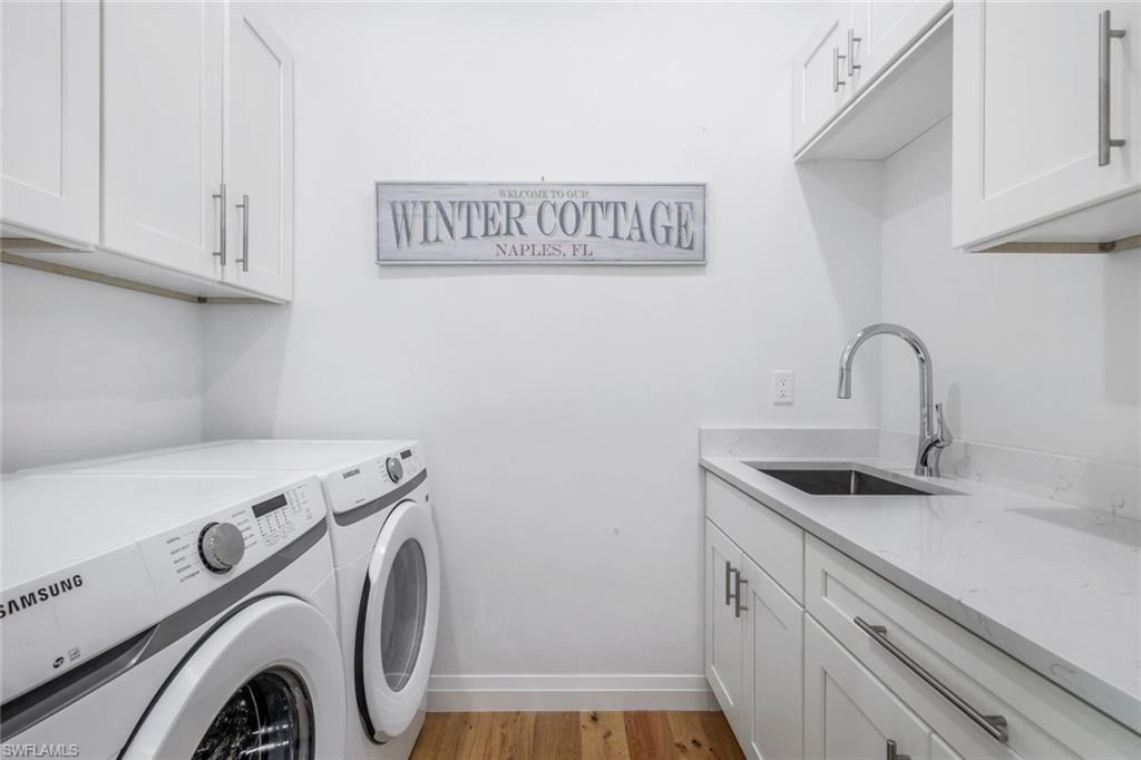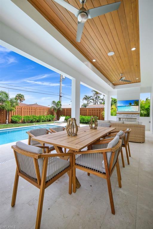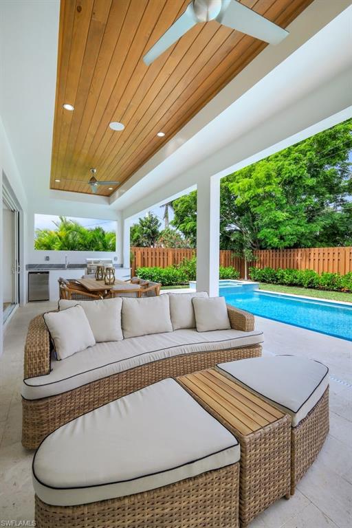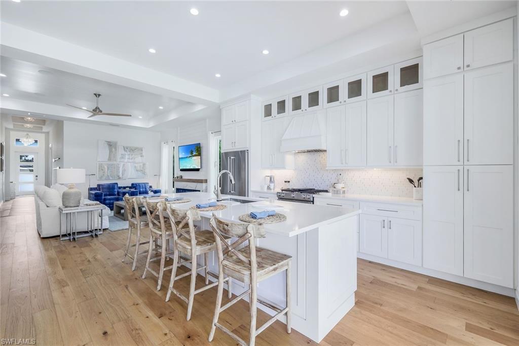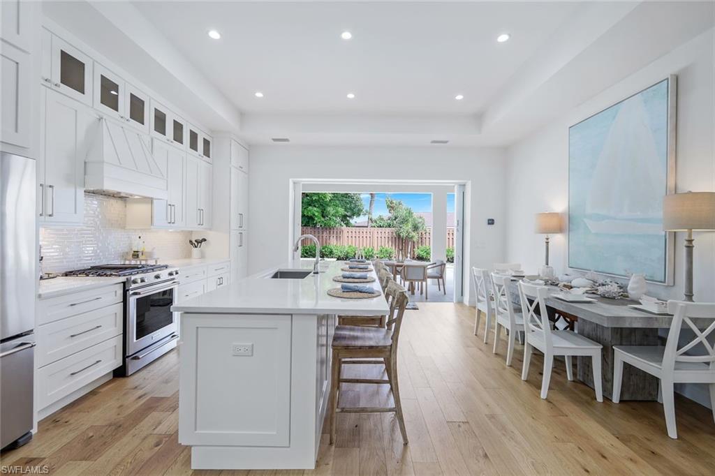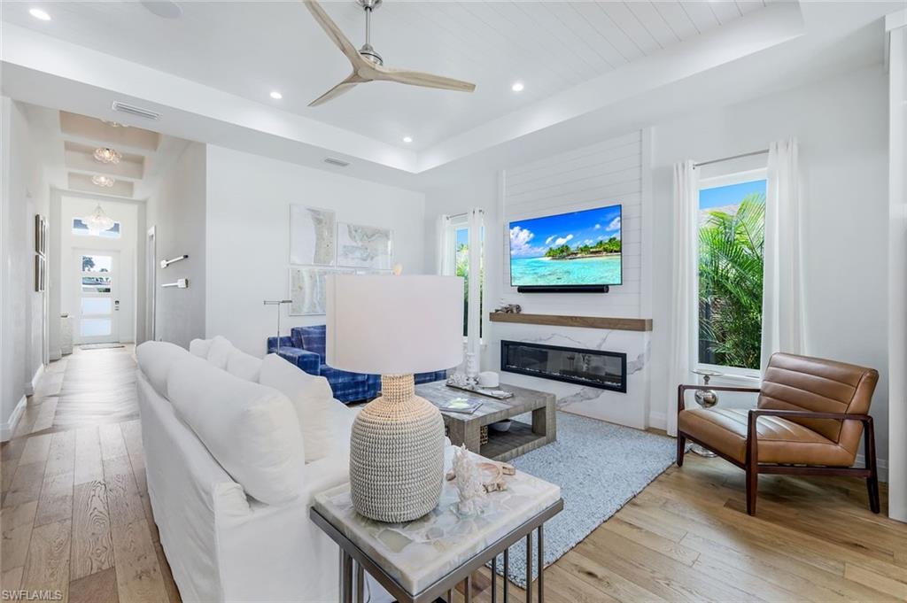 INVESTORS TAKE NOTICE: Proven rental history with upcoming rentals in place, if desired. Introducing this stunning, move in ready, newer construction home in Naples Park! Built by Naples Luxury Builders, a leading name in the Vanderbilt Beach area, this exquisite four-bedroom, three-bathroom residence is designed for luxury living and is being sold turnkey. Featuring impressive 11 and 12-foot ceilings, an open-concept layout, and elegant wide plank wood flooring, this home is a true masterpiece. Enjoy high-end finishes and upgrades throughout, including a stylish dry bar and a spacious outdoor living area complete with a summer kitchen. The resort-style saltwater pool and spa provide the perfect retreat, while hurricane impact doors and windows ensure safety and peace of mind. The bright and airy kitchen boasts beautiful solid surface countertops, upscale cabinetry, a gas range, and stainless steel appliances, making it a chef's dream. Step into the backyard oasis, where the pool, spa, outdoor kitchen, and fireplace embody the ultimate Florida lifestyle. The home is being sold turnkey and also has built in Sonos speakers and finished closets in every room. Located conveniently in Naples Park, this home is just a short walk to the Mercato, minutes away from the Waterside Shops, and only a quick drive to the vibrant downtown areas of 3rd Street South and 5th Avenue South. Don’t miss the opportunity to make this luxurious residence your own!