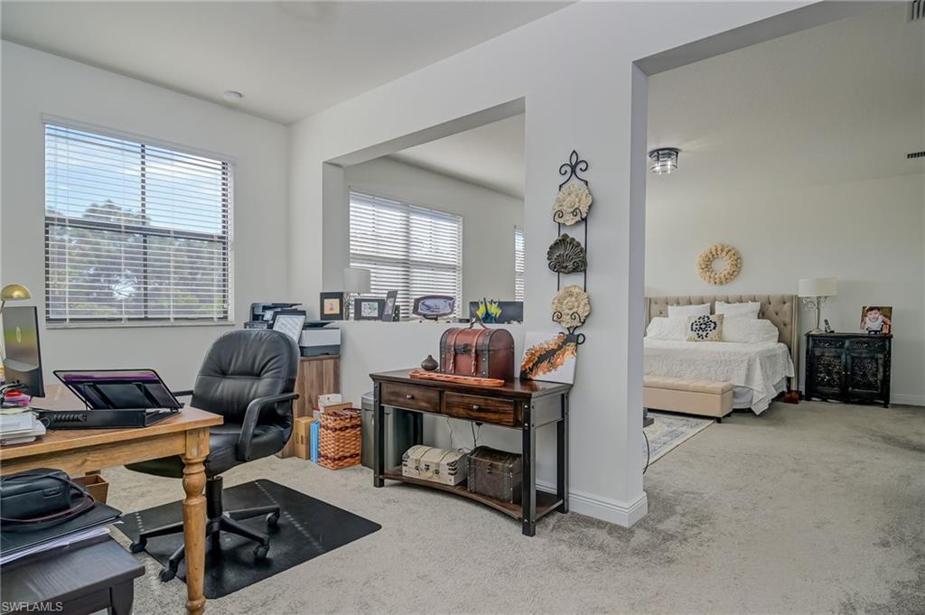 Back on the market, this gorgeous 4bd/3b home located in the Maple Ridge community of Ave Maria. This home comes in at over 4K sq ft. including a two-car garage and additional den/bedroom on the first floor. This two-story home is in pristine condition with many upgrades and amenities through-out. First floor includes foyer/entry, one bedroom with full bath, den and/or office space, separate oversized family and living room, spacious kitchen with upgraded cabinets and appliances, granite countertops, breakfast nook and a separate formal dining room. Second floor includes a Jack and Jill bathroom connecting the upstairs bedrooms, plus an additional loft/family area. The primary suite includes its own entertainment/office space, double door entry, his/her full walk-in closets, oversized master bathroom with separate shower and tub. This bath also includes separate his/hers water closets. This home is fully landscaped with fenced in backyard, great for your furry friends or play area.