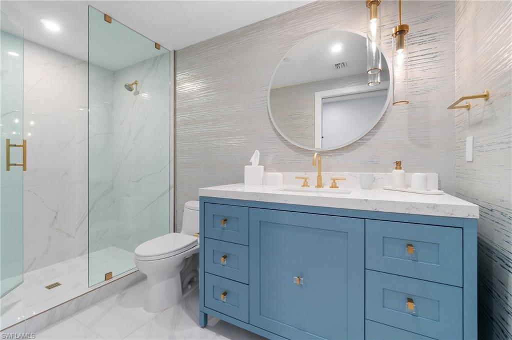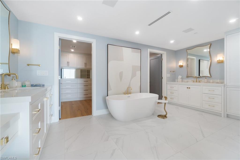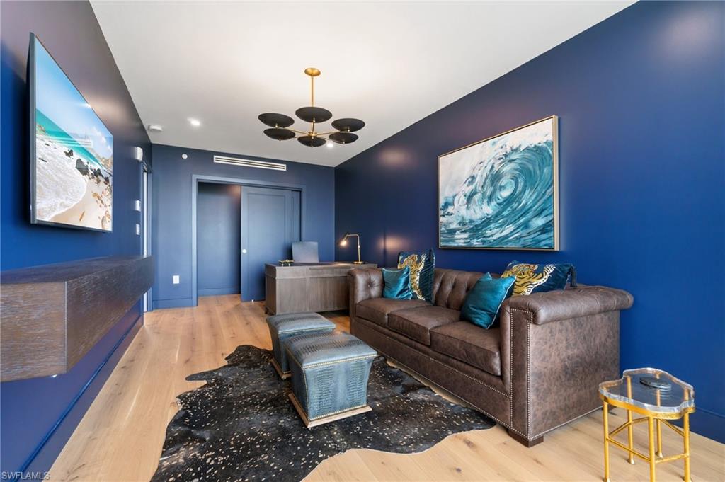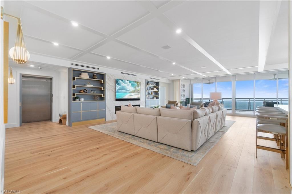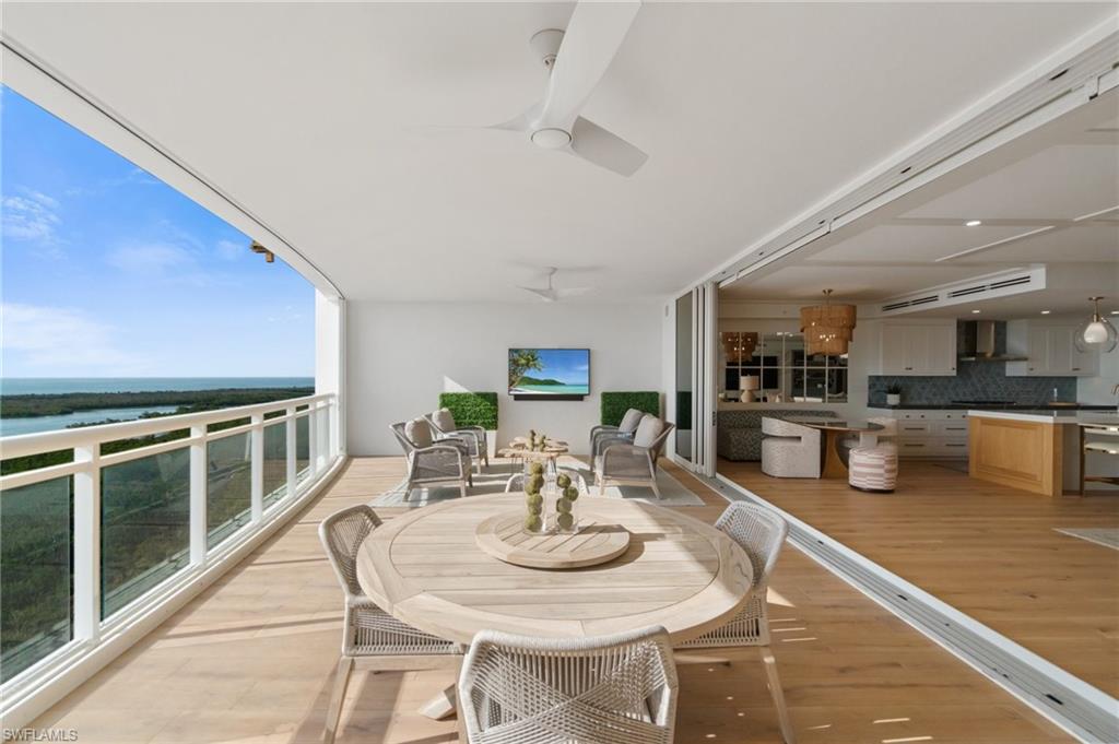 Indulge in a wealth of lavish upgrades and enhancements that define this rare Tower 400 sanctuary—a must-see masterpiece for the most discerning buyers. Welcome to the epitome of luxury living in the newest Tower 400, '02 unit on the 15th floor. This elegantly designed 4-bedroom, 3.5-bathroom residence spans an impressive 3,290 square feet, offering unparalleled sunset vistas of the Gulf and Wiggins Pass, along with breathtaking sunrise views over the clubhouse and the prestigious Kinsale Golf Course. Expertly curated by the nationally acclaimed interior designer Renee Gaddis, this residence is a testament to craftsmanship and style. Immerse yourself in the opulence of Legno Bastone European white oak wood floors, complemented by exquisite custom chandeliers, wall sconces, drapery and wallpapers from renowned designers Schumacher, Phillip Jefferies, and Thibaut. The sophisticated living space boasts a custom built-in Dimplex Ignite fireplace and meticulously upgraded cabinetry. The gourmet kitchen is a culinary haven, with upgraded quartz countertops, premium Wolf and Sub-Zero appliances, a natural gas cooktop, dual Bosch dishwashers, a built-in Miele coffee/espresso machine, and a Kinetico reverse osmosis system. Maximize storage space with upgraded custom built-in cabinetry in the laundry room, the master bedroom walk-in closet, and refined cabinetry in bedrooms 2 and 3. Effortless living is ensured with automated shutters, lighting, and music, all managed by an advanced premium Smart Home system. The expansive patio lanai, equipped with an outdoor TV and speaker system, is safeguarded by hurricane shutters, providing peace of mind while you're away. Ascend a few floors to the rooftop terrace pool to savor a sunset, or stroll across the street to the five-star luxurious clubhouse, boasting three pools, two gourmet restaurants, a wellness center, pickleball, tennis, and more. Welcome to an uncomplicated, coastal luxurious lifestyle at Kalea Bay, where elegance meets ease and every detail is designed for your utmost pleasure.