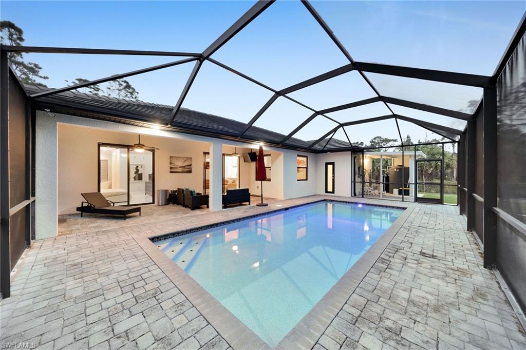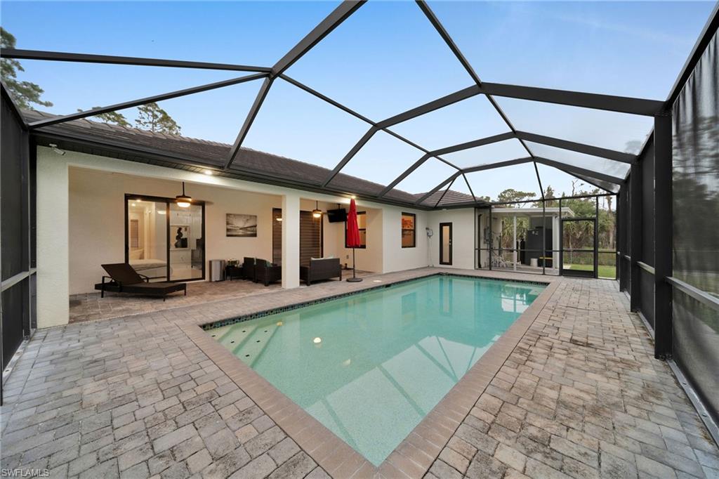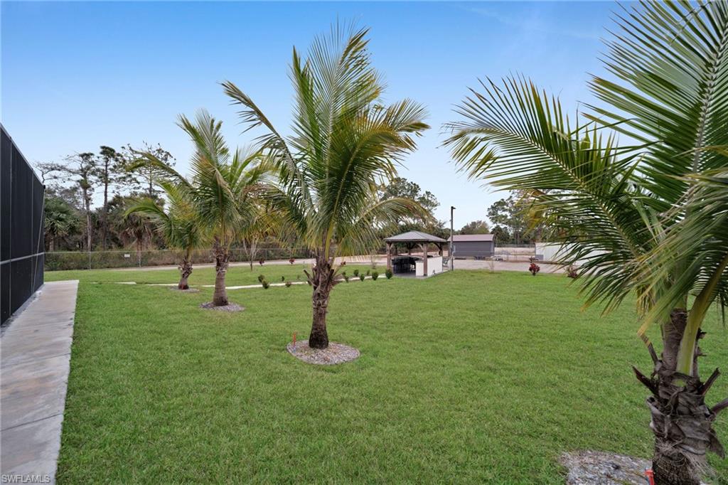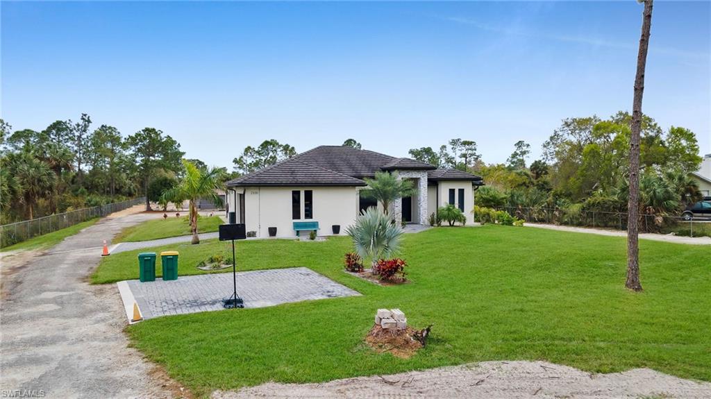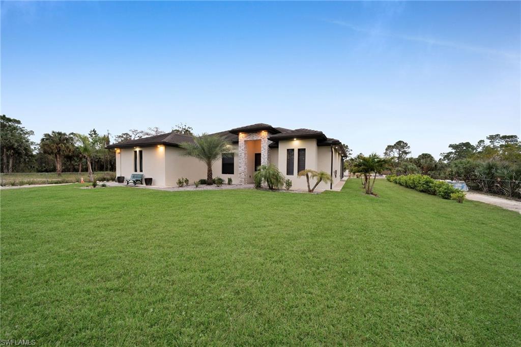 Welcome to your dream home in Naples, Florida. This stunning 4-bedroom 3- bathroom home, build in 2020, is better than new and offers the perfect blend of luxury and practicality on a spacious 2.27-acres lot cleared and fenced with no HOA restrictions. Enter through elegant glass double door into a bright, open living space featuring a tray ceiling. The kitchen equipped with stainless steel appliances, wood cabinets, granite countertops. Porcelain tile floor throughout the home. The primary suite with dual walk-in closets, dual vanities and oversized shower with bathtub. on the other side of the home, you'll find three additional bedrooms and two more full bathrooms. Pool perfect for enjoying those Naples sunsets, underground sprinklers, REVERSE OSMOSIS, all lot is 100% upland. The backyard has lighting and connection to drinking water. The main gate is 24' long with remote control. Have a guest house in the first stage of construction with pat ready and plans (see attached documents). COME SEE IT TODAY!!!