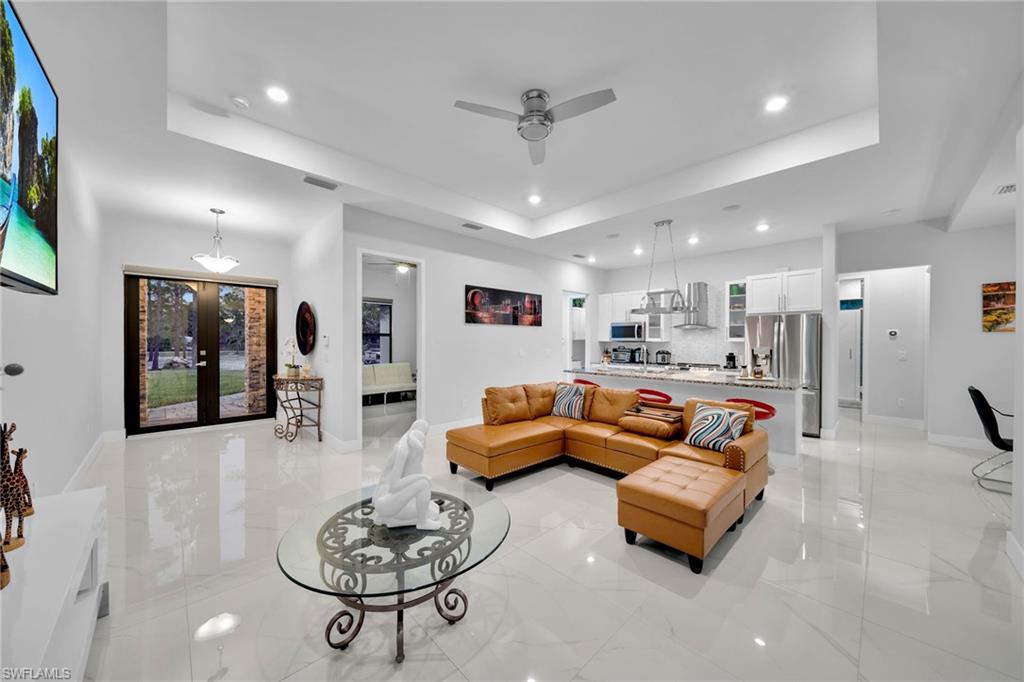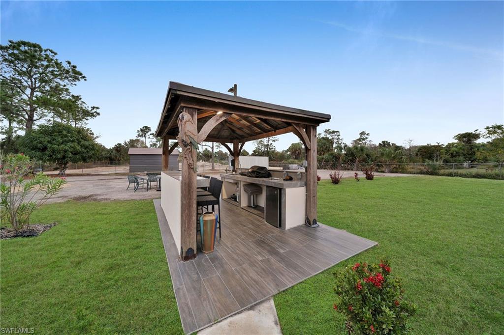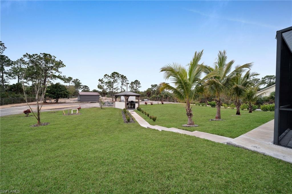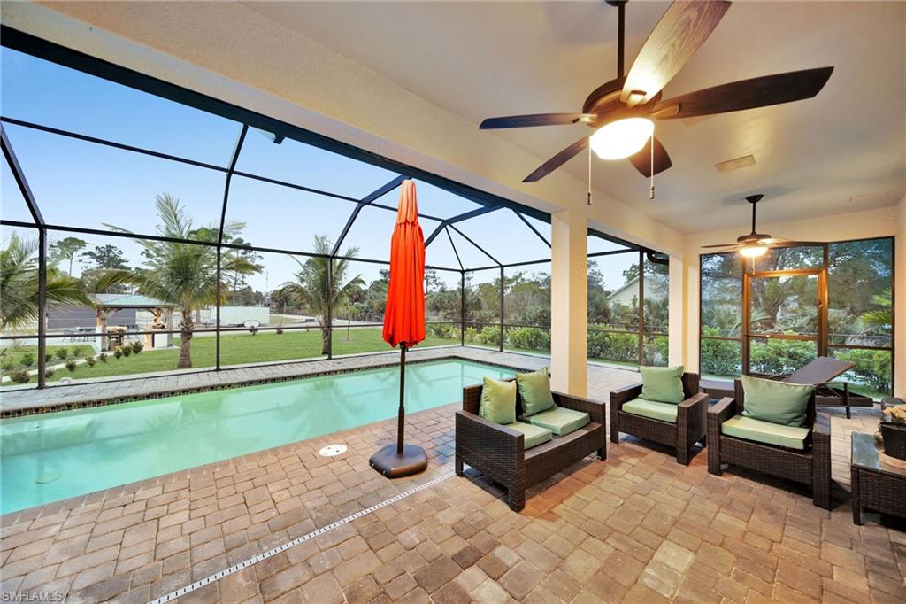 Welcome to your dream home in Naples, Florida. This stunning 4-bedroom 3- bathroom home, build in 2020, is better than new and offers the perfect blend of luxury and practicality on a spacious 2.27-acres lot cleared and fenced with no HOA restrictions. Enter through elegant glass double door into a bright, open living space featuring a tray ceiling. The kitchen equipped with stainless steel appliances, wood cabinets, granite countertops. Porcelain tile floor throughout the home. The primary suite with dual walk-in closets, dual vanities and oversized shower with bathtub. on the other side of the home, you'll find three additional bedrooms and two more full bathrooms. Pool perfect for enjoying those Naples sunsets, underground sprinklers, REVERSE OSMOSIS, all lot is 100% upland. The backyard has lighting and connection to drinking water. The main gate is 24' long with remote control. Have a guest house in the first stage of construction with pat ready and plans (see attached documents). COME SEE IT TODAY!!!