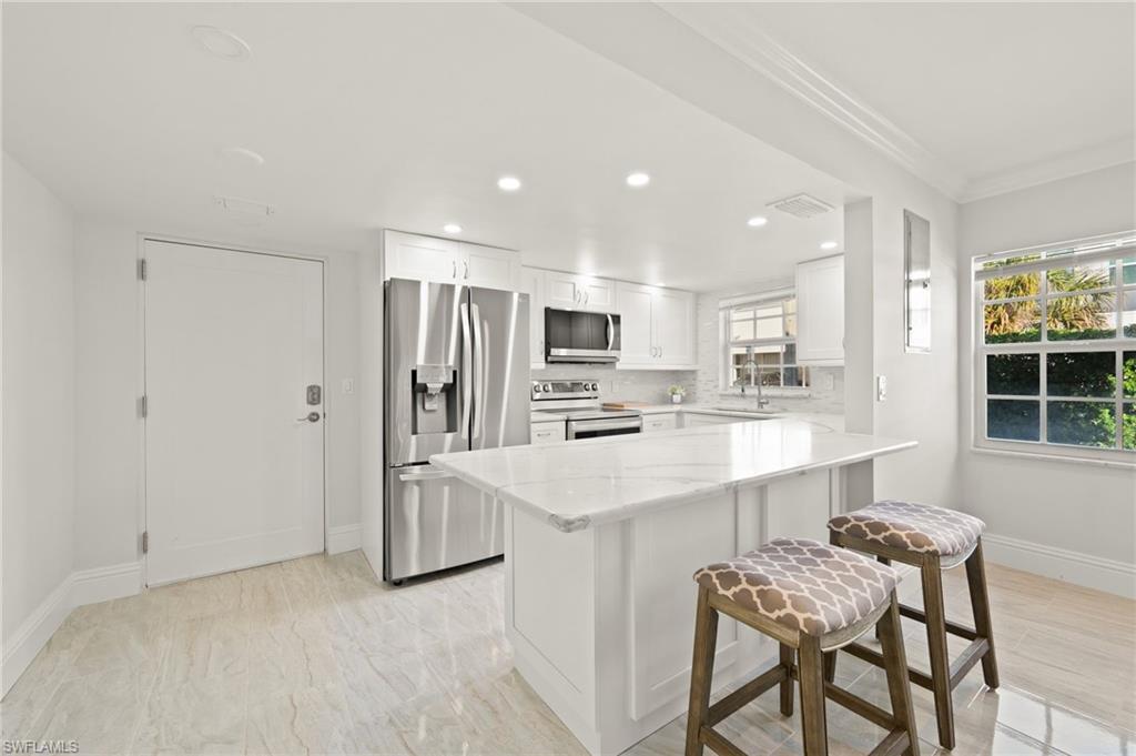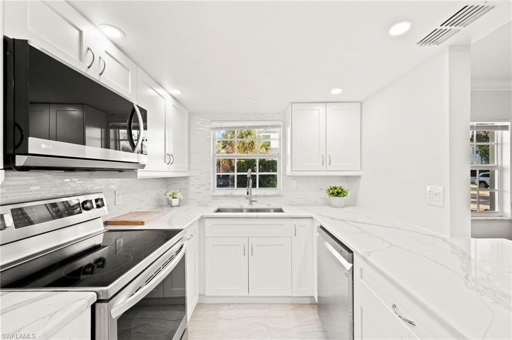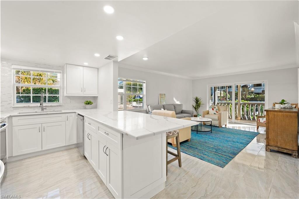 Steps to the Beach and Naples' finest restaurants! Ideally located just two blocks from both the prestigious 5th Avenue and Naples' sugar sand beaches. This property embodies the perfect Olde Naples Lifestyle. This fully renovated 1st-floor condo offers bright, open living spaces with new tile flooring, white kitchen cabinetry, all new appliances, and stunning quartz countertops. The private lanai is the perfect place to unwind and enjoy the beautiful Florida weather. This condo also offers peace of mind with impact-resistant sliders and windows, plus screens and roll-down shutters for added convenience and protection. The Colonnade Club stands out with gorgeous curb appeal and its own private community pool, offering an intimate and peaceful living experience. Additional amenities include a gas BBQ area, a secured lobby, laundry room, bike storage and extra storage space. In this prime location you are just a quick walk to 5th Avenue's and 3rd Street's world class shopping and dining, and two blocks to the beach for those perfect sunsets. Enjoy Naples Living at its finest.