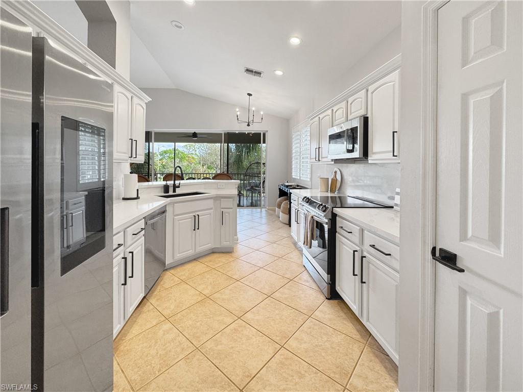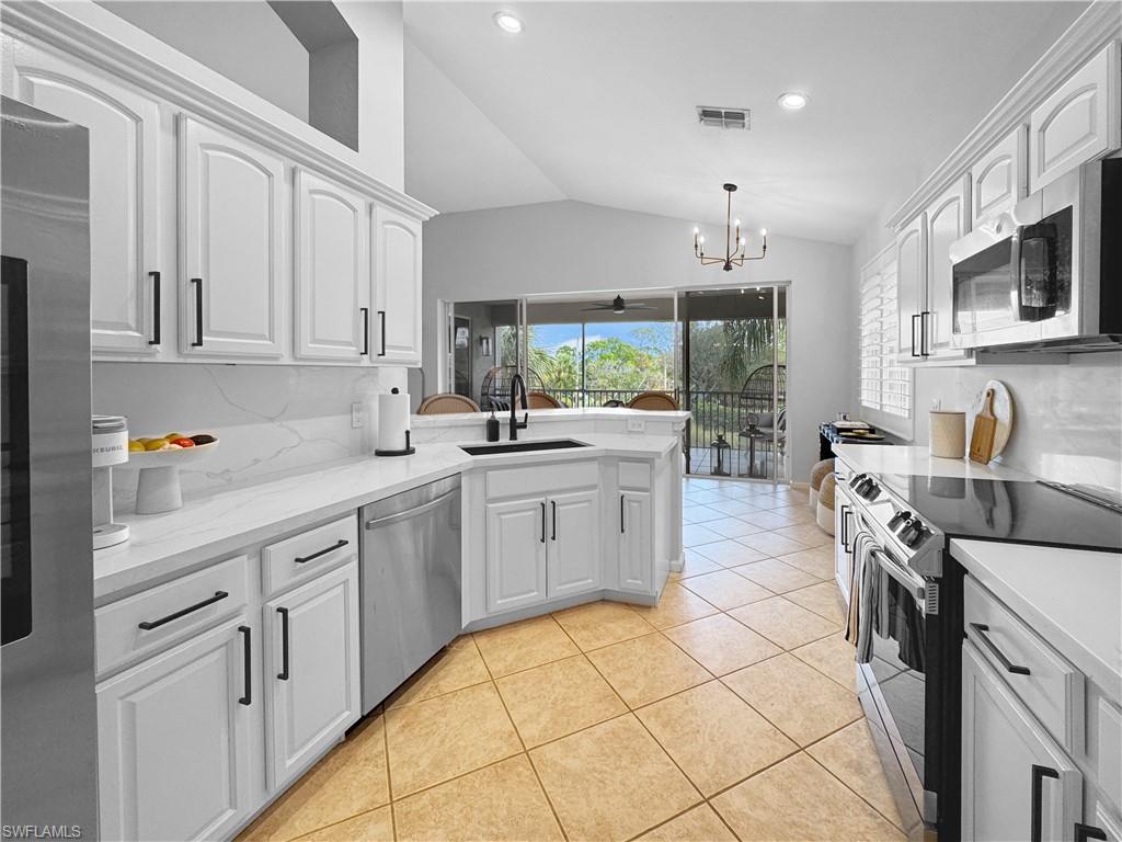 Welcome to your second-floor condo nestled on a tranquil cul-de-sac in the heart of Cedar Ridge at 7134 Blue Juniper CT, #202. This charming 3-bedroom, 2-bathroom residence offers the perfect blend of comfort and sophistication in the sought-after, gated community of Autumn Woods. Step inside to discover an inviting open floor plan accentuated by vaulted ceilings, creating an airy and spacious atmosphere. The living room flows seamlessly into a beautifully updated kitchen, where modern elegance meets functionality. Enjoy cooking on sleek quartz countertops, complemented by new stainless-steel appliances and fixtures that promise durability and style. This space is perfect for hosting gatherings or enjoying a quiet dinner with your loved ones. Retreat to the primary suite, featuring a luxurious custom closet designed by California Closets—offering ample storage in chic style. Two additional bedrooms provide versatility for family, guests, or a home office. The true charm of this property extends beyond its walls, as you are surrounded by over 26 acres of natural preserves, picturesque lakes, and scenic walking paths. Just two miles from the pristine sands of the Gulf, enjoy the beach lifestyle with ease. Additionally, you'll find yourself close to an array of shopping and dining experiences. Nearby attractions like Waterside Shops and Mercato are just minutes away, offering sophisticated dining and upscale retail options. With top-rated schools and family-friendly amenities, Autumn Woods is an ideal spot for those seeking lifestyle advantages and a serene location. Your future home in Naples is calling.