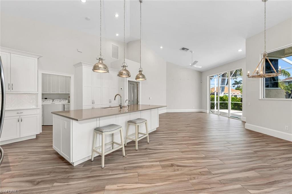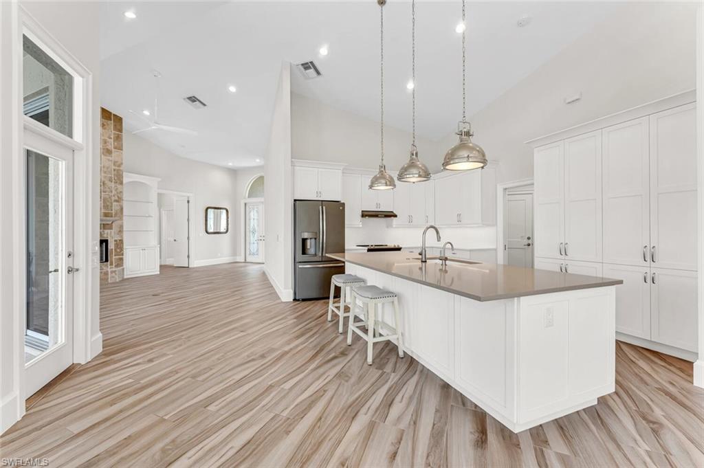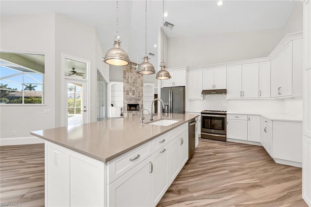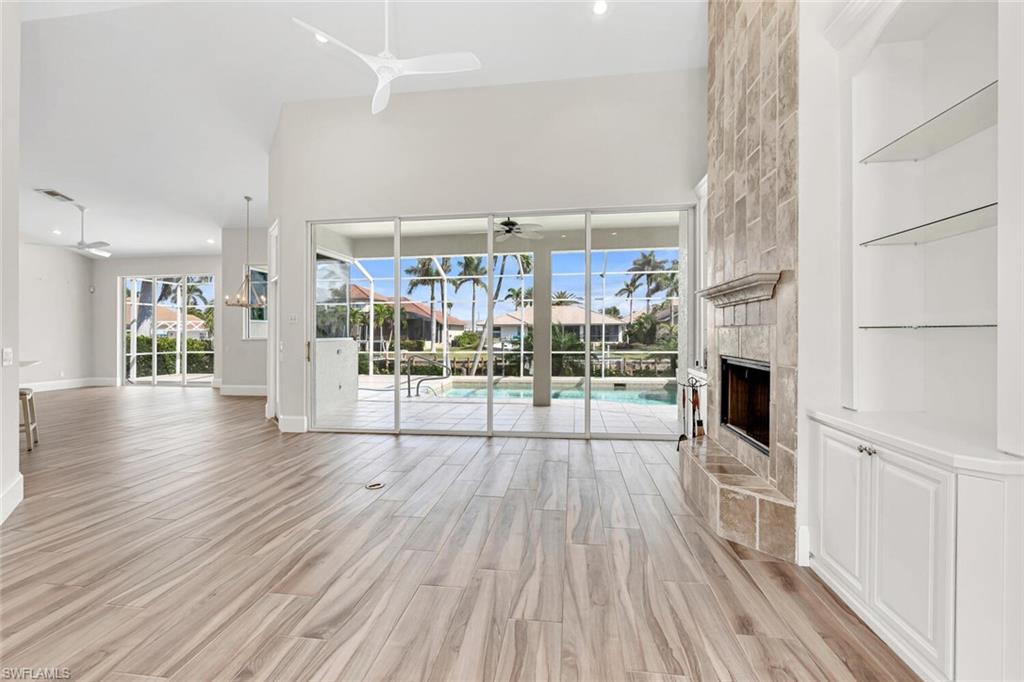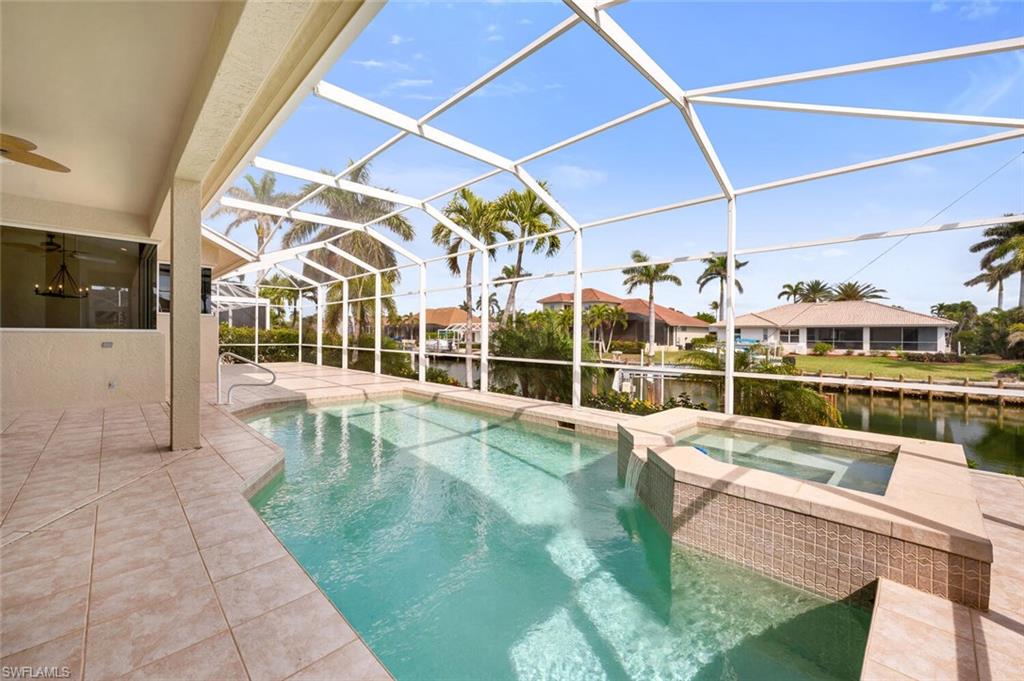 Look no further than this beautifully renovated and well-maintained residence in the heart of Marco Island. Recently redesigned, this home boasts beautiful custom entry doors that lead into an open and spacious floorplan. The layout features split bedrooms allowing owners and guests their own privacy. The primary suite features dual sinks set upon a long vanity along with separate soaking tub and walk-in shower. The two guest bedrooms each boast their own ensuite bathrooms, with one offering convenient access to the pool area. The gourmet kitchen includes quartz countertops, breakfast bar, and newer appliances. The living space showcases a wall of sliding glass doors and inviting wood-burning fireplace. The screened lanai is a true retreat. Relax in the covered sitting area, soak up the sun on the patio, and unwind in the heated pool and spa, all while enjoying Southwest Florida’s famed sunrises and sunsets. For the boating enthusiast this home comes with a dock and boat lift for easy access to the Gulf. The location is perfectly located on Marco, close to attractions, shopping, and dining.