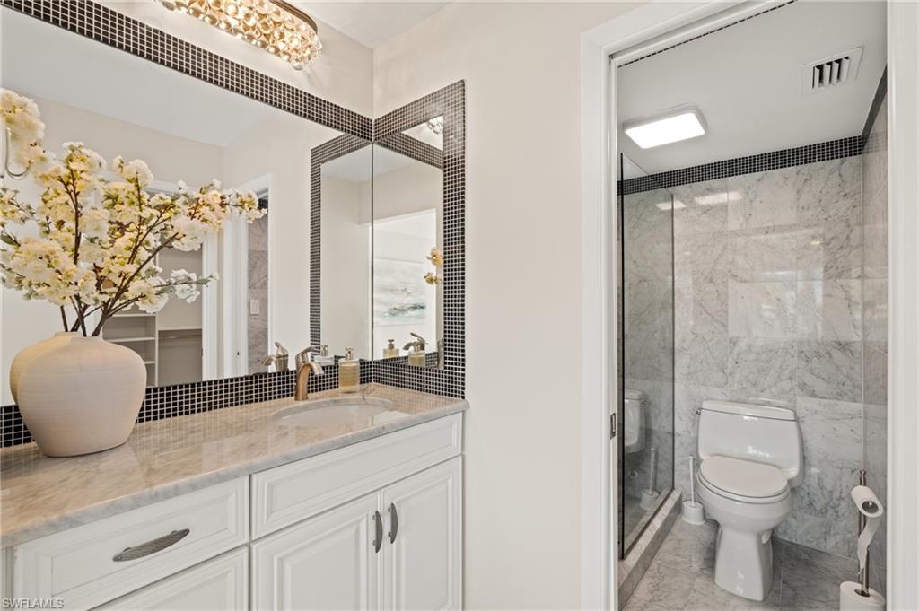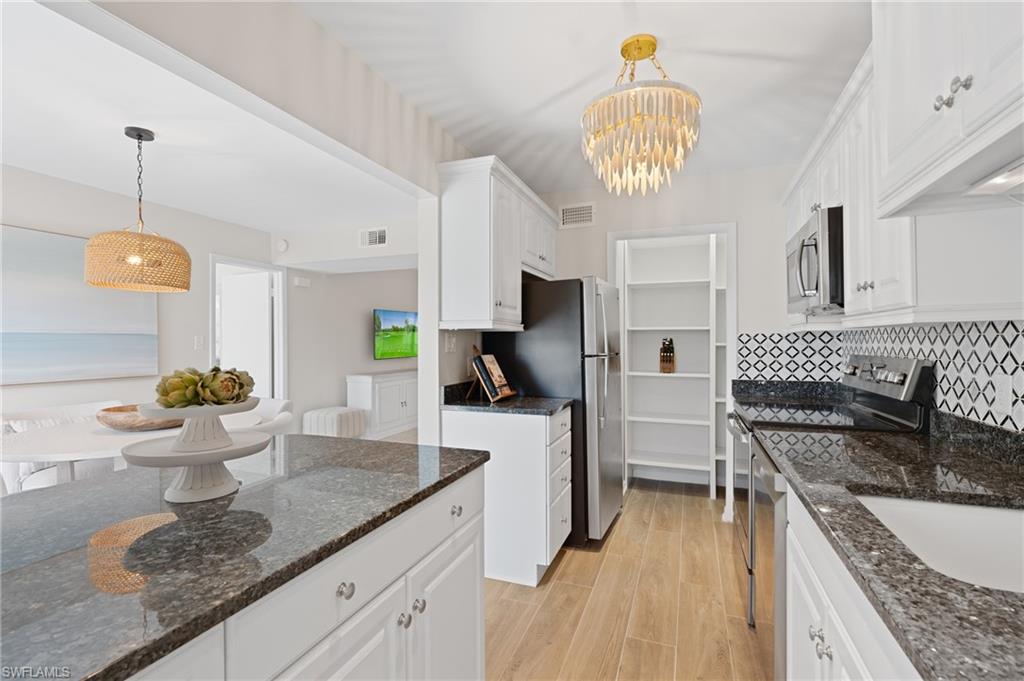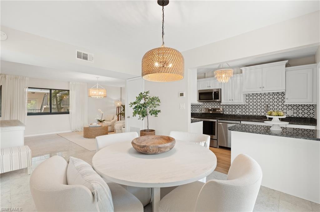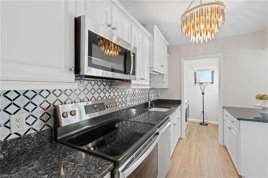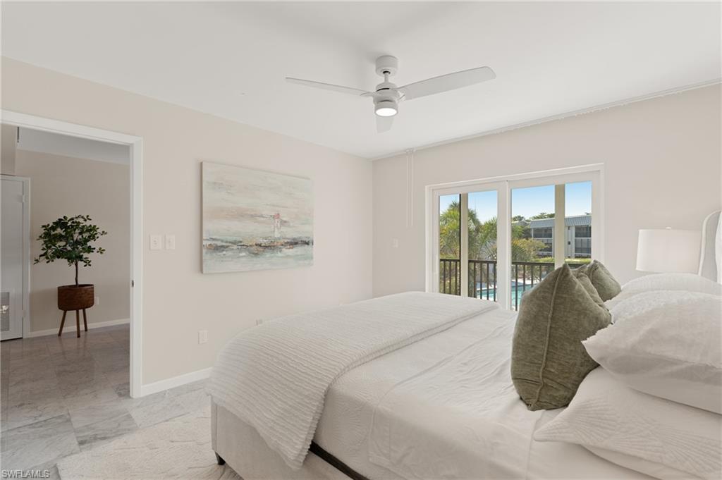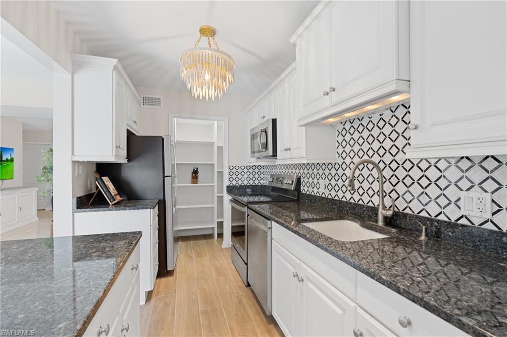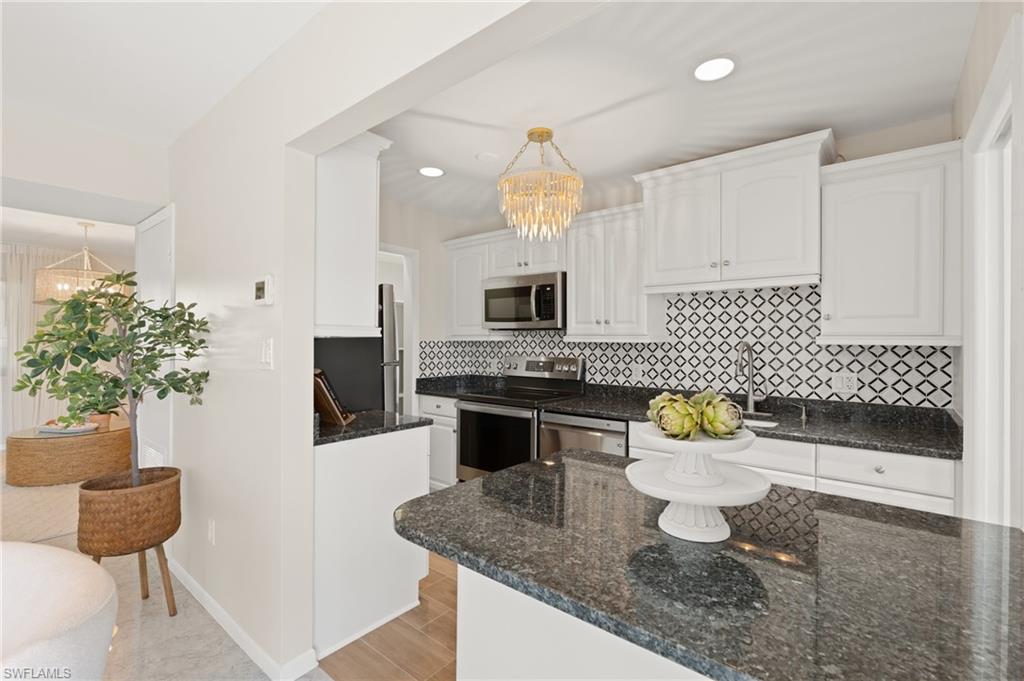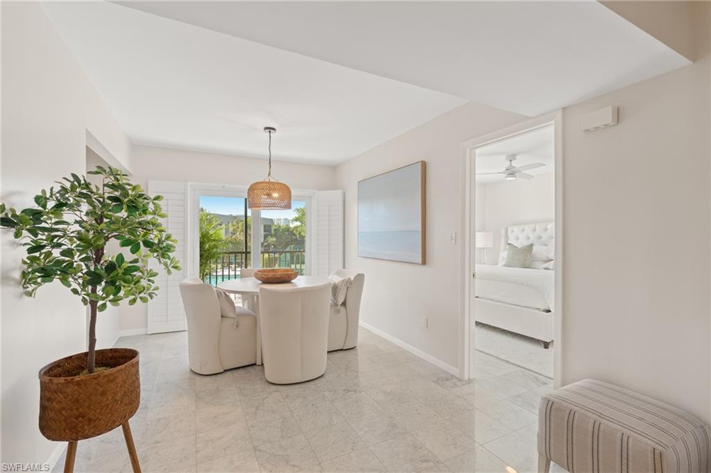 Welcome to your dream retreat at Hidden Lake Villas in Park Shore, where coastal elegance meets modern comfort. This immaculate, move-in ready condo has been meticulously updated, showcasing luxury finishes that radiate sophistication and style. Imagine enjoying the SW Florida sunset from your private lanai, where the western exposure bathes the space in golden light at the end of each day. Step inside, and you'll be greeted by an open living concept that feels effortlessly spacious. The Italian marble and porcelain wood tile flooring add a refined touch, complementing the freshly painted interior and newly updated lighting and fans throughout the condo. The kitchen is a true culinary masterpiece with its stunning granite countertops, sleek white cabinetry, and an elegant marble backsplash. Newer appliances make cooking a joy, while the in-unit laundry area features a new washer and dryer, as well as custom-built storage closets and shelving for added convenience. The primary bedroom offers a private oasis with an ensuite bath, and both bathrooms have been completely updated with luxurious marble finishes, complimented by a spacious walk-in closet with custom built-ins. Throughout the condo, plantation shutters add a touch of Southern charm, while hurricane impact windows and doors provide peace of mind. Hidden Lake Villas offers a resort-like atmosphere, complete with a sparkling pool with lap lanes, a fitness room, and lit tennis and pickleball courts for those seeking an active lifestyle. The clubhouse provides a cozy setting for socializing, featuring a library with serene lake views. Plus, with on-site management and a calendar of social events, you’ll always feel connected. Situated in the prestigious Park Shore neighborhood, you’ll have exclusive private beach access with parking and restrooms—perfect for those relaxing beach days. You’re also just minutes away from the chic Venetian Village, with its fine dining and boutique shopping. This condo is more than just a place to live—it’s a gateway to the best of Naples' coastal lifestyle. Don’t miss this incredible opportunity to own a slice of paradise in one of the most coveted locations in Southwest Florida. Schedule your showing today and experience the luxury, comfort, and convenience that make this condo a must-see!