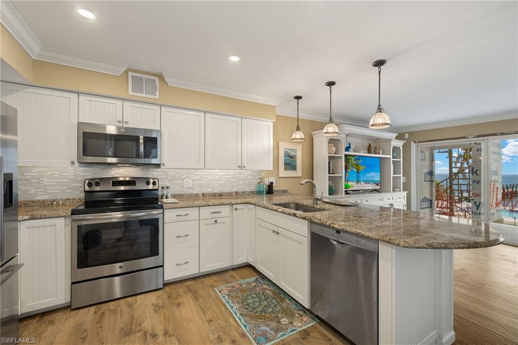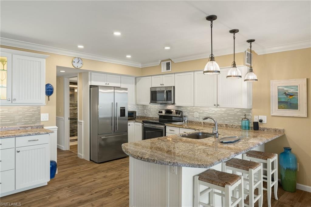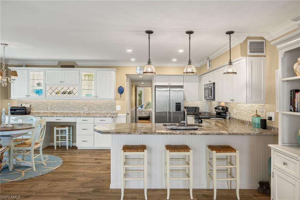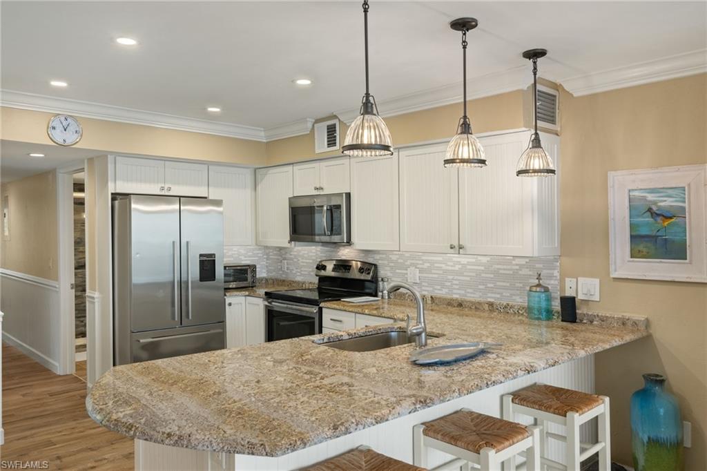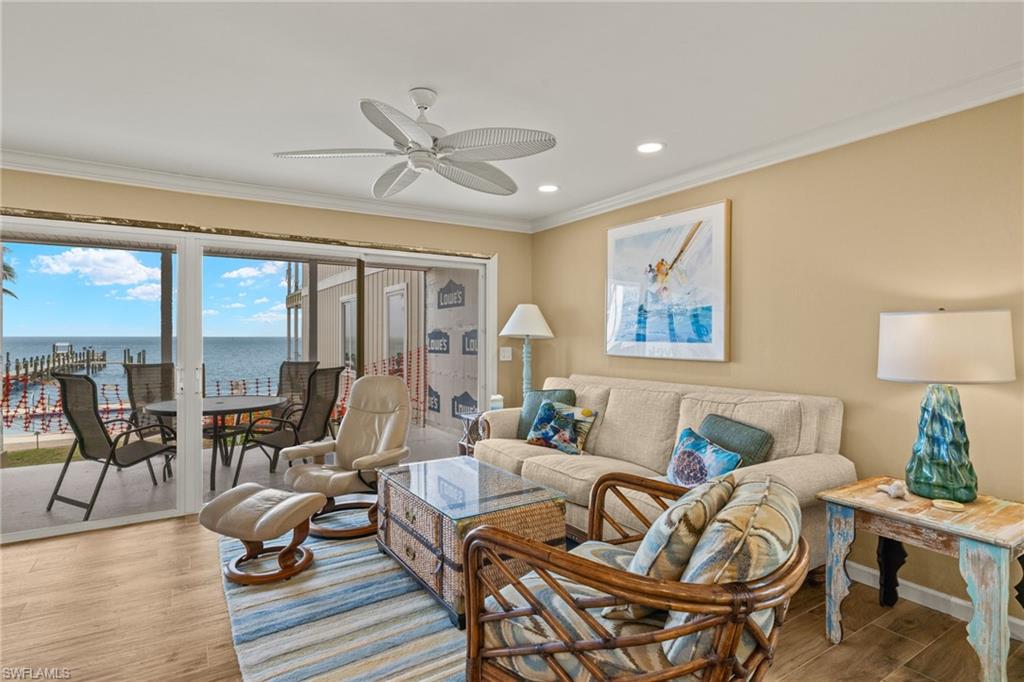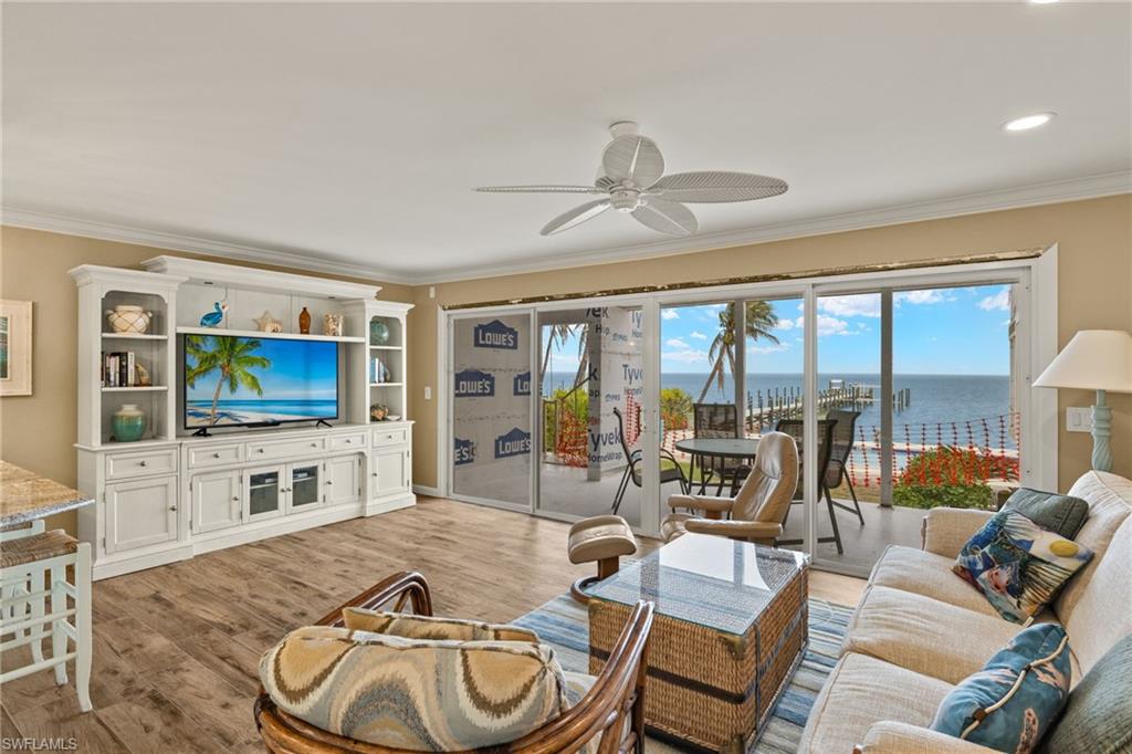 Spectacular, direct Bayfront vistas from this furnished, 2 bedroom and 2 bath condo situated in Captiva's "Village" at Captiva Hide-A-Way. “Boater’s Paradise” - dock your boat right out your back door for easy access to Pine Island Sound and the Gulf. Experience magical sun and moon rises from your private lanai and stunning sunsets from the Gulf beach. Conveniently located close to the marina for all your boating needs. Enjoy some of the BEST fishing on the West coast of Florida! Amenities include a private dock with a RARE opportunity to add your own boat lift, fishing pier, sparkling pool, and BBQ grill. All this just a short 5 minute stroll from the Gulf where you’ll enjoy incredible sugar sand beaches and some of the world's best shelling. Walk into the heart of Captiva's "Village" for dining, shopping, entertainment, marina and more. The building has been totally renovated post hurricane with new roof, siding, windows and lanais. Condo offers tile plank floors throughout main living area and carpet in bedrooms, new air conditioner handler/compressor and tankless water heater. New custom tile and exotic stone and marble vanity in both bathrooms. Stainless steel appliances, granite counters in kitchen and built-in buffet. Owners can have two pets, under 30lbs.