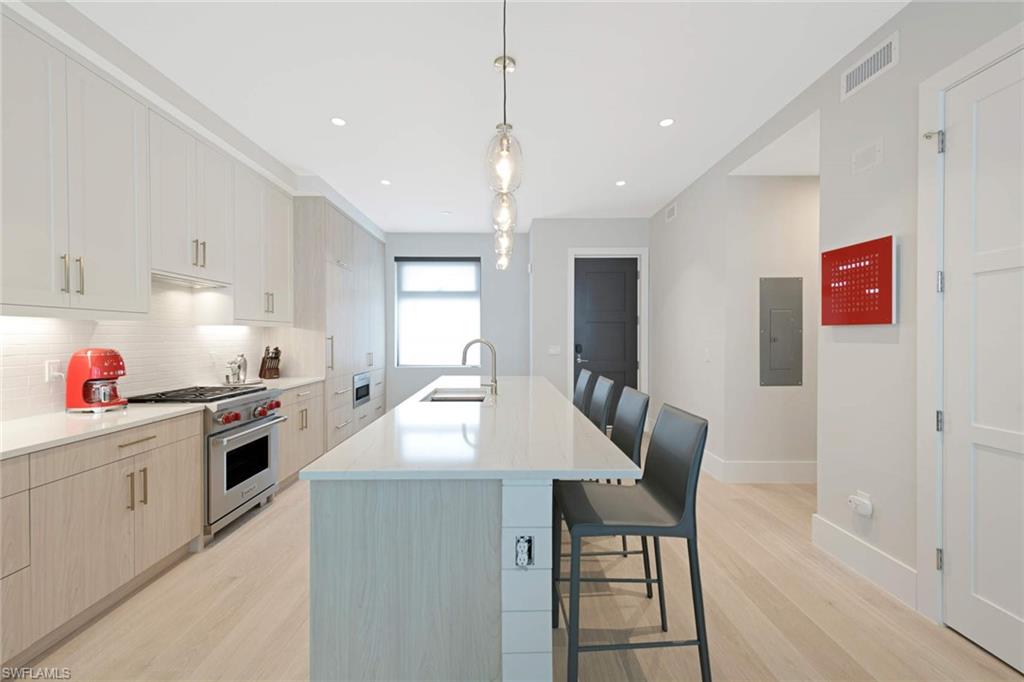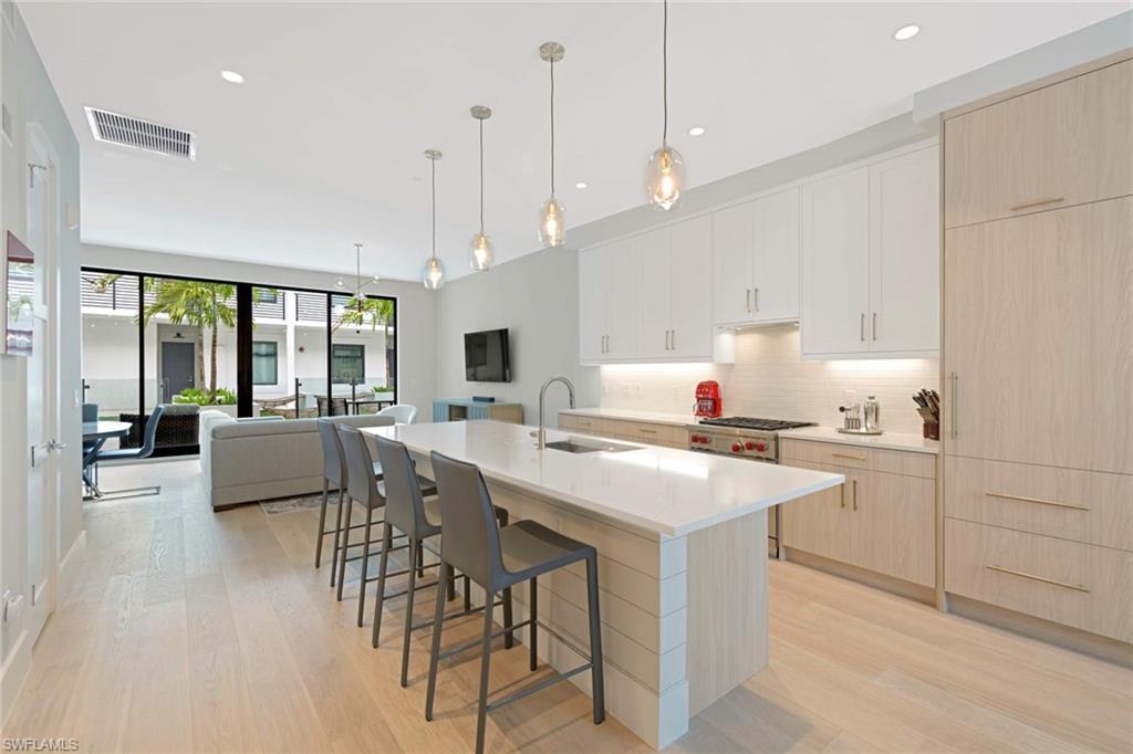 PRICING ALERT: LOWEST PRICE PER SQ FT IN EIGHT FIFTY CENTRAL! A fresh, upscale condo with 2021 construction in this boutique community is PRICED TO SELL NOW, THIS SEASON! This impressive 2 bedroom/2 bath unit is 1,357 SF and has an expansive lanai looking out to a peaceful courtyard, ONE OF THE BEST VIEWS IN THE DEVELOPMENT! The open floor plan offers 10-foot ceilings, Duchateau wood flooring, Raywal cabinetry, Brizo fixtures, gas cooking, Wolf/Sub Zero appliance package and quartz countertops. Amenities include a pool just steps from this unit, lawn area directly in front of unit and a beautiful rooftop outdoor fire pit/grill/seating area w fabulous views of the sunset and Olde Naples. Located in the heart of this highly sought after zip code and just steps away from it all...5th Avenue South, shops, restaurants and pristine beaches!