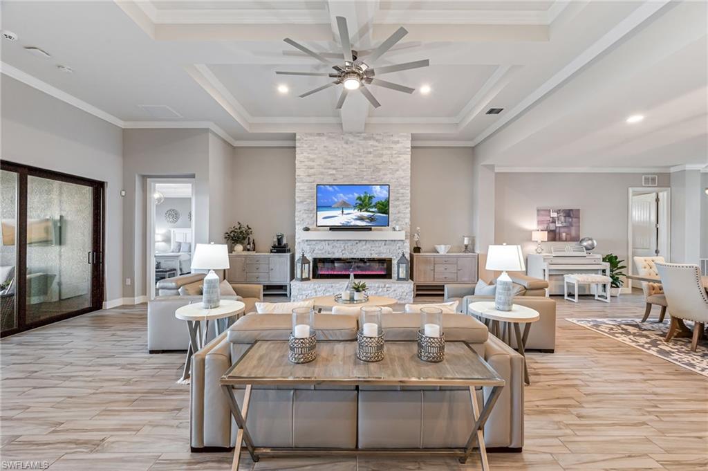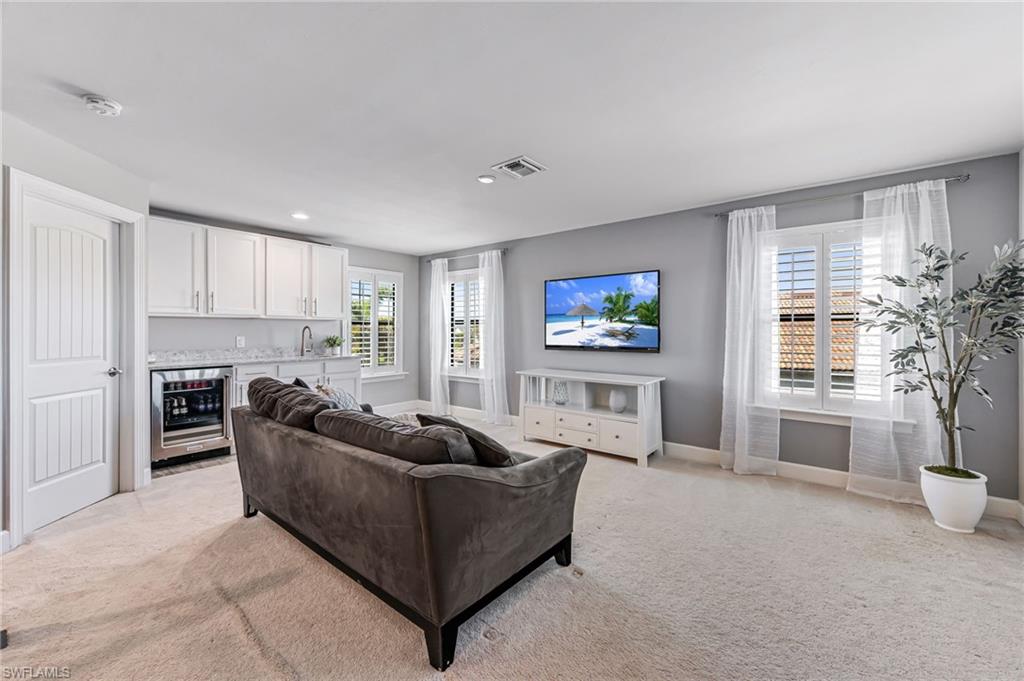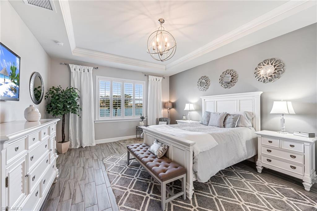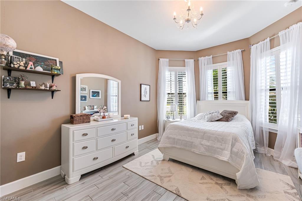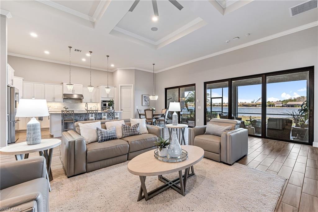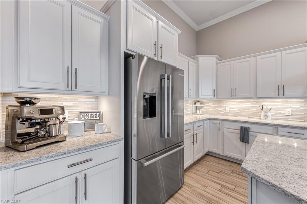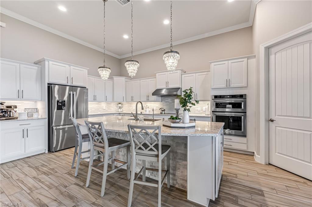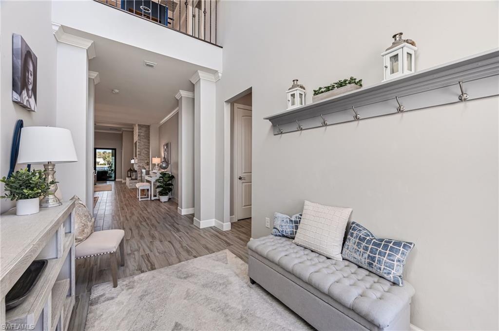 Price Improvement! Welcome to this rarely available Stonewater home in the desirable Corkscrew Shores Community. Situated on the BIG Lake and the largest lot size available, this is one of the most sought-after floor plans in the area. This home offers 5 bedrooms, 4.5 bathrooms and a 3-car extended garage. You will love everything about this home with all the elegant modern upgrades. Modern porcelain tile floors, oversized kitchen island with beautiful quartz counter tops, custom fireplace, crown molding, plantation shutters, high coffered ceilings, high end kitchen appliances are just some of the highlights. This home also has a new water heater, whole house water softener with reverse osmosis in the kitchen, impact doors & windows, alarm system, and built-in Sonos speakers. The expansive backyard has plenty of room for a pool. Lanai has a dedicated bathroom and already plumbed for an outdoor kitchen. With the kitchenette in the upstairs loft, this is perfect place for entertaining or hosting guests. The garage has 6 overhead racks for additional storage and organization. Corkscrew Shores is a gated, resort-style community surrounded by preserves and a 240-acre lake and features a spectacular amenity center with a restaurant and bar. Residents enjoy activities, entertainment, events and sports including pickleball, tennis, bocce, fitness center, movement studio, children's play area, kayak/canoe launch, and fishing pier and more! Conveniently located between Naples & Fort Myers just minutes from shopping, dining, RSW airport, FGCU, golf courses, entertainment at sports and more!