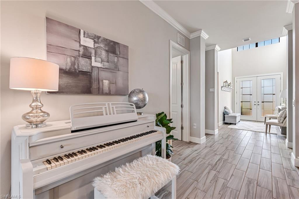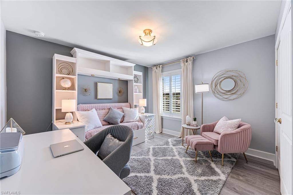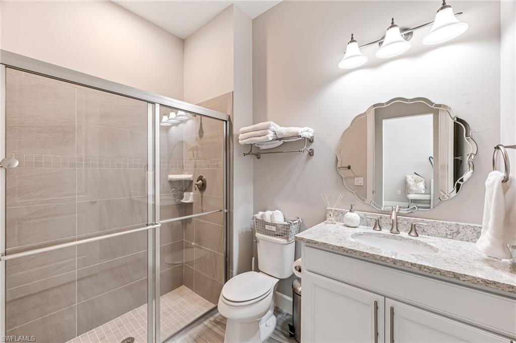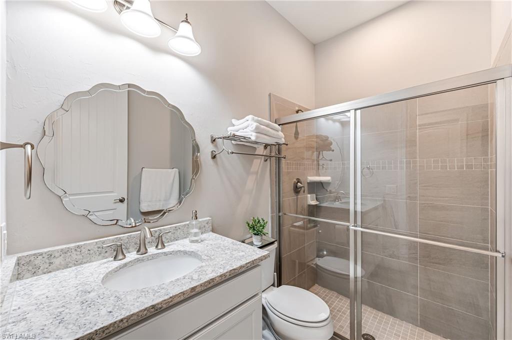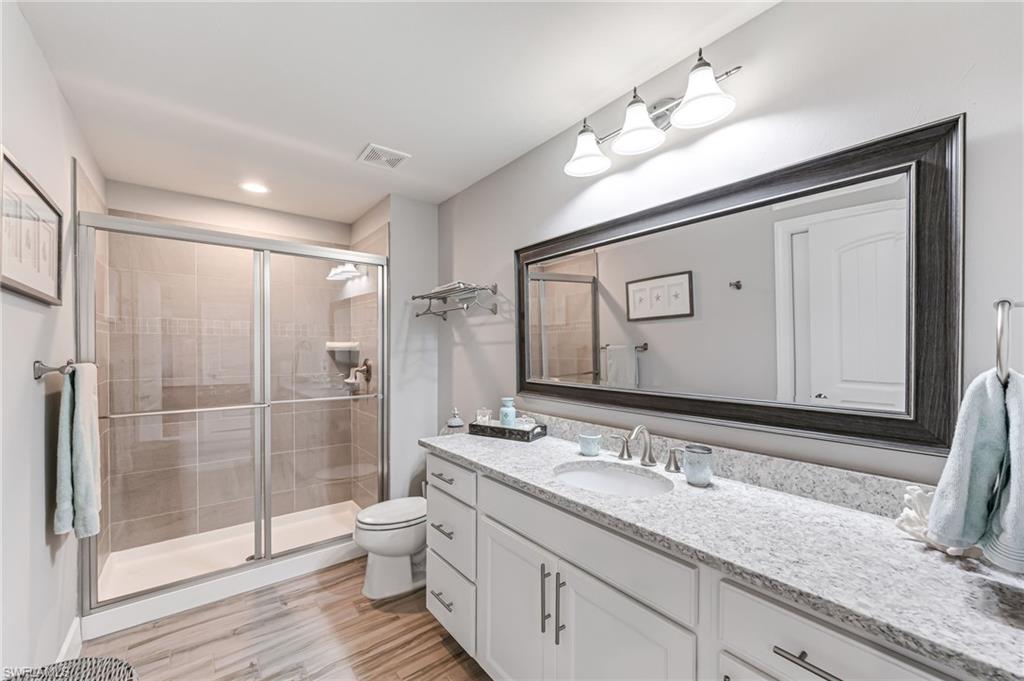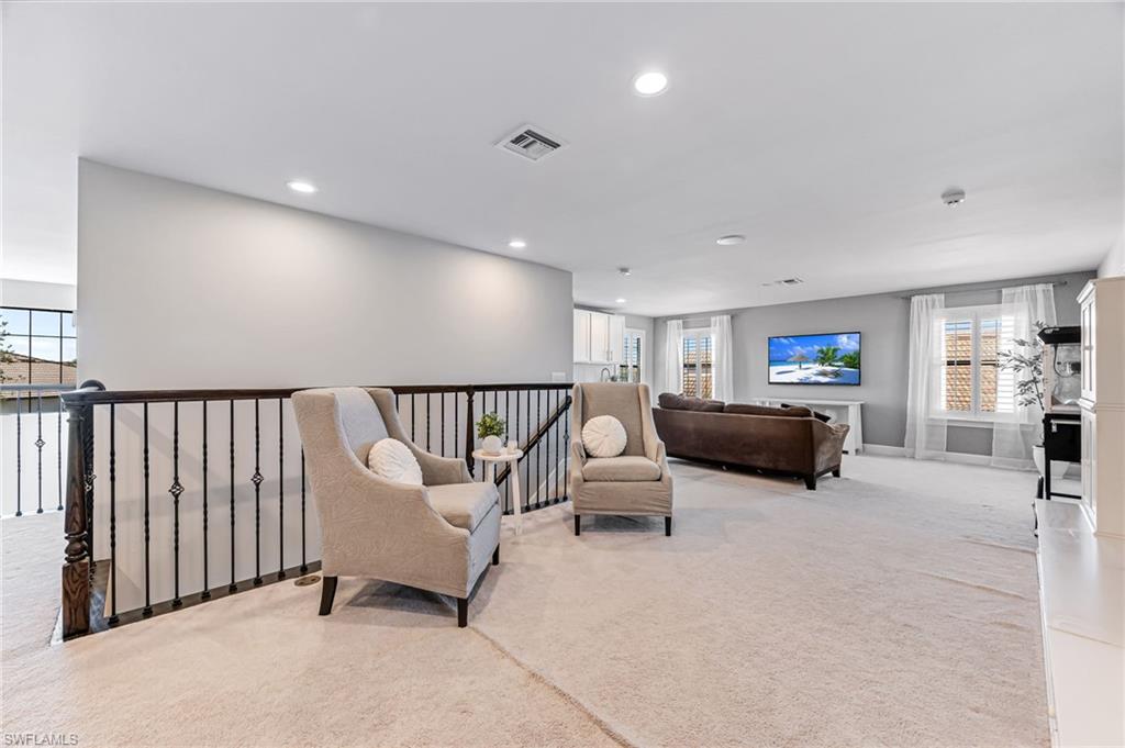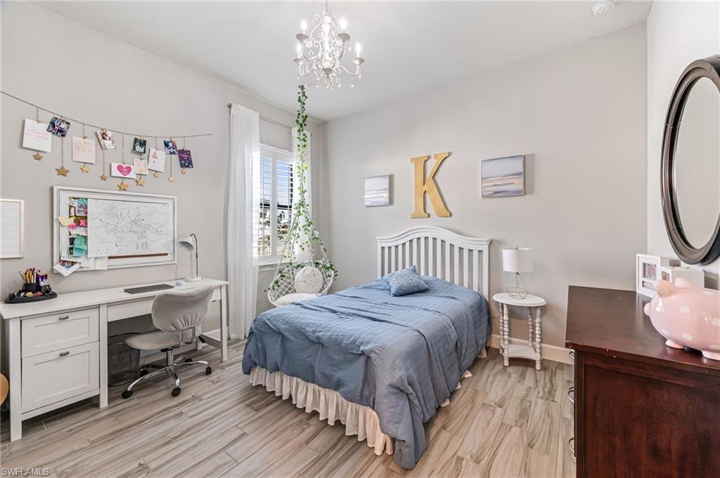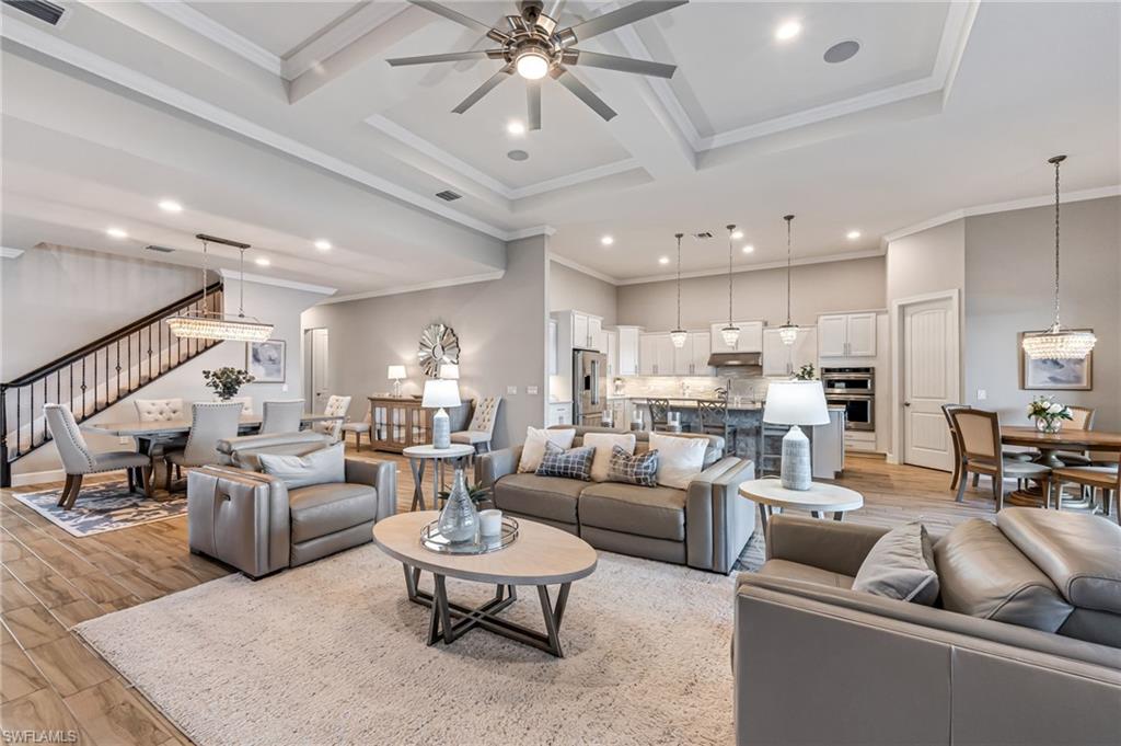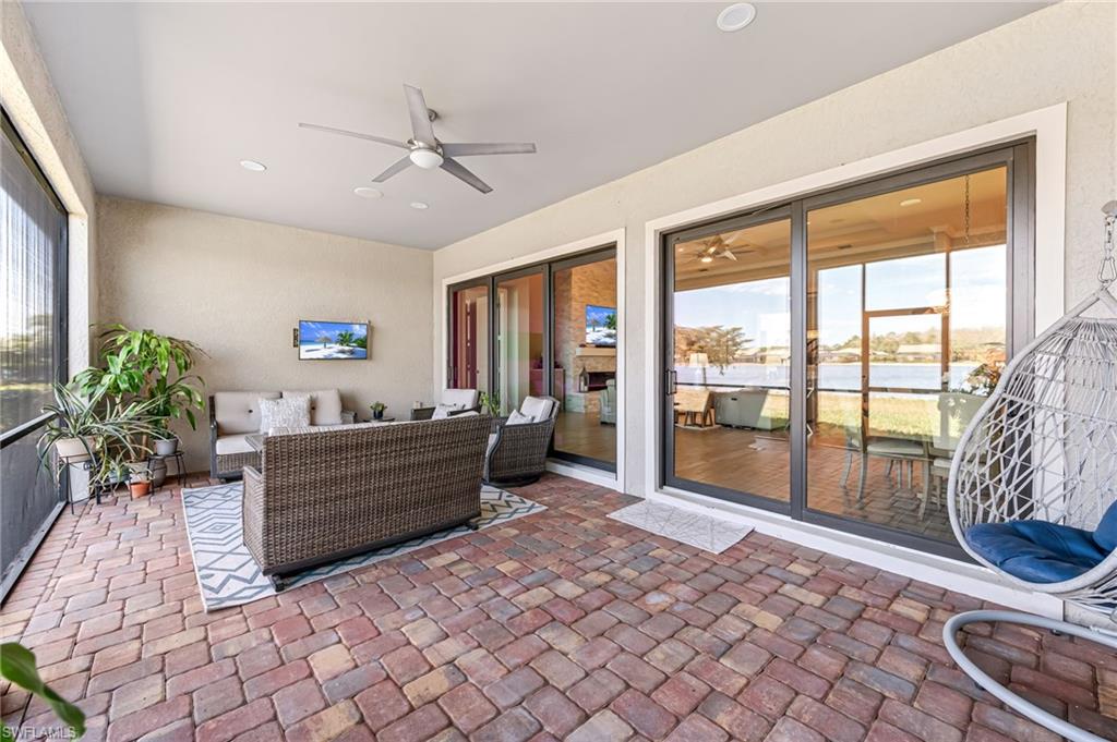 Price Improvement! Welcome to this rarely available Stonewater home in the desirable Corkscrew Shores Community. Situated on the BIG Lake and the largest lot size available, this is one of the most sought-after floor plans in the area. This home offers 5 bedrooms, 4.5 bathrooms and a 3-car extended garage. You will love everything about this home with all the elegant modern upgrades. Modern porcelain tile floors, oversized kitchen island with beautiful quartz counter tops, custom fireplace, crown molding, plantation shutters, high coffered ceilings, high end kitchen appliances are just some of the highlights. This home also has a new water heater, whole house water softener with reverse osmosis in the kitchen, impact doors & windows, alarm system, and built-in Sonos speakers. The expansive backyard has plenty of room for a pool. Lanai has a dedicated bathroom and already plumbed for an outdoor kitchen. With the kitchenette in the upstairs loft, this is perfect place for entertaining or hosting guests. The garage has 6 overhead racks for additional storage and organization. Corkscrew Shores is a gated, resort-style community surrounded by preserves and a 240-acre lake and features a spectacular amenity center with a restaurant and bar. Residents enjoy activities, entertainment, events and sports including pickleball, tennis, bocce, fitness center, movement studio, children's play area, kayak/canoe launch, and fishing pier and more! Conveniently located between Naples & Fort Myers just minutes from shopping, dining, RSW airport, FGCU, golf courses, entertainment at sports and more!