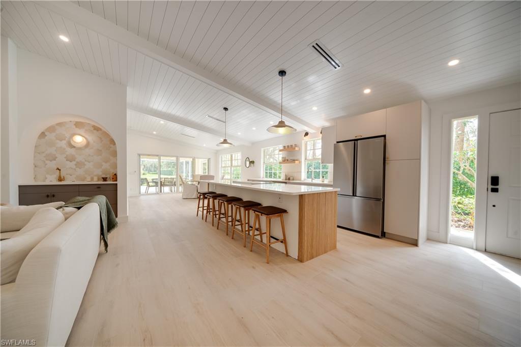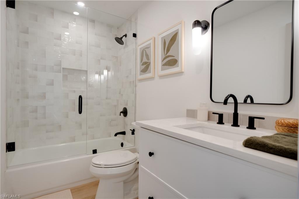 Experience unparalleled lakefront luxury in this exquisitely renovated Village Walk end-unit. This Capri model redefines sophistication, showcasing bespoke high-end finishes that set it apart. Every detail has been meticulously upgraded, including a full re-piping, a new electrical panel, impact-resistant windows and sliders, elegant porcelain wood-look flooring, an epoxy-coated garage floor, an array of high-end fixtures, and custom-designed cabinetry—ensuring no space is left untouched. Village Walk of Naples offers a myriad of world-class amenities, including two resort-style pools, a lap pool, a state-of-the-art fitness center, tennis and pickleball courts, a gourmet restaurant, and an upscale hair salon. Residents can immerse themselves in the community’s serene beauty, with picturesque lakes, charming walking bridges, and lush landscapes adorned with mature oak trees. Ideally situated west of I-75, this exclusive location grants effortless access to pristine beaches, luxury shopping, fine dining, and vibrant entertainment. Indulge in the pinnacle of refined living—welcome home.